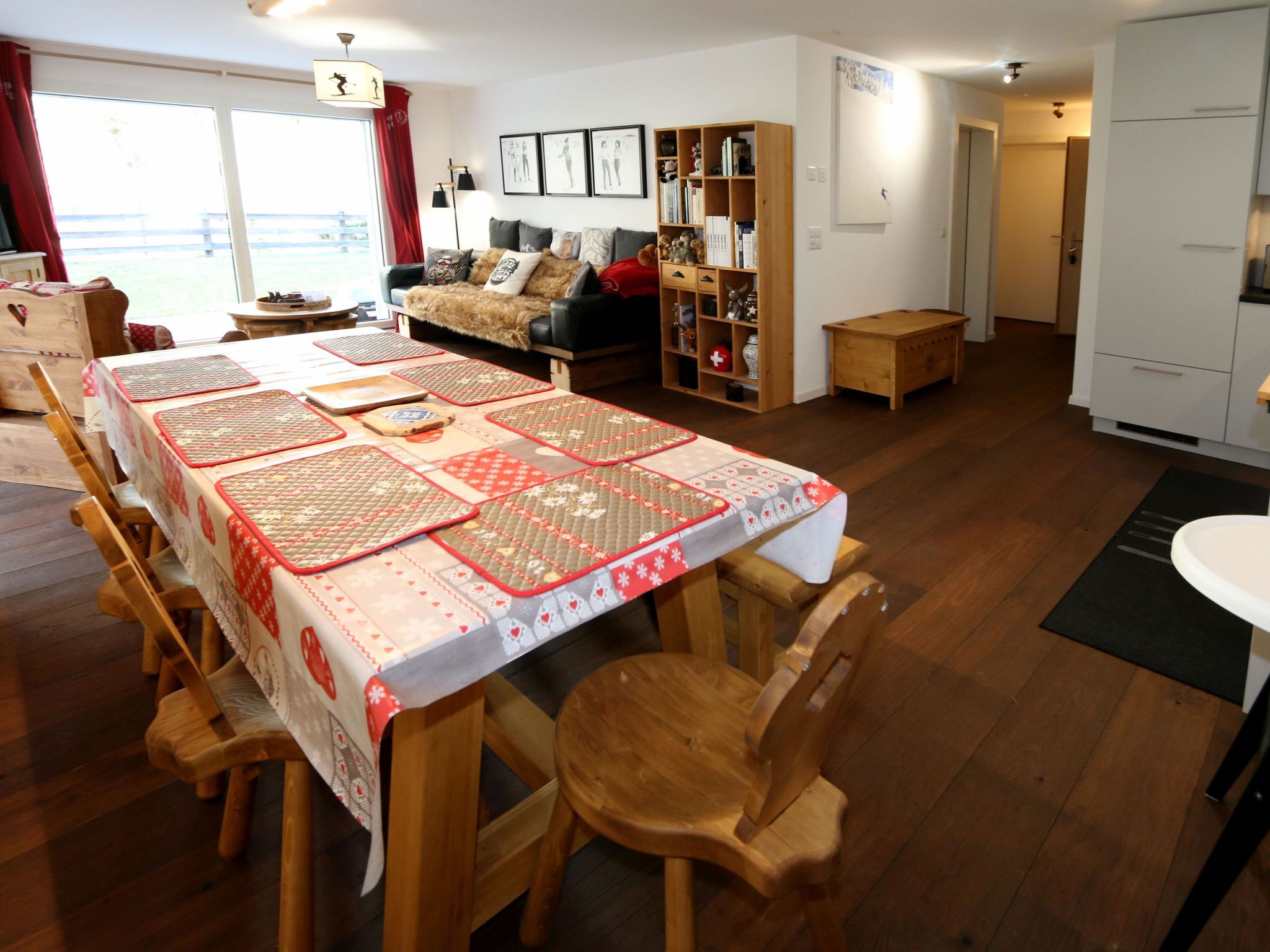 81 m2. Weitere Angaben des Anbieters: Das Haus ist neben dem Saaser Vispa Fluss und liegt in der Nähe der Alpine Express Seilbahn und dem Meeting Point für Skikurse. Das Apartment ist im Erdgeschoss mit einem großen Garten und Bergblick Richtung Süden und Westen. Das Perrine Garden Apartment ist ein gemütliches und familienfreundliches Apartment mit Bergfeeling, ausgestattet für bis zu 5 Personen. Es befindet sich in der Nähe der Alpine Express und des Meeting Point für Skikurse. Die Wohnung befindet sich im Erdgeschoss mit einem großen Garten und Blick auf die Berge Richtung Süden / Westen. Perrine Garden hat ein Elternschlafzimmer mit einem Doppelbett und ein zweites Schlafzimmer mit einem Etagenbett und einem Einzelbett. Es gibt eine Dusche/WC mit Waschbecken und Haartrockner. Das Wohnzimmer verfügt über eine offene Küche mit Esstisch und einen Wohnbereich mit einem Smart-TV. Kostenloses WiFi ist vorhanden. Die Küche ist komplett ausgestattet mit Geschirrspüler, Backofen, Herd, Nespresso-Maschine, Toaster, Wasserkocher, Käsefondue und Raclette-Set. Die Wohnung verfügt über große Fenstertüren im Wohnzimmer und im Elternschlafzimmer, so dass die Eltern auch die Kinder beim Spielen im Garten beobachten können. Der große Gartenbereich verfügt über einen Gartentisch mit Stühlen und einer schönen Holzbank. Die Alpine Express ist nur 100 Meter vom Haus Perrine entfernt. Der Skiraum befindet sich auf der gleichen Ebene der Wohnung neben dem Aufzug. Eine Waschküche mit Waschmaschine und Trockner ist ebenfalls im Gebäude vorhanden. Das Perrine Garden Apartment ist ideal für eine kleine Familie mit bis zu 5 Personen. Es ist ein Nichtraucherappartement und es sind keine Haustiere erlaubt. Für alle Buchungen während der Sommersaison; ALLE Seilbahnen und Busse in Saas Fee, Saas Almagell und Saas Grund sind im Mietpreis inbegriffen (ausgenommen Metro Alpin und Sommerskifahren). Die Kurtaxen sind NICHT im Preis inbegriffen: CHF 4.50/2.25 pro Erwachsener/Kind pro Nacht in der Wintersaison CHF 7.00/3.50 pro Erwachsener/Kind pro Nacht in der Sommersaison Die Kurtaxe ist bei der Ankunft in bar zu bezahlen! Kurtaxe Sommer (01.06. - 31.10.): CHF 7.- für Erwachsene/Tag, CHF 3.50 für Kinder (6 -15.99 Jahre). Kurtaxe Winter (01.11. -31.05): CHF 4.50 für Erwachsene/Tag, CHF 2.25 für Kinder (6 -15.99 Jahre). SaastalCard inbegriffen Endreinigung (ohne Küche) und Bettwäsche, Frottee- und Küchentücher inklusive.