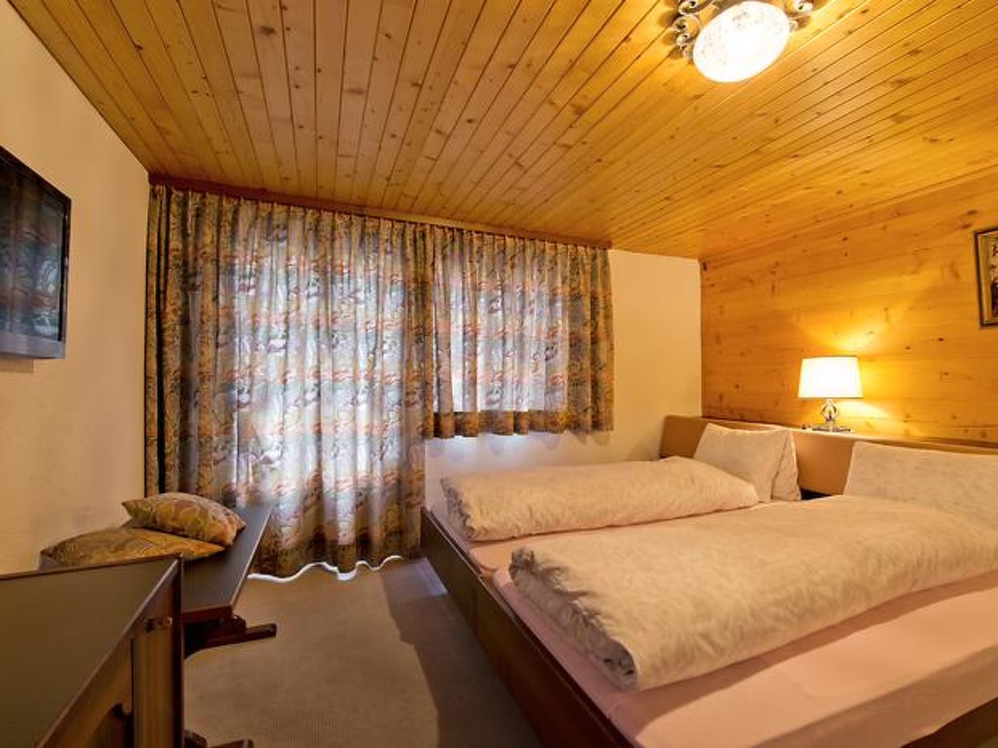 40 m2. Weitere Angaben des Anbieters: Gemütliches Haus, ruhige Lage, ca. 3-4 Minuten von den Bahnen und Sportanlagen entfernt. 2 1/2-Zimmerwohnung (4 Betten, 40 m2), Erdgeschoss, 1 Wohnschlafraum, 1 Schlafzimmer, Essküche, Dusche/WC, Falchbild-TV, Süd-Balkon Kurtaxe Sommer (01.06. - 31.10.): CHF 7.- für Erwachsene/Tag, CHF 3.50 für Kinder (6 -15.99 Jahre). Kurtaxe Winter (01.11. -31.05): CHF 4.50 für Erwachsene/Tag, CHF 2.25 für Kinder (6 -15.99 Jahre). Endreinigung inklusive. Küchen-, Bad- und Bettwäsche vorhanden und inklusive. Kinderbett CHF 7.-- pro Tag.