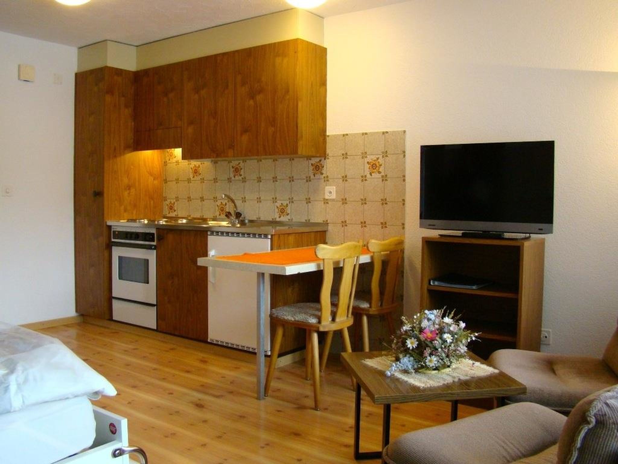 26 m2. Weitere Angaben des Anbieters: Ruhige und sonnige Lage, in der Nähe der Skilifte, Bergbahnen und Sportplatz. Studio (22 m2), Erdgeschoss, mit 2 Schrankbetten, Kochnische mit Elektroherd, Backofen, Kühlschrank und Esstisch, Polsterstühle und Salontisch, Dusche/WC, Südbalkon, TV, Radio, WLAN. Kurtaxe Sommer (01.06. - 31.10.): CHF 7.- für Erwachsene/Tag, CHF 3.50 für Kinder (6 -15.99 Jahre). Kurtaxe Winter (01.11. -31.05): CHF 4.50 für Erwachsene/Tag, CHF 2.25 für Kinder (6 -15.99 Jahre). Endreinigung: 2-Bettwohnung CHF 60.-, 4-Bettwohnung CHF 80.--, 6-Bettwohnung CHF 100.--. Wäsche wird zur Verfügung gestellt. Kinderbett auf Anfrage.