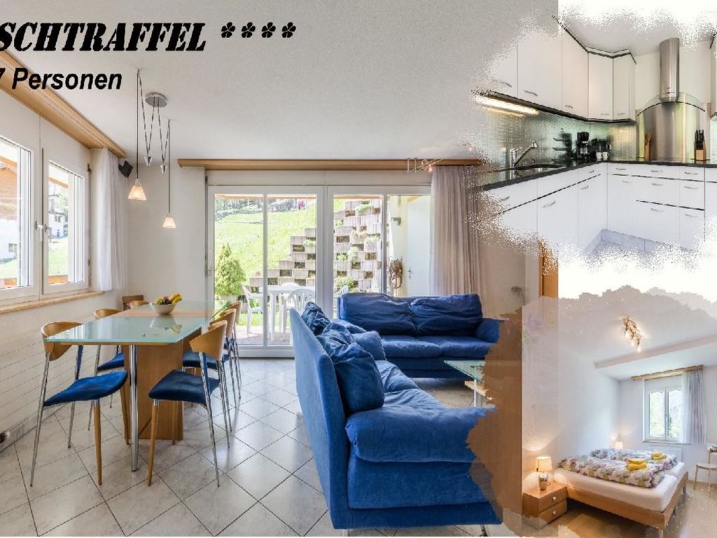 124 m2. Weitere Angaben des Anbieters: Das schöne, moderne Haus Schtraffel befindet sich beim Stafelwald, einem ruhigen Teil von Saas-Fee, 300m vom Dorfzentrum entfernt. Vom Balkon aus können Sie den Blick auf Saas-Fees Berge und Landschaft geniessen. Bei guten Schneeverhältnissen Rückfahrt zum Haus mit Ski möglich. Shops und Dorfzentrum in wenigen Gehminuten erreichbar. Sie werden diese Unterkunft schätzen wegen der ruhigen, leicht überhöhten Lage nahe zum Dorfzentrum, Restaurants und Einkaufszentrum. Das Ferienhaus gehört sich für Paare, Freunde, Bekannte, Familien mit Kindern. Bei uns erhalten Sie: Im Sommer: Bergbahnen (exkl. Metro Alpin) und Postauto im allgemeinen Saastal Spezialpreis inklusive Die Wohnung Schtraffel **** befindet sich im ersten Stock und ist eine moderne, helle und ruhige Ferienwohnung (120 m2). Sie besteht aus 1 Schlafzimmer mit 2 Betten, 1 Schlafzimmer mit 1 Doppelbett, 1 Schlafzimmer mit 1 Bett und 1 x 1 Etagenbett. Bett- und Badwäsche sind verfügbar und im Preis inbegriffen. Wohn- / Esszimmer mit schwedischem Herd, Flachbildfernseher, WLAN kostenlos, DVD, Ausgang zur Gartenterrasse. Die große separate Küche mit einem kleinen Esstisch ist gut ausgestattet mit Keramikkochfeld, Backofen, Kühlschrank, Geschirrspüler, Mikrowelle, Filterkaffeemaschine, Wasserkocher und einem Fondue-Set. Die Küche ist vollständig für die Ferien ausgestattet, einschließlich Küchenwäsche. Die Wohnung mit Panoramablick, Gartenterrasse und Ostbalkon verfügt über 1 Bad / WC und 1 Dusche / WC. Nichtraucherwohnung. Haustiere nicht erlaubt. Ein Ski- und Schuhraum sowie eine Waschmaschine stehen zur Verfügung. Ermässigung der Parkplatz Gebühren. Kurtaxe* Sommer: Erwachsene CHF 7.00/Tag, Kinder (6-16 Jahre) CHF 3.50 Kinder/Tag Kurtaxe* Winter: Erwachsene CHF 4.50/Tag, Kinder (6-16 Jahre) CHF 2.25 Kinder/Tag Bett-, Frottier- und Küchenwäsche sind vorhanden. Keine Haustiere erlaubt. * mit der Bezahlung der obligatorischen Kurtaxe erhalten Sie bei uns direkt bei Ankunft die attraktive Gästekarte (SaastalCard). Ihre Ferienfreiheit in der Perle der Alpen Saas-Fee ist und bleibt grenzenlos!