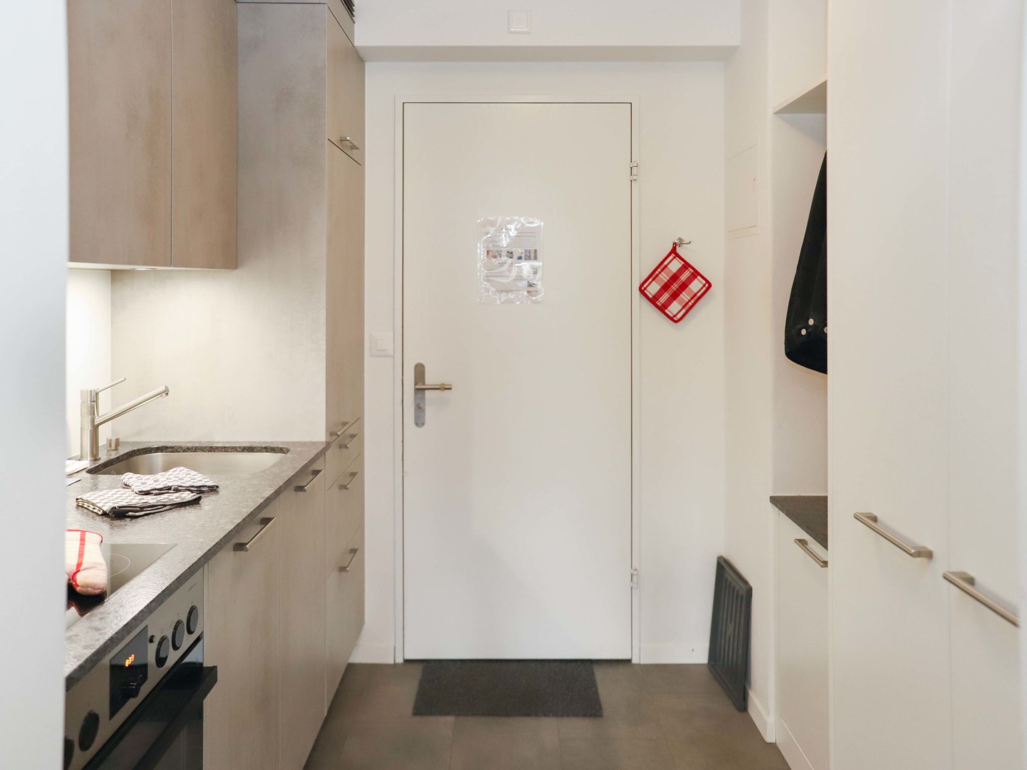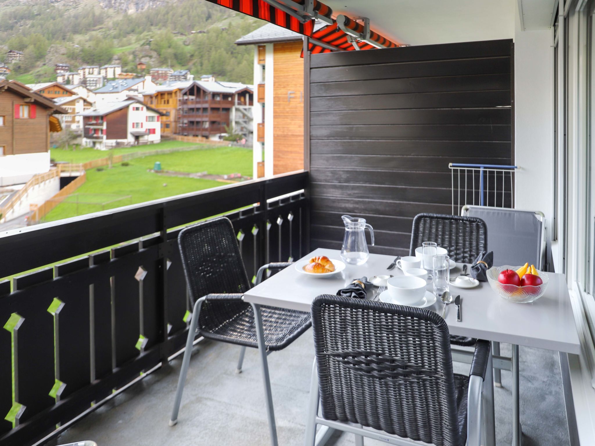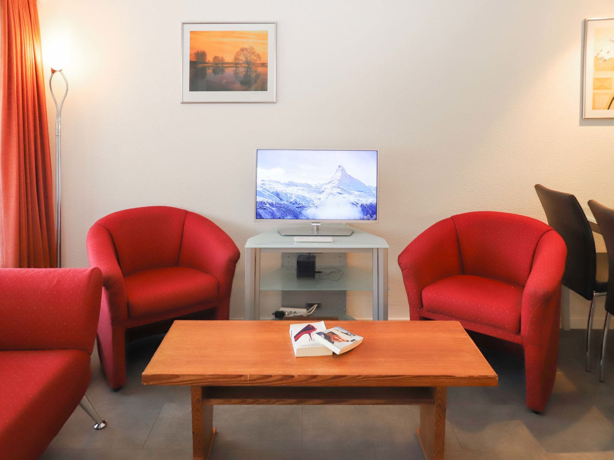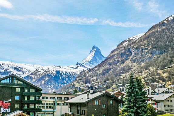 1-Zimmer-Wohnung 33 m2 im 4. Stock, Südlage. Wohn-/Esszimmer mit 2 Wandklappbetten und TV (Flachbildschirm), Radio. Kochnische im Eingang (3 Kochplatten, Backofen, Geschirrspüler, elektrische Kaffeemaschine). Bad/WC. Balkon. Terrassenmöbel. Sehr schöne Sicht auf die Berge und das Matterhorn. Zur Verfügung: Internet (WLAN, gratis). Bitte beachten: Nichtraucher-Unterkunft. Wunderschöne Sicht auf das Matterhorn.