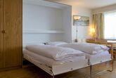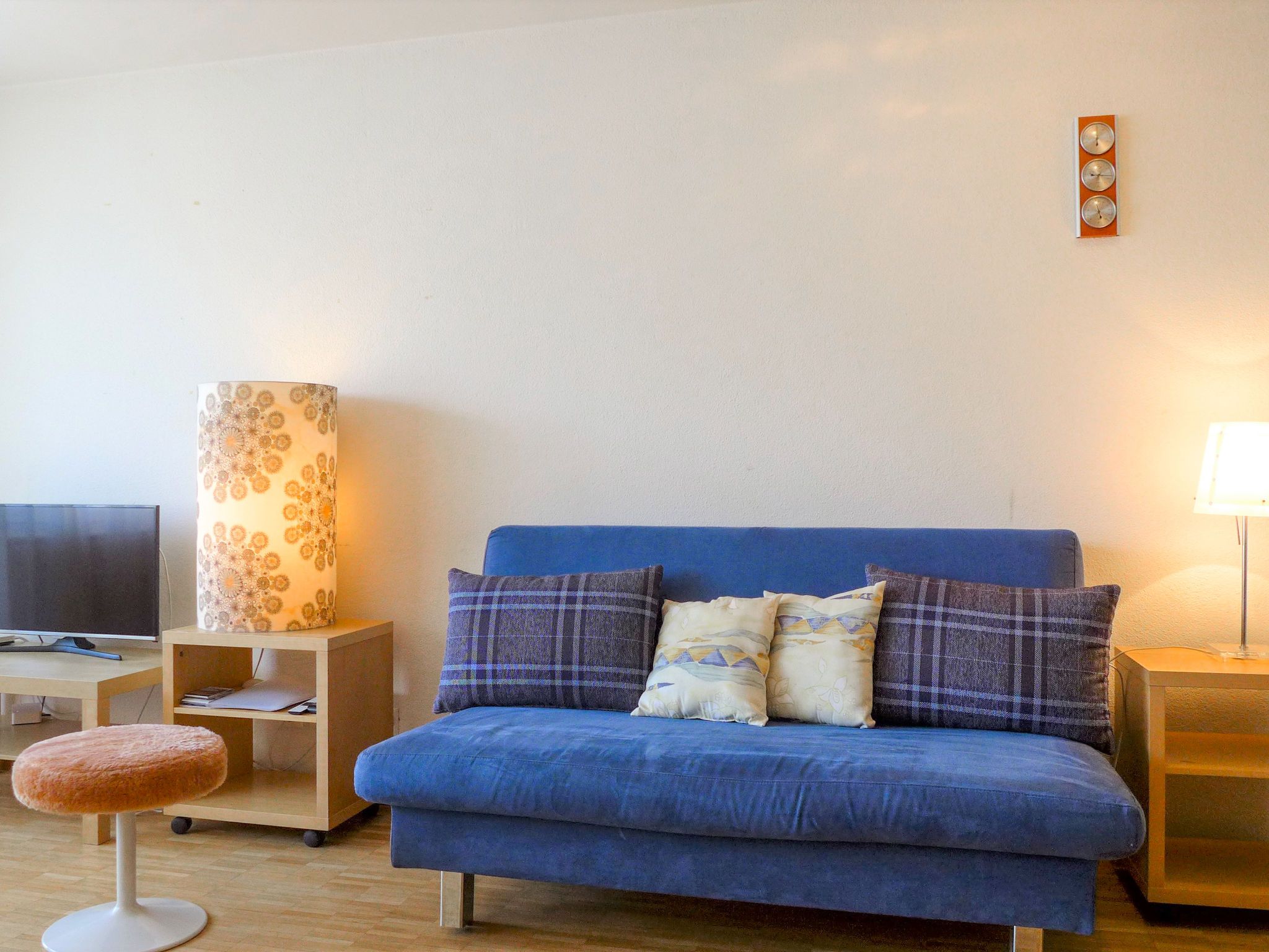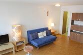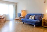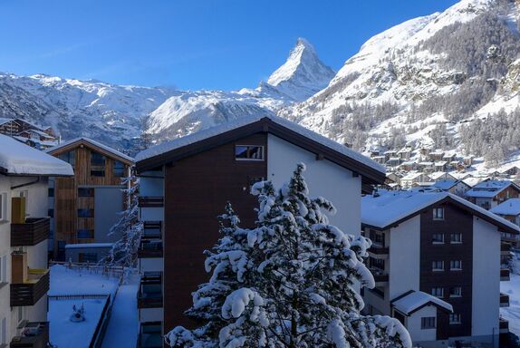 1-Zimmer-Wohnung 35 m2 im 1. Stock. Hell, einfach und gemütlich eingerichtet: Wohn-/Schlafzimmer mit 1 Diwanbett (120 cm, Länge 200 cm), 1 Doppelwandklappbett (2 x 90 cm, Länge 200 cm), Esstisch und Kabel-TV. Ausgang zum Balkon. Küche (Backofen, 4 Induktionskochplatten, Toaster, Wasserkocher, Mikrowelle, Tiefkühler, elektrische Kaffeemaschine, Fondue Set (Käse)). Bad/WC. Heizung. Balkon 8 m2, Südlage und Westlage. Balkonmöbel. Sehr schöne Sicht auf das Matterhorn. Zur Verfügung: Haartrockner. Internet (Wireless LAN, gratis). Bitte beachten: Nichtraucher-Unterkunft.