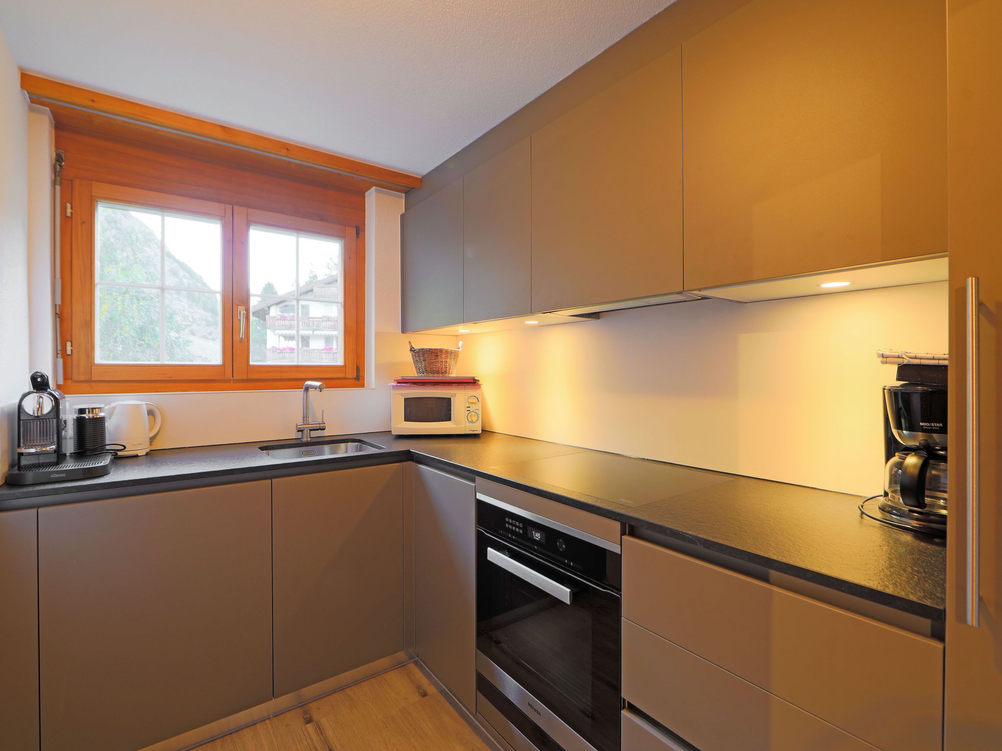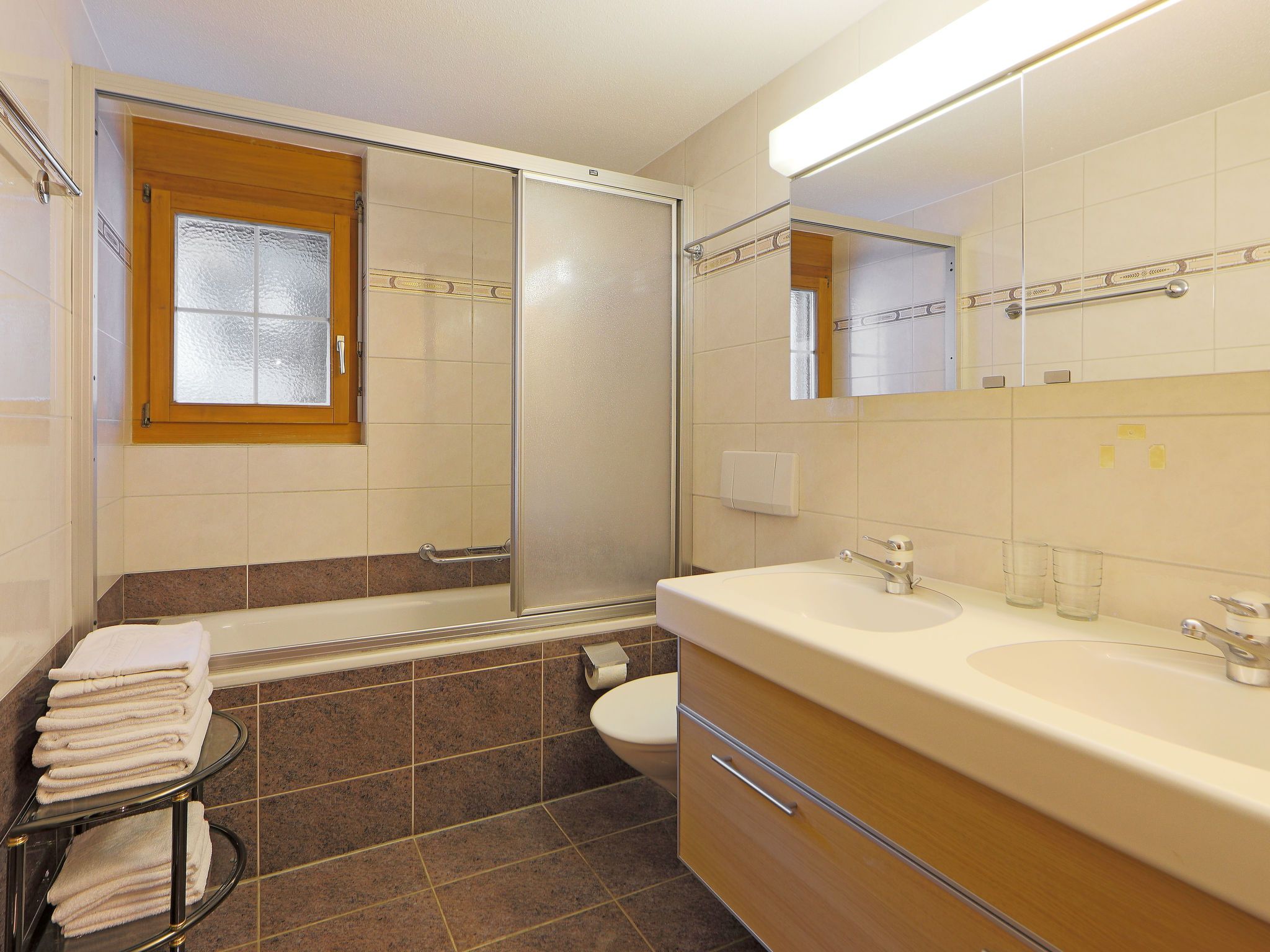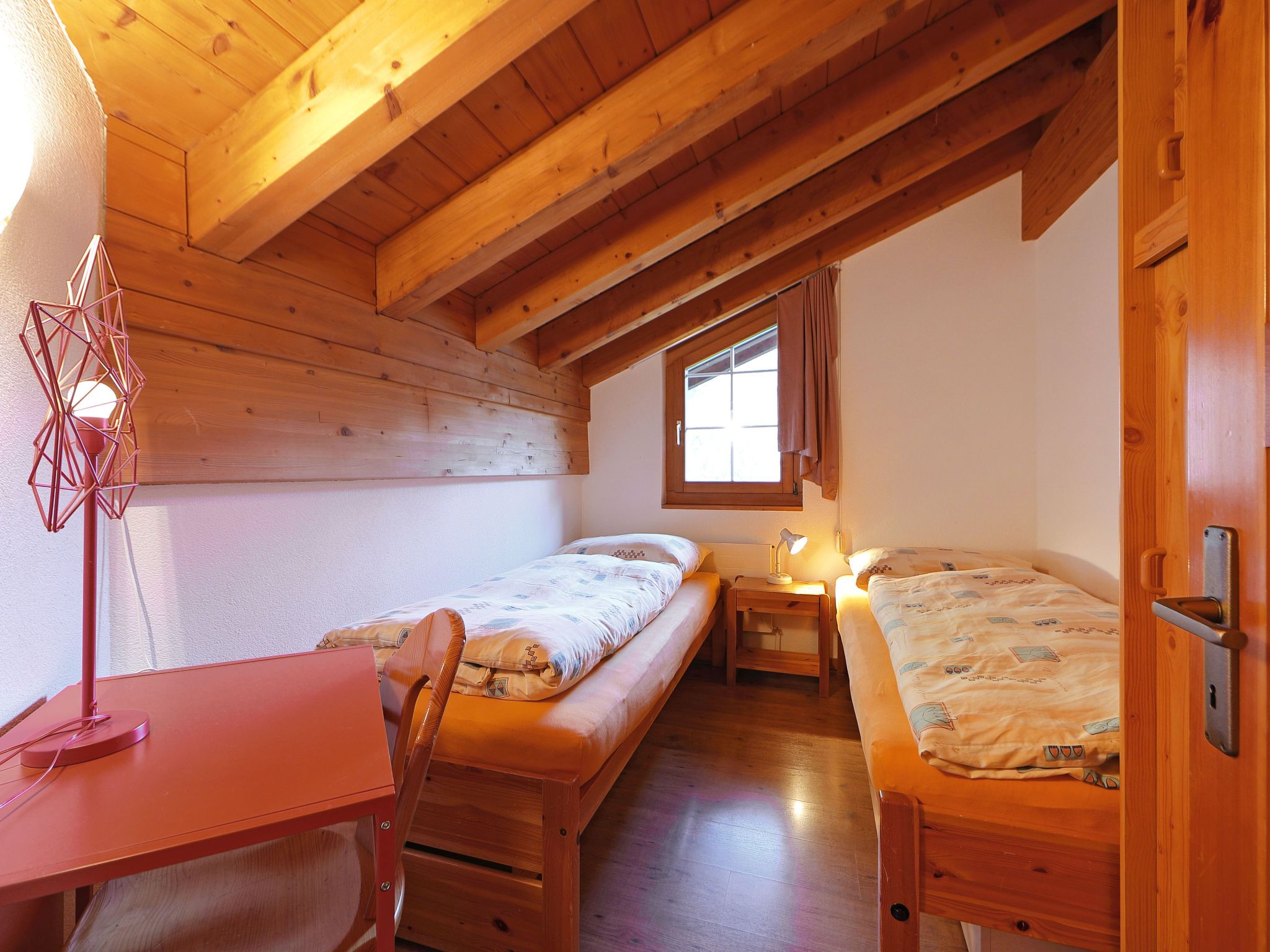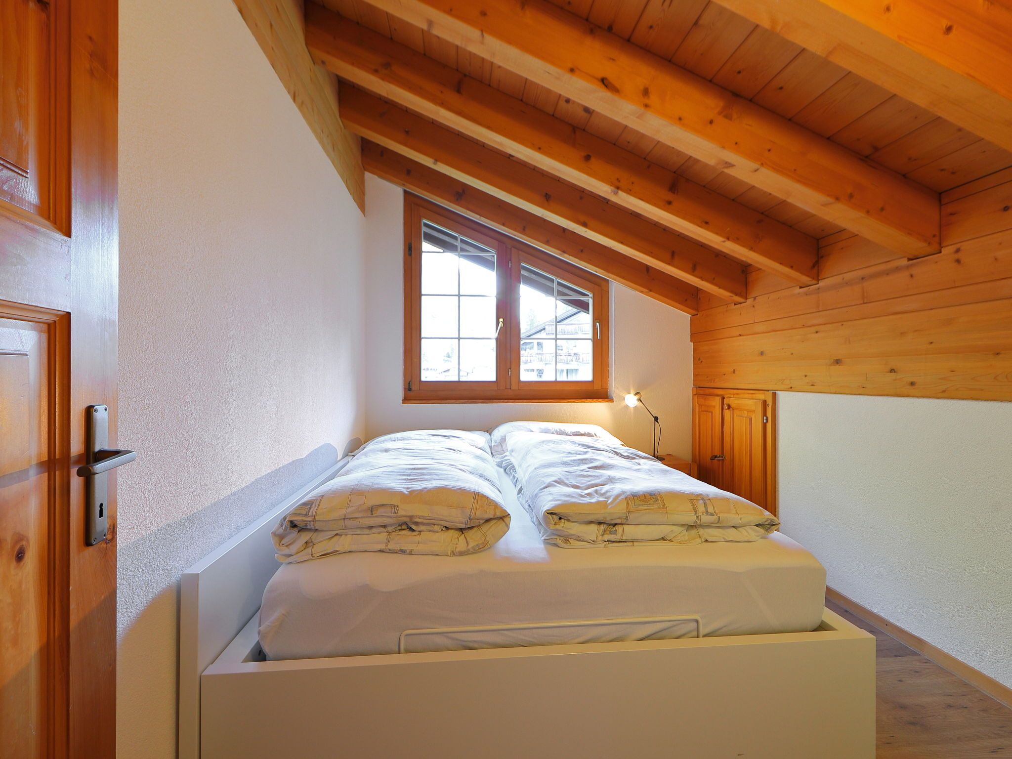 5-Zimmer-Wohnung 110 m2 auf 2 Stockwerken im 3. Stock, Südwestlage. Modern und geschmackvoll eingerichtet: Wohn-/Esszimmer 25 m2 mit Schwedenofen, Esstisch, TV und Radio. Ausgang zum Balkon. 1 Doppelzimmer mit 2 Betten. 1 Zimmer mit 2 Betten. Küche (Backofen, Geschirrspüler, 4 Glaskeramikplatten, Toaster, Wasserkocher, Mikrowelle, Tiefkühler, elektrische Kaffeemaschine, Racletteofen, Fondue Set (Chinoise, Käse)). Bad/WC. Obergeschoss: 2 Zimmer, jedes Zimmer mit 1 Doppelbett (1 x 160 cm, Länge 200 cm). Dusche/WC. Balkon. Balkonmöbel. Sehr schöne Sicht auf die Berge und auf das Matterhorn. Zur Verfügung: Haartrockner. Internet (WLAN, gratis). Bitte beachten: Nichtraucher-Unterkunft. Maximal 1 Haustier/Hund erlaubt.