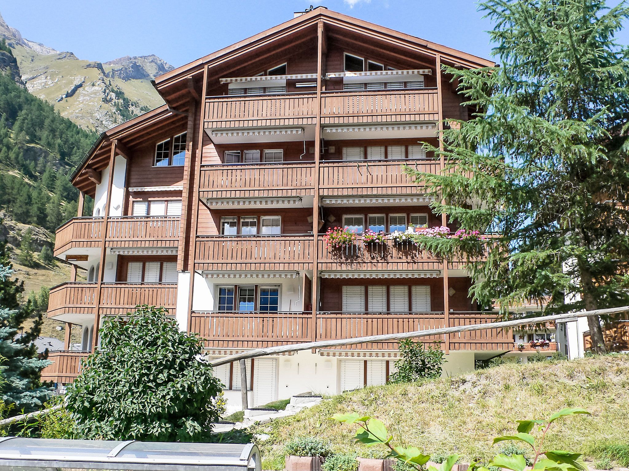 Grosses, komfortables Mehrfamilienhaus Les Violettes, auf 5 Stockwerken. Im Ortsteil Spiss, 600 m vom Zentrum, ruhige Lage, Richtung Südwesten. Im Hause: Sauna (extra). Fahrstuhl, Skiraum, Zentralheizung. Supermarkt 450 m, Restaurant 600 m, Bäckerei, Fahrradverleih 600 m, Zentrum zu Fuss in 8 Minuten erreichbar, Bushaltestelle Spiss 60 m, Bahnstation Bahnhof Zermatt 600 m. Bergeisenbahn 500 m, Skiverleih 500 m, Skibushaltestelle 50 m, Skischule 900 m, Kinderskischule. Die Schlüsselübergabe findet bei der Agentur Interhome in Zermatt statt.