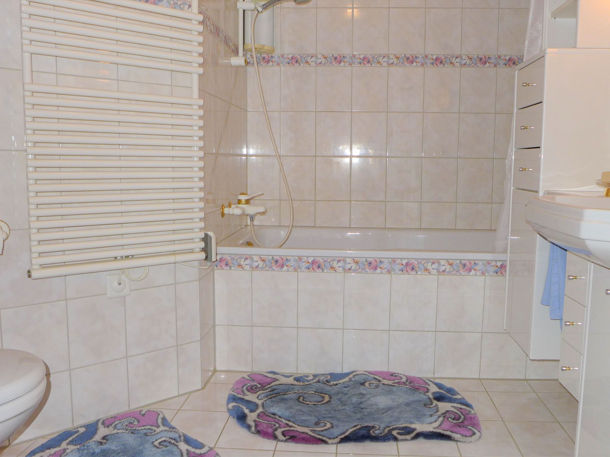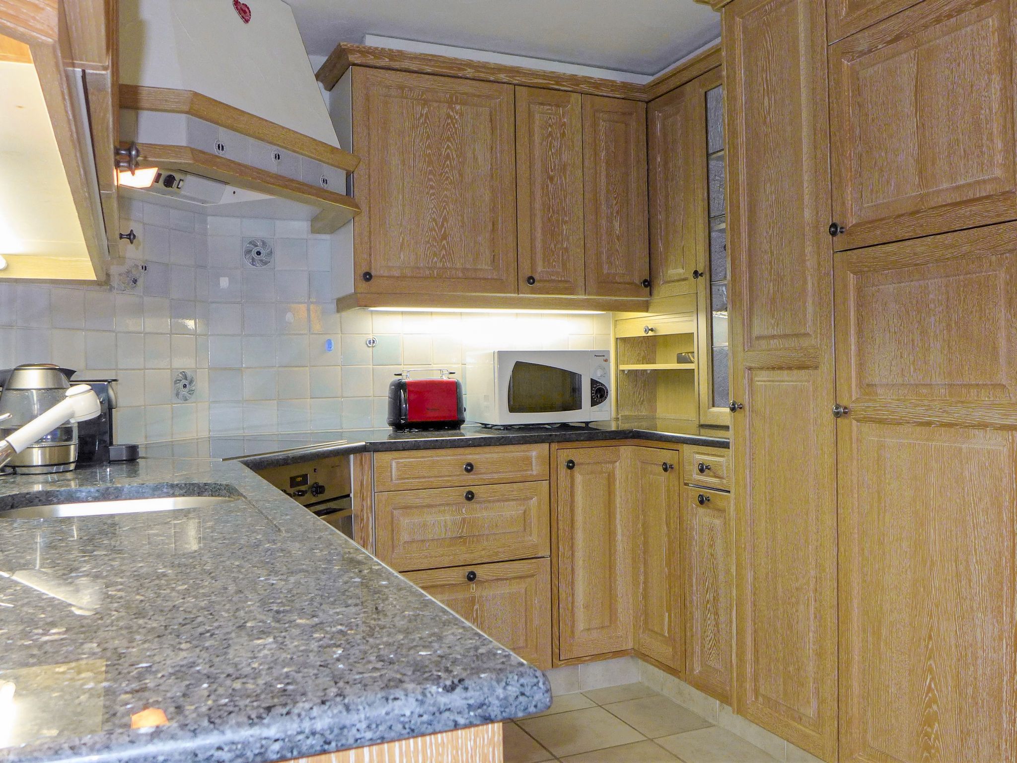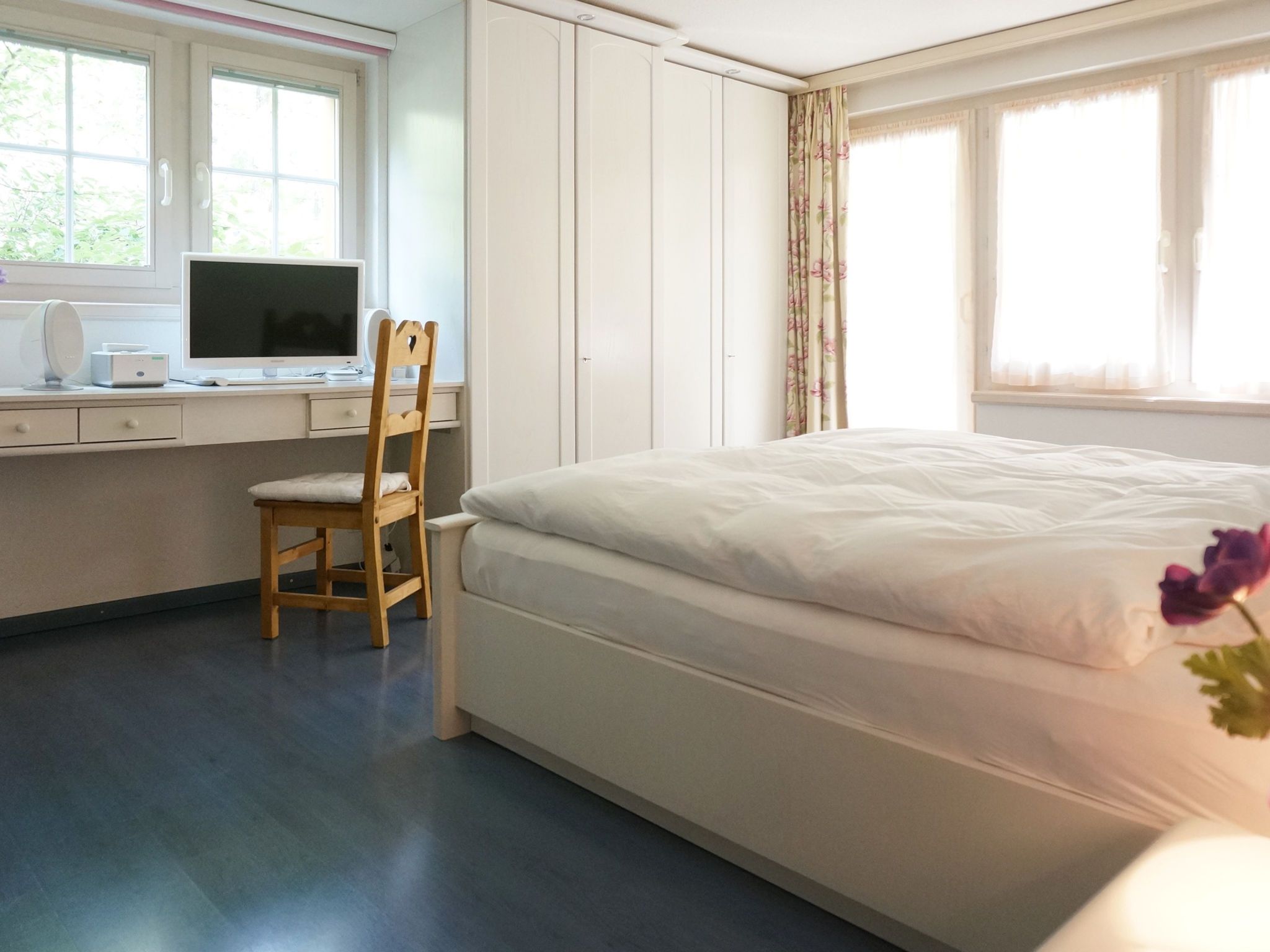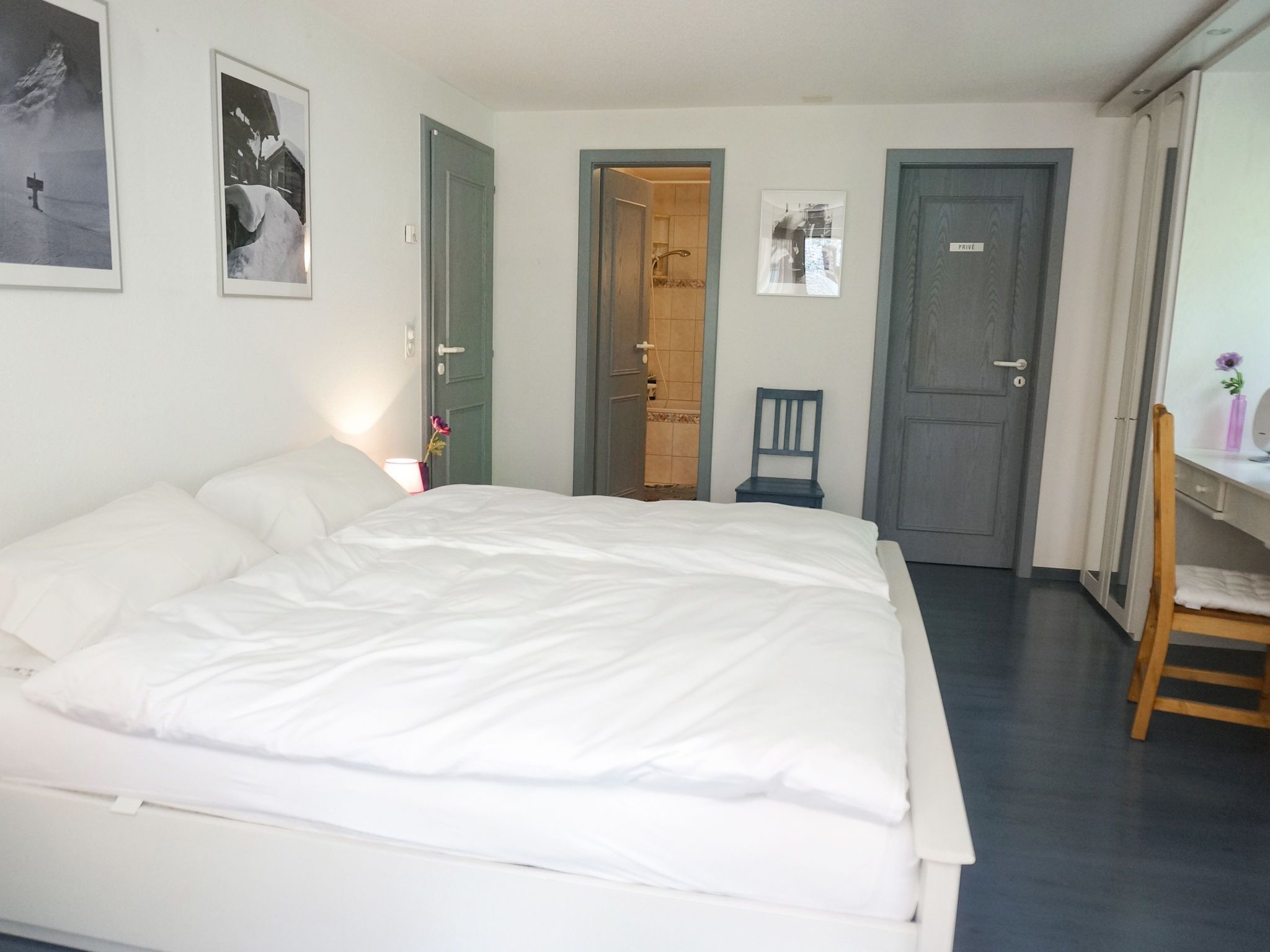 4-Zimmer-Wohnung 126 m2 im 2. Stock, Südlage. Hell, renoviert im Jahre 2021, komfortabel und schön eingerichtet: Wohnzimmer mit Schwedenofen und TV. Ausgang zum Balkon, Richtung Süden. 1 Doppelzimmer mit 1 Doppelbett (2 x 90 cm, Länge 200 cm), Bad/WC, TV und CD. Ausgang zum Balkon, Richtung Osten. 1 Doppelzimmer mit 1 Doppelbett (1 x 160 cm, Länge 200 cm). 1 Zimmer mit 1 Doppelbett (2 x 90 cm, Länge 200 cm). Offene Küche (Backofen, Geschirrspüler, 4 Induktionskochplatten, Wasserkocher, Mikrowelle, Tiefkühler, elektrische Kaffeemaschine). Dusche/WC. Heizung. Natursteinboden. Balkon, Südlage, kleiner Balkon, Ostlage. Balkonmöbel. Sehr schöne Sicht auf das Matterhorn. Zur Verfügung: Internet (Wireless LAN, gratis). Bitte beachten: Nichtraucher-Unterkunft.