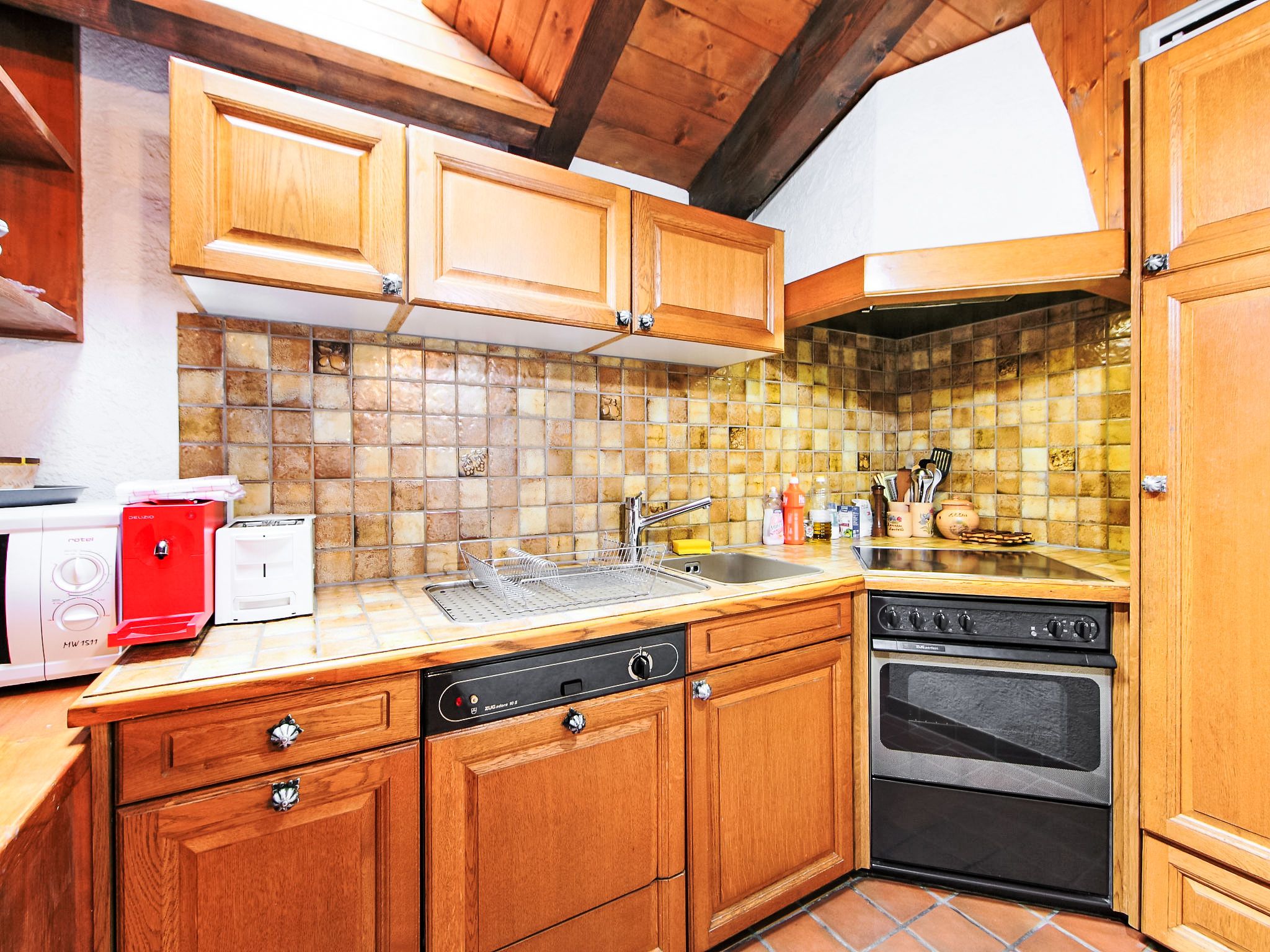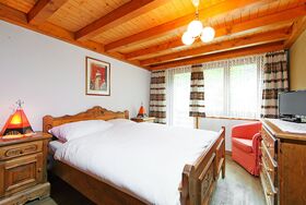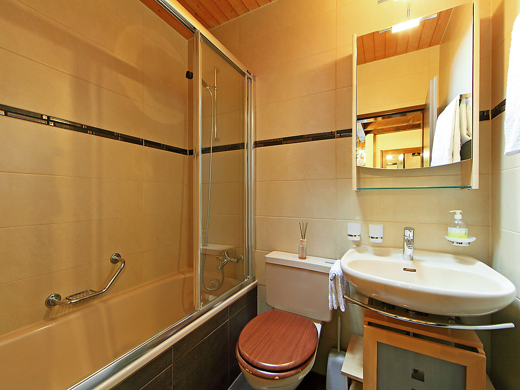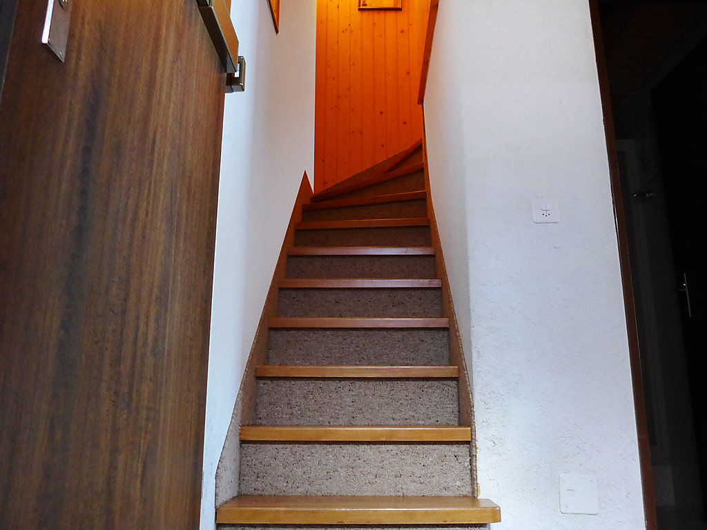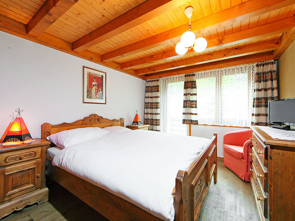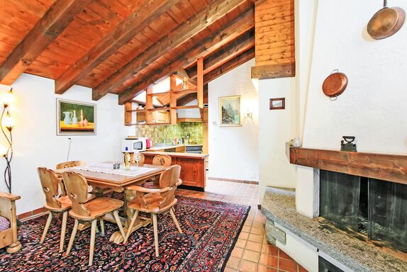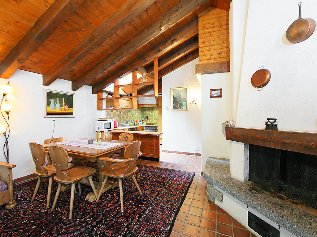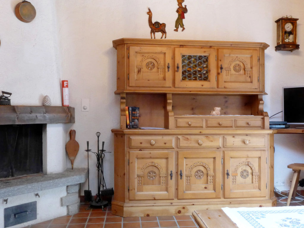 3-Zimmer-Wohnung 80 m2 auf 2 Stockwerken, im Dachgeschoss. Gemütlich eingerichtet: Wohn-/Esszimmer mit offenem Kamin, Esstisch und TV. Ausgang zum Balkon. 1 Zimmer mit 1 Doppelbett (1 x 160 cm, Länge 200 cm), TV. Offene Küche (Backofen, Geschirrspüler, 4 Glaskeramikplatten, Toaster, Wasserkocher, Mikrowelle, Tiefkühler, elektrische Kaffeemaschine, Racletteofen, Fondue Set (Chinoise, Käse)). Bad/WC, Dusche/WC. Obergeschoss: 1 Zimmer mit 2 Betten (90 cm, Länge 200 cm). Balkon, Südlage und Ostlage. Balkonmöbel. Sicht auf die Berge. Zur Verfügung: Haartrockner. Internet (Wireless LAN, gratis). Bitte beachten: Nichtraucher-Unterkunft.