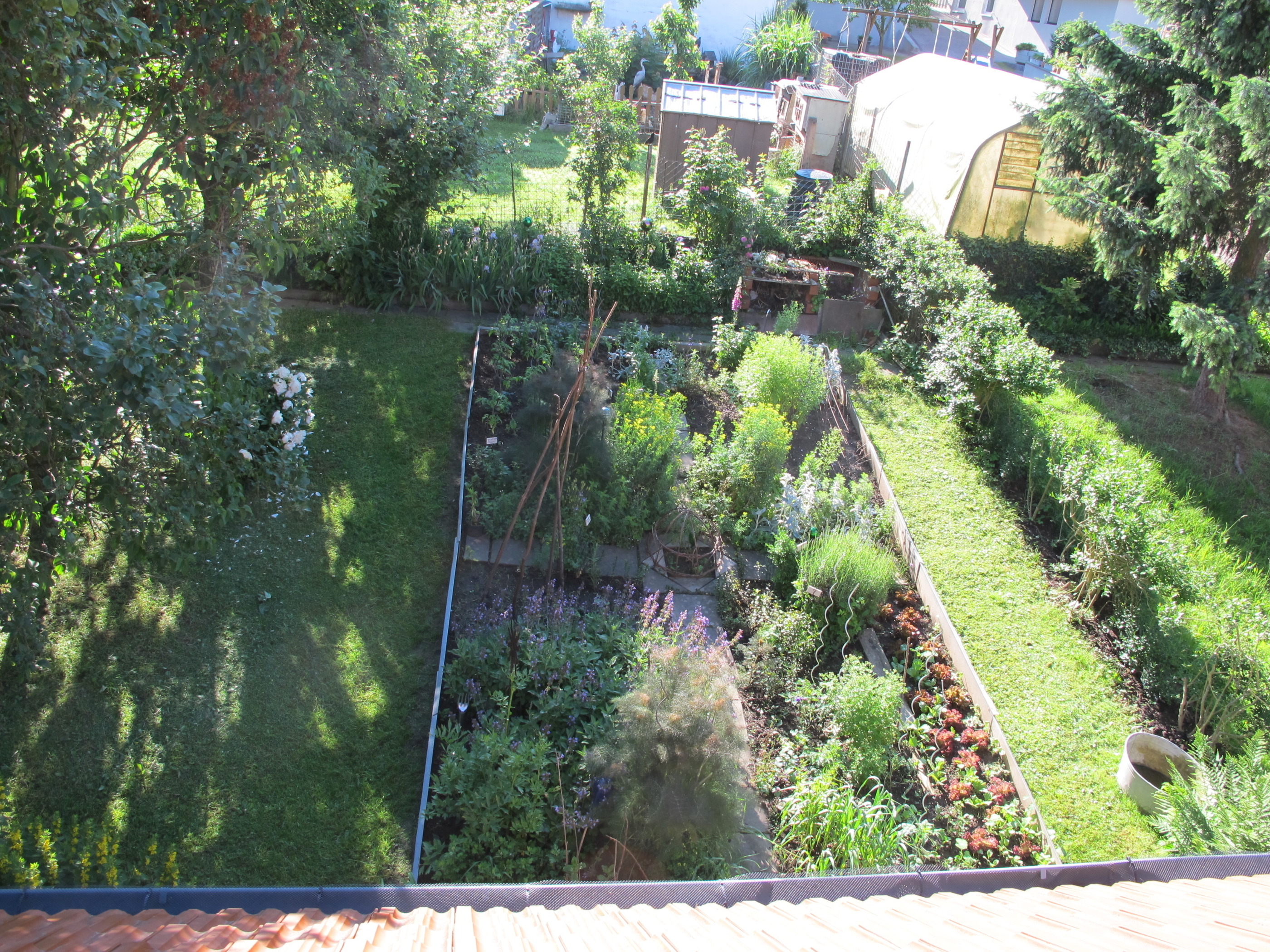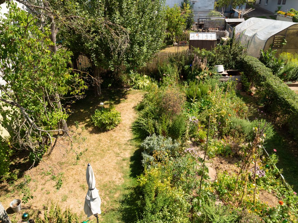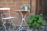 Kleine Terrasse: auf der Gartenseite mit kleinem Tisch und 2 Stühlen, Grillmöglichkeit