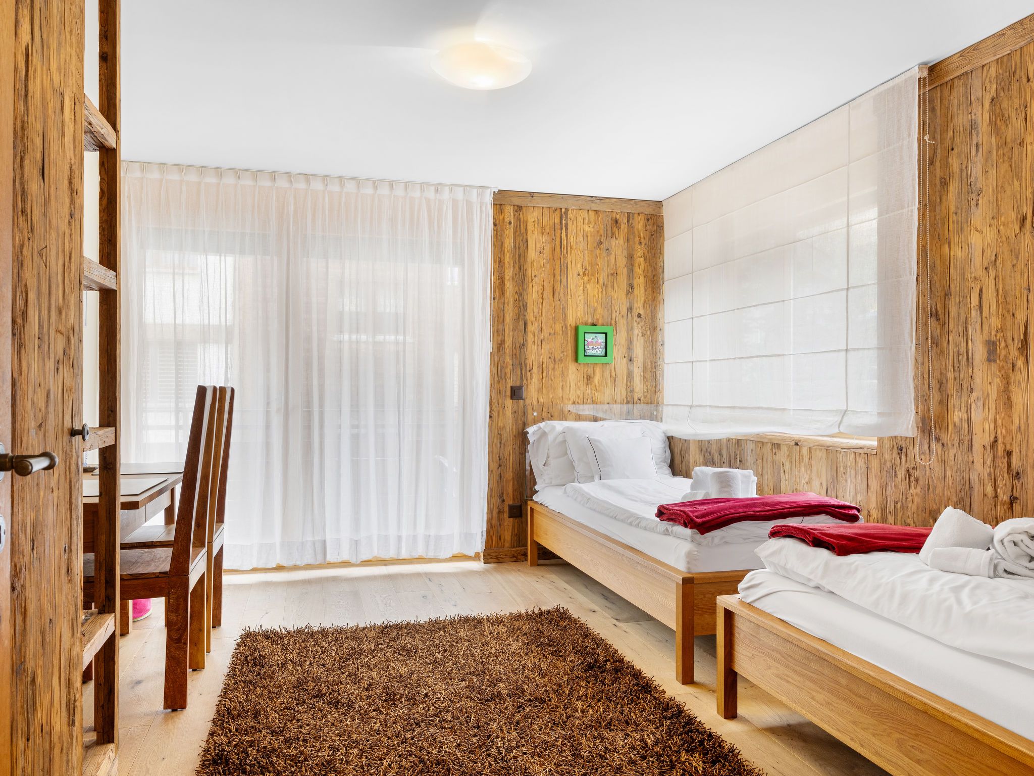 4-Zimmer-Wohnung 123 m2 auf 2 Stockwerken im 3. Stock. Luxuriös und gemütlich eingerichtet: 1 Doppelzimmer mit 1 Doppelbett und TV. Wohn-/Esszimmer mit offenem Kamin, Esstisch, TV, Radio, CD und DVD. Ausgang zum Balkon, Richtung Süden. Offene Küche (Backofen, Geschirrspüler, 4 Induktionskochplatten, Toaster, Wasserkocher, elektrische Kaffeemaschine, Kapseln für die Kaffeemaschine (Nespresso) extra, Racletteofen, Fondue Set (Käse)). Bad/WC, Whirlbadewanne. Unteres Geschoss: 1 Doppelzimmer mit 1 Doppelbett (180 cm, Länge 200 cm), TV. Ausgang zum Balkon, Richtung Süden. 1 Zimmer mit 2 Betten (90 cm, Länge 200 cm), TV. Bad/WC, Whirlbadewanne. Balkon. Balkonmöbel. Schöne Sicht auf die Berge. Zur Verfügung: Safe, Haartrockner. Internet (WLAN, gratis). Bitte beachten: Nichtraucher-Unterkunft.