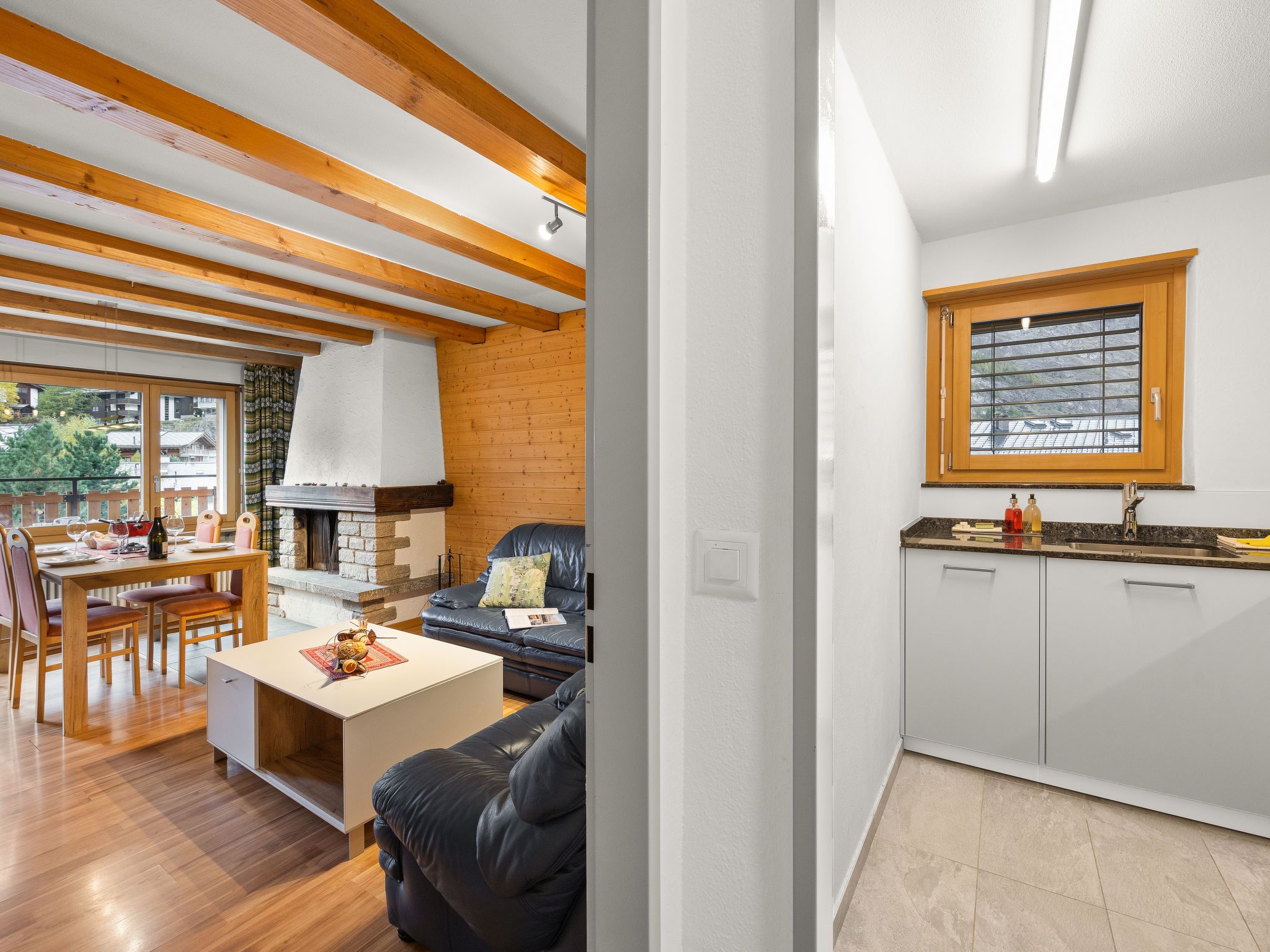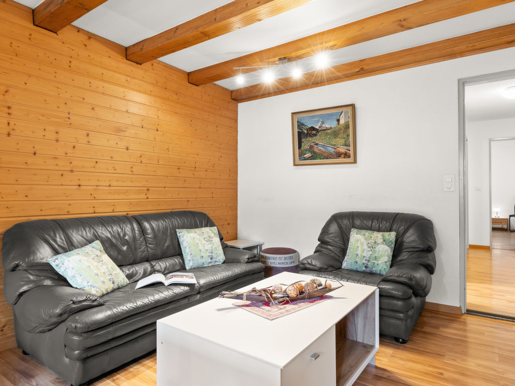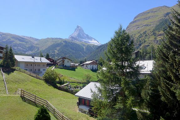 3-Zimmer-Wohnung 85 m2 im 3. Stock. Teilweise renoviert im Jahre 2018, einfach und gemütlich eingerichtet: Wohn-/Esszimmer mit offenem Kamin, Esstisch und Kabel-TV. Ausgang zum Balkon. 1 Doppelzimmer mit 2 Betten (90 cm, Länge 200 cm). 1 Doppelzimmer mit 2 Betten (90 cm, Länge 200 cm). Kleine Küche (Backofen, Geschirrspüler, 4 Glaskeramikplatten, Toaster, Wasserkocher, Tiefkühler, elektrische Kaffeemaschine, Racletteofen, Fondue Set (Käse)). Bad/WC, Dusche/WC. Balkon 10 m2, Südlage und Westlage. Balkonmöbel. Sehr schöne Sicht auf Matterhorn. Zur Verfügung: Haartrockner. Internet (Wireless LAN, gratis). Bitte beachten: Nichtraucher-Unterkunft.