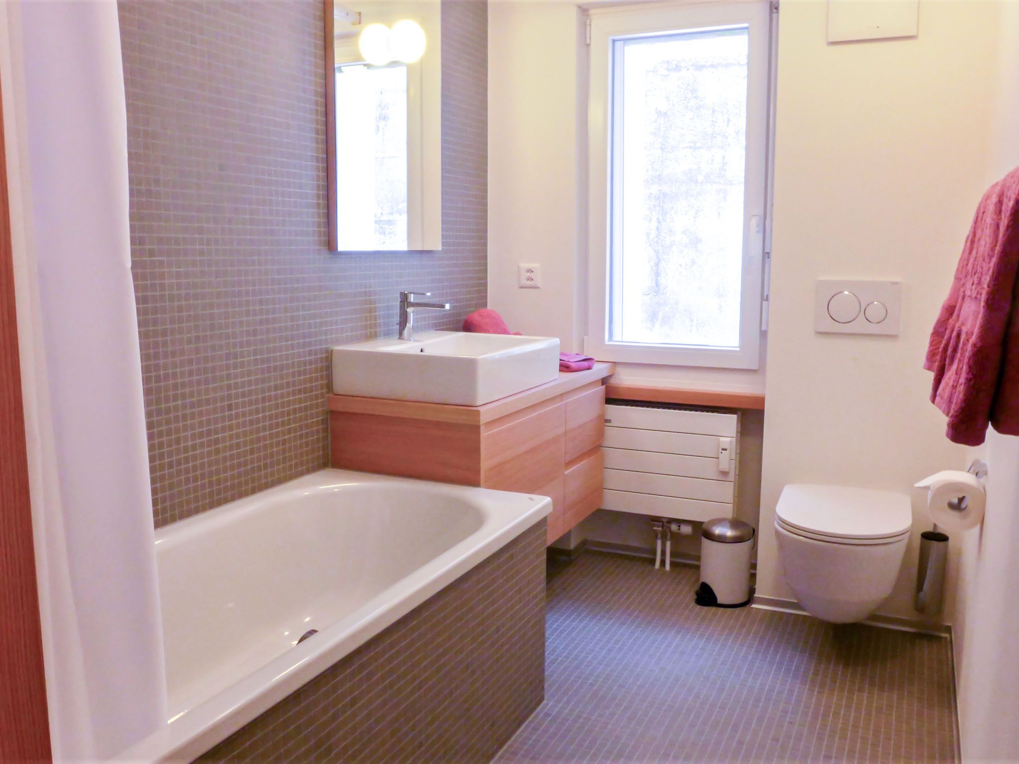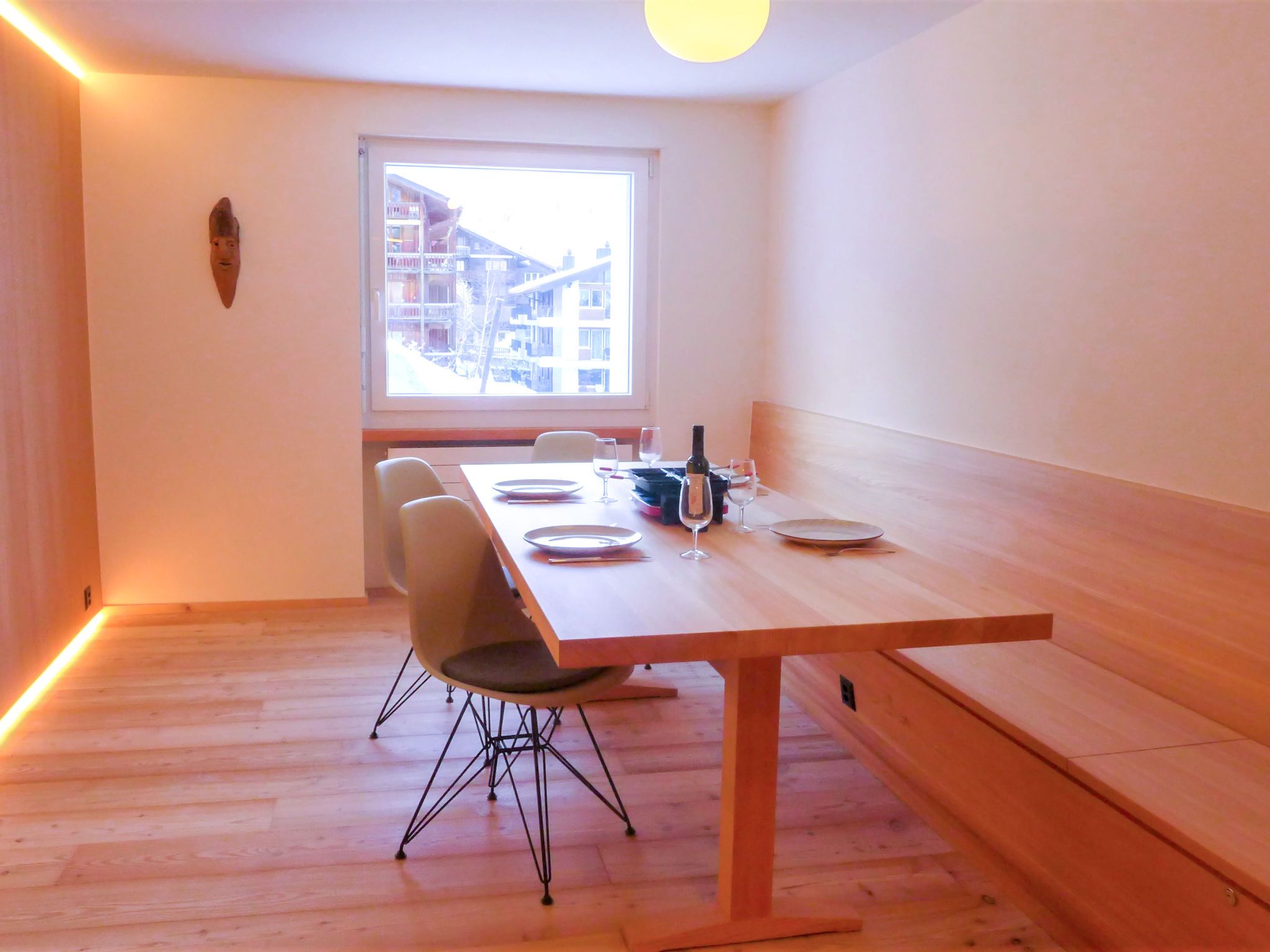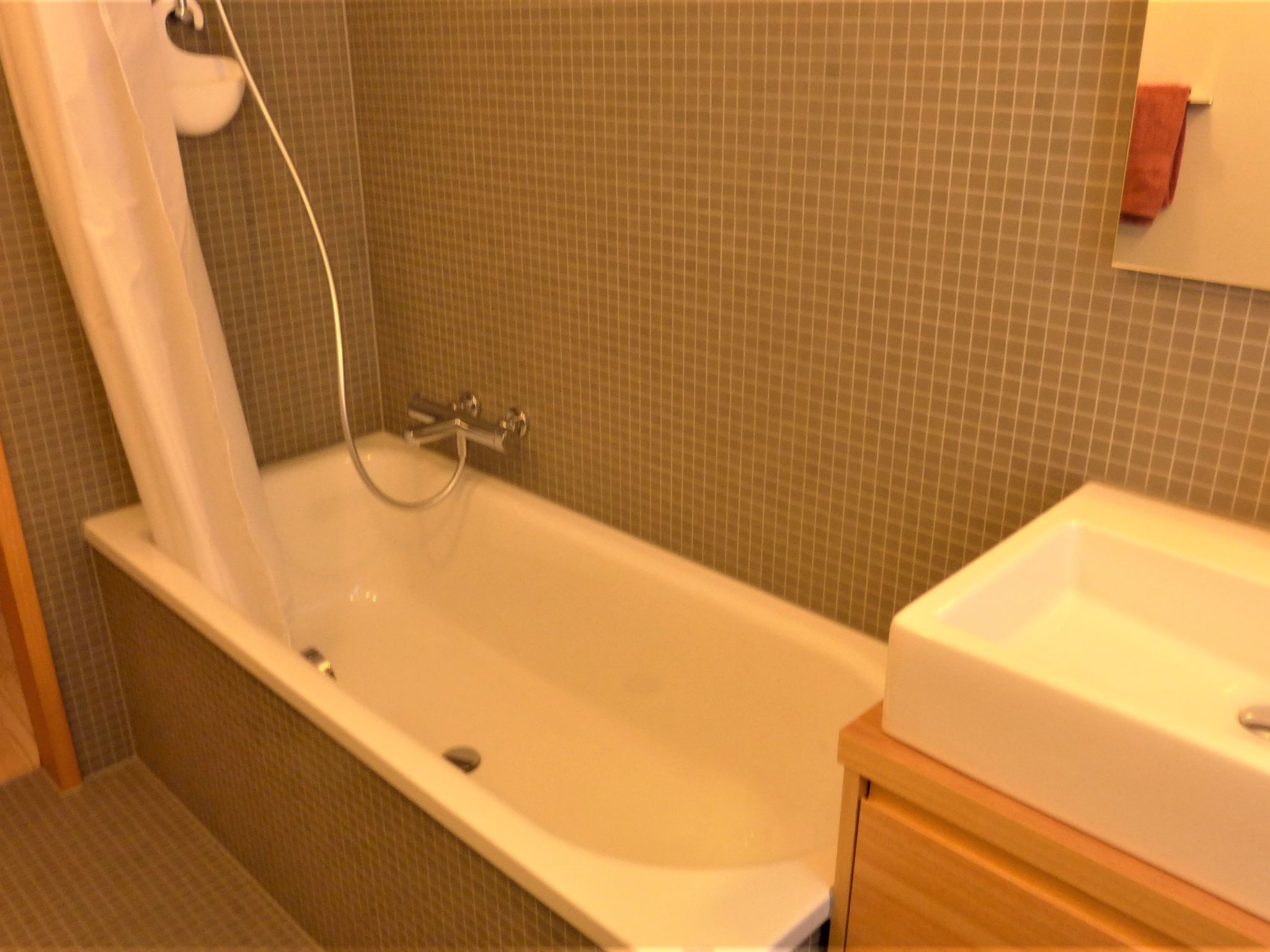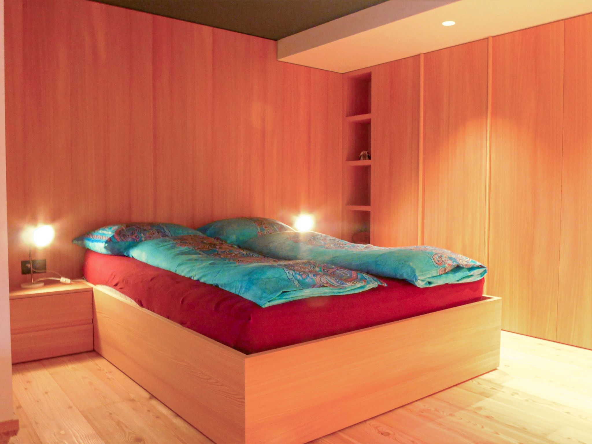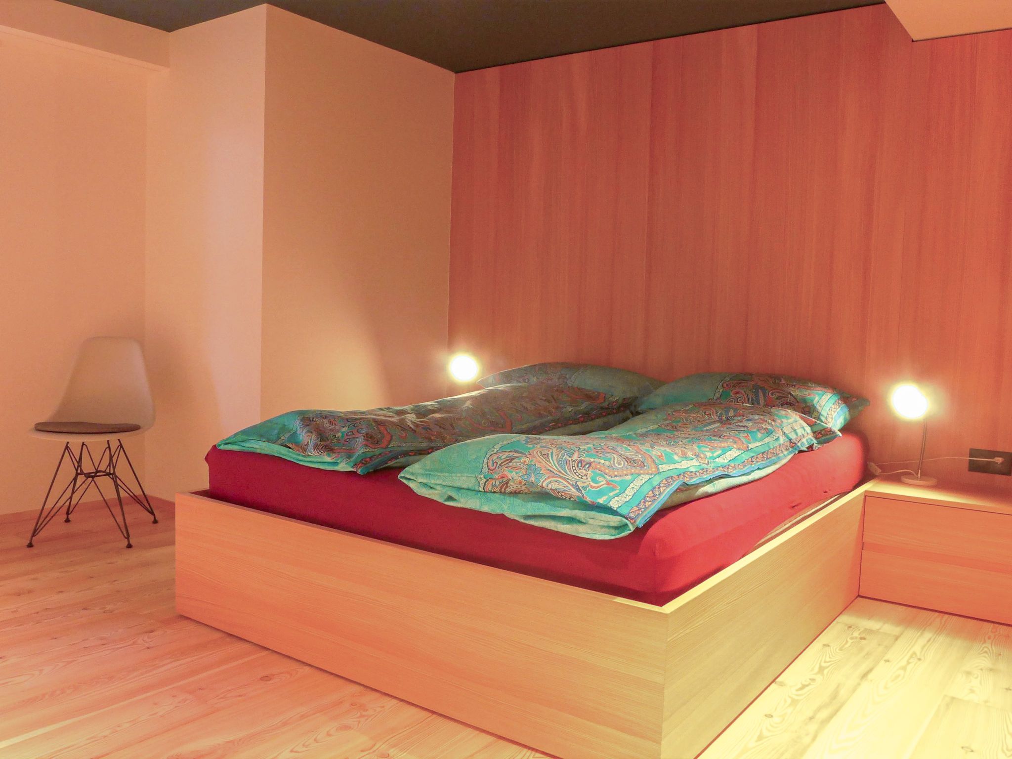 2-Zimmer-Wohnung 70 m2 im 2. Stock, Südlage. Geräumig, vollständig renoviert im Jahre 2022, schön und modern eingerichtet: Wohnzimmer mit Esstisch, TV und Stereoanlage. Durchgangszimmer mit 1 Doppelbett (1 x 160 cm, Länge 200 cm). Ausgang zum Balkon. Küche (Backofen, Geschirrspüler, 4 Induktionskochplatten, Toaster, Wasserkocher, Tiefkühler, elektrische Kaffeemaschine, Racletteofen, Kombinationsmikrowelle, Fondue Set (Käse)). Bad/WC. Heizung. Kleiner Balkon, Südlage und Ostlage. Balkonmöbel. Seitliche Sicht auf die Berge. Zur Verfügung: Haartrockner. Internet (Wireless LAN, gratis). Bitte beachten: Nichtraucher-Unterkunft.