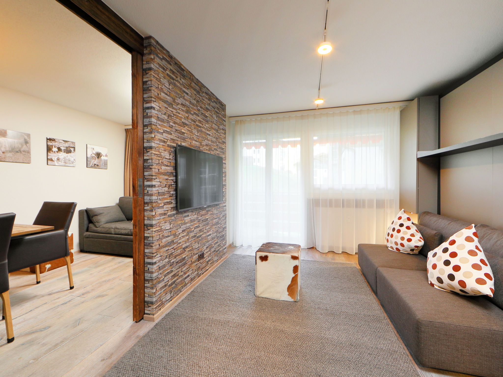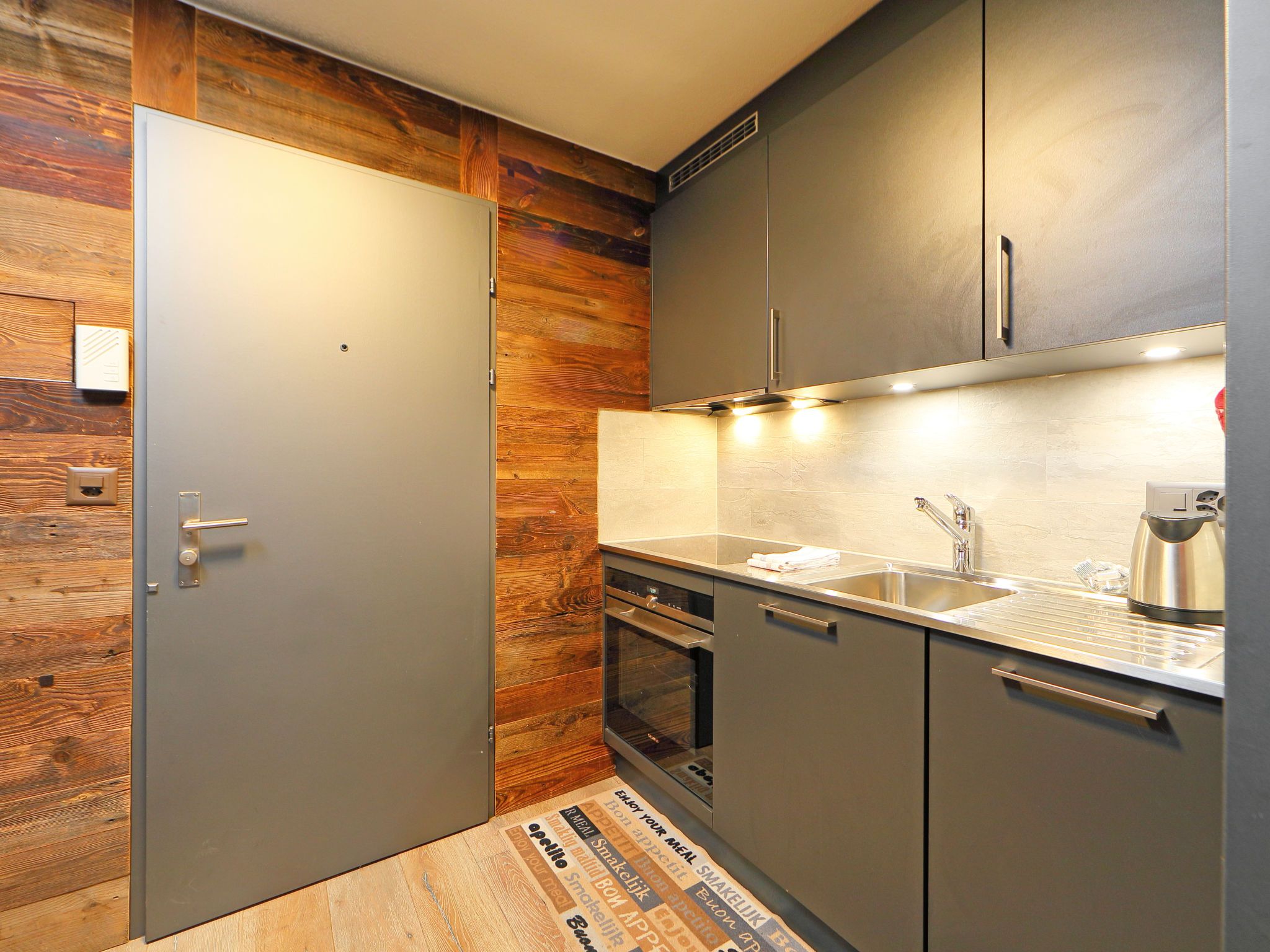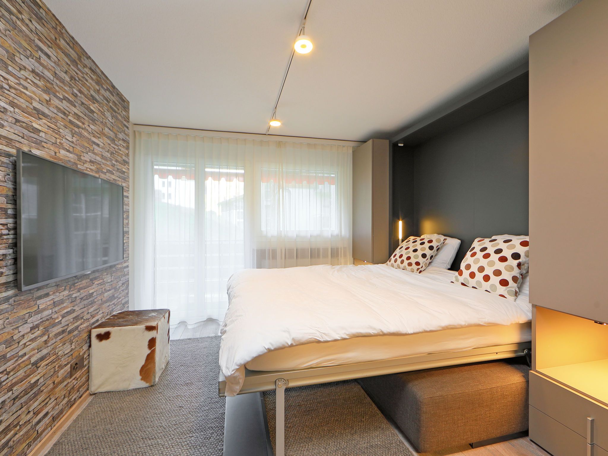 1-Zimmer-Wohnung 45 m2, Südlage. Vollständig renoviert im Jahre 2016, schön und gemütlich eingerichtet: Wohn-/Schlafzimmer mit 2 Doppeldiwanbetten (140 cm, Länge 200 cm), Esstisch und TV. Ausgang zum Balkon. Kleine Küche (Backofen, 4 Glaskeramikplatten, Toaster, Wasserkocher, Tiefkühler, elektrische Kaffeemaschine, Fondue Set (Chinoise, Käse)). Bad/WC. Balkon, Südlage. Balkonmöbel. Schöne Sicht auf das Matterhorn. Zur Verfügung: Haartrockner. Internet (Wireless LAN, gratis). Bitte beachten: Nichtraucher-Unterkunft.