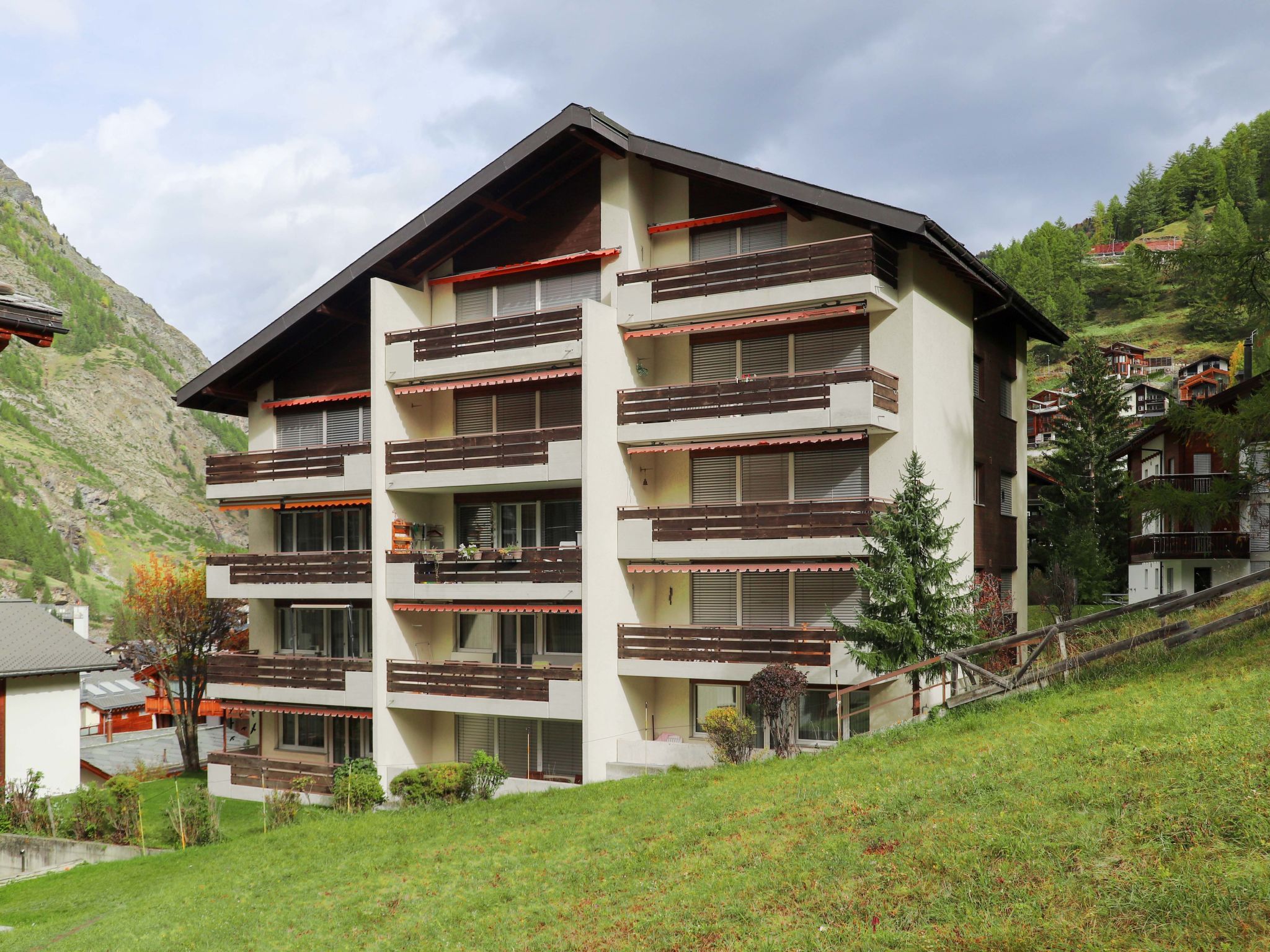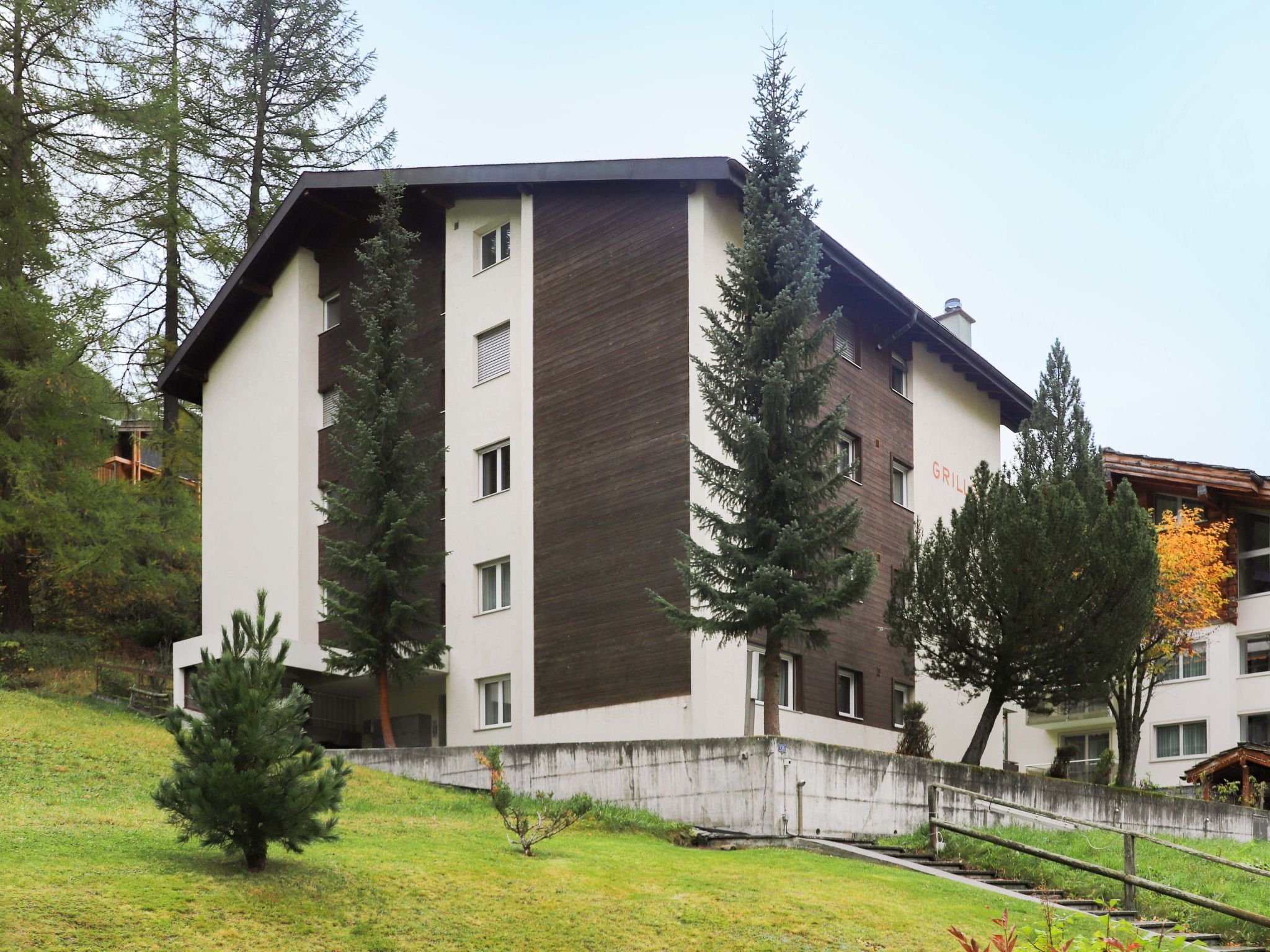 Einfaches Mehrfamilienhaus Grillon, auf 4 Stockwerken. Im Ortsteil Wiesti, 650 m vom Zentrum von Zermatt, ruhige, erhöhte Lage, Richtung Süden. Im Hause: Fahrstuhl, Skiraum, Zentralheizung. Treppenweg bis zum Haus. Supermarkt 500 m, Restaurant 100 m, Bäckerei 400 m, Zentrum zu Fuss in 10 Minuten erreichbar, Bushaltestelle Wiestibrücke 260 m, Bahnstation Bahnhof Zermatt 650 m. Bergeisenbahn 350 m, Skiverleih 350 m, Skibushaltestelle, Skischule 750 m, Kinderskischule. Taxi kann nicht bis zum Haus fahren. Die Schlüsselübergabe findet bei der Agentur Interhome in Zermatt statt.