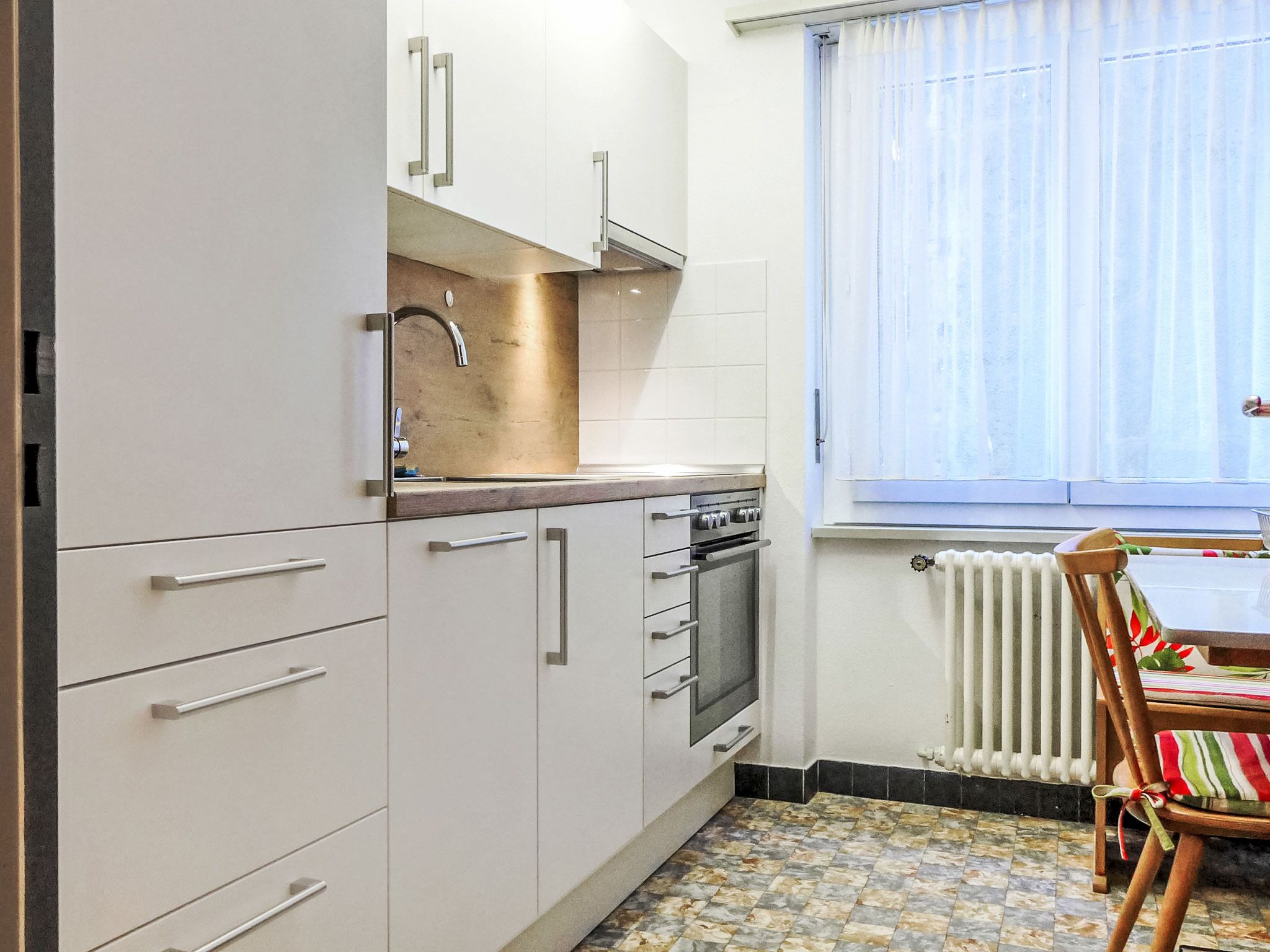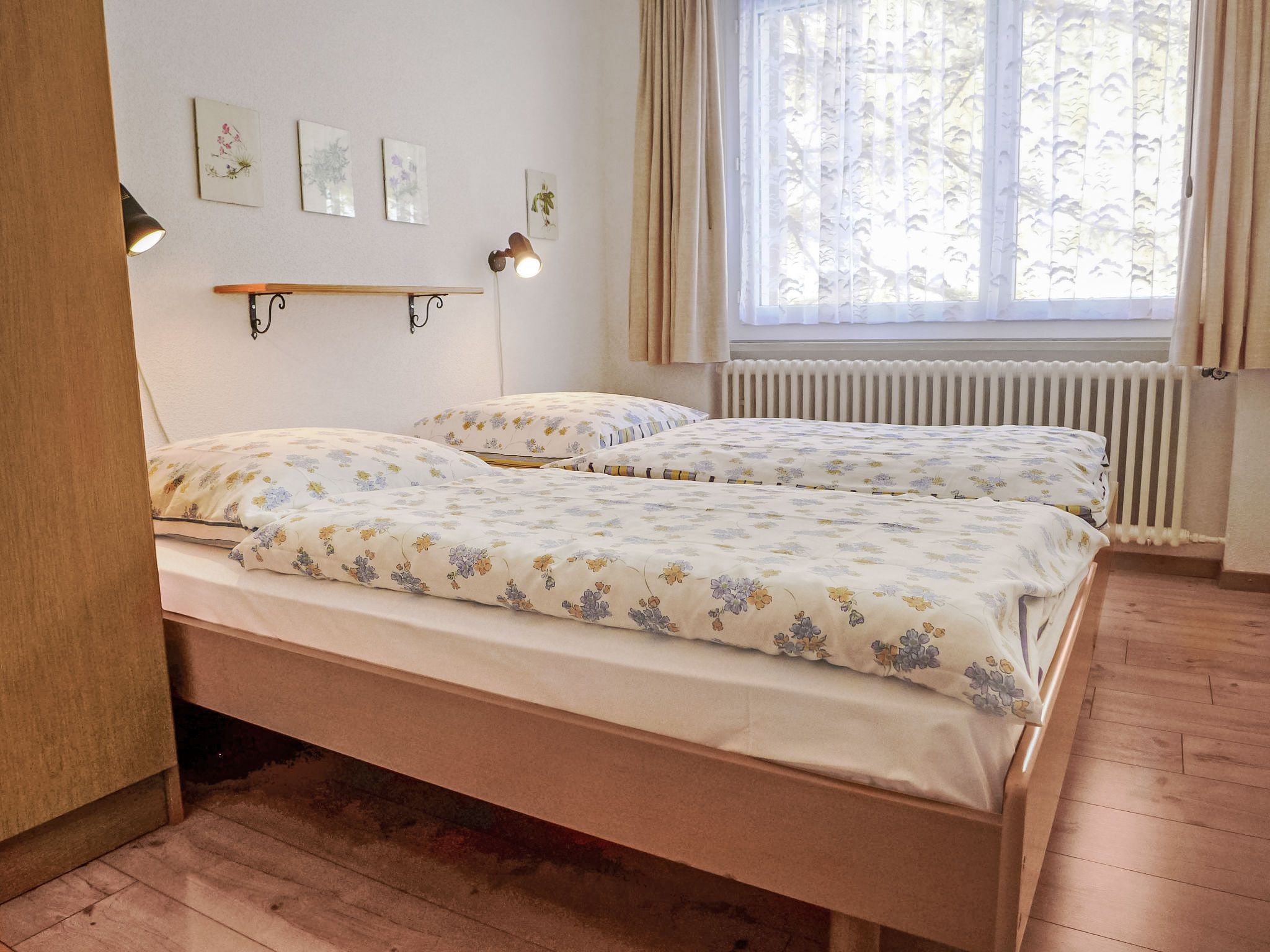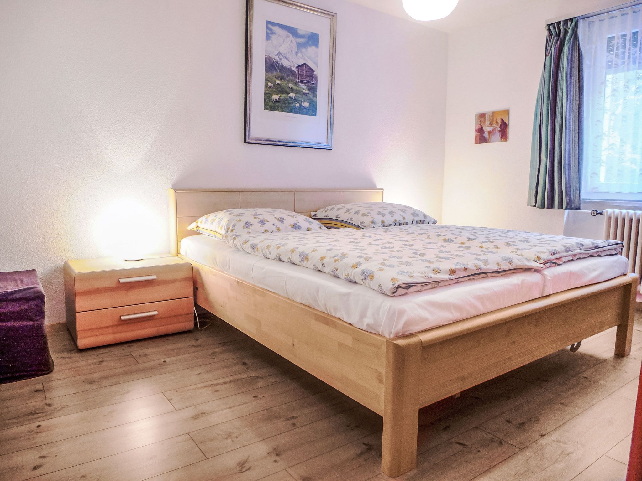 3-Zimmer-Wohnung 85 m2 im 1. Stock. Sehr komfortabel eingerichtet: Wohnzimmer mit TV und Radio. Ausgang zum Balkon. 2 Doppelzimmer, jedes Zimmer mit 2 Doppelbetten (2 x 90 cm, Länge 200 cm). Küche (Backofen, Geschirrspüler, 4 Glaskeramikplatten, Toaster, Wasserkocher, elektrische Kaffeemaschine, Racletteofen, Fondue Set (Käse)) mit Esstisch. Bad/WC. Balkon 10 m2, Südlage und Ostlage. Balkonmöbel. Schöne Sicht auf das Matterhorn. Zur Verfügung: Haartrockner. Internet (Wireless LAN, gratis). Bitte beachten: Nichtraucher-Unterkunft.