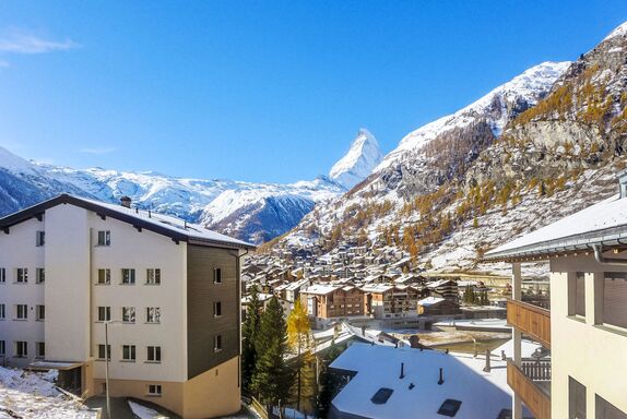 1-Zimmer-Wohnung 35 m2 im 2. Stock. Teilweise renoviert im Jahre 2014, komfortabel und gemütlich eingerichtet: offenes Wohn-/Schlafzimmer mit 1 Doppelwandschrankbett (2 x 90 cm, Länge 200 cm), Esstisch, TV, Radio und DVD. Ausgang zum Balkon, Richtung Süden. Kleine Küche (2 Kochplatten, Backofen, Toaster, Wasserkocher, Mikrowelle, Tiefkühler, elektrische Kaffeemaschine, Fondue Set (Käse)). Dusche/WC. Balkon. Balkonmöbel. Schöne Sicht auf das Matterhorn. Zur Verfügung: Haartrockner. Internet (Wireless LAN, gratis). Bitte beachten: Nichtraucher-Unterkunft.