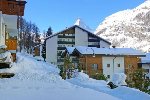 Kleines Mehrfamilienhaus Le Mans, auf 4 Stockwerken. Im Ortsteil Wiesti, 600 m vom Zentrum, ruhige, erhöhte Lage. Zur Mitbenutzung: kleiner terrassierter Garten. Grill. Zur Alleinbenutzung: Treppenweg (50 Stufen) bis zum Haus. Lebensmittelgeschäft 450 m, Supermarkt 600 m, Restaurant 75 m, Bäckerei 600 m, Fahrradverleih 210 m, Zentrum zu Fuss in 8 Minuten erreichbar, Bushaltestelle Wiestibrücke 210 m, Bahnstation Bahnhof Zermatt 600 m. Bergeisenbahn 400 m, Skiverleih, Skibushaltestelle 210 m, Skischule 650 m, Kinderskischule. Taxi kann nicht bis zum Haus fahren. Die Schlüsselübergabe findet bei der Agentur Interhome in Zermatt statt.