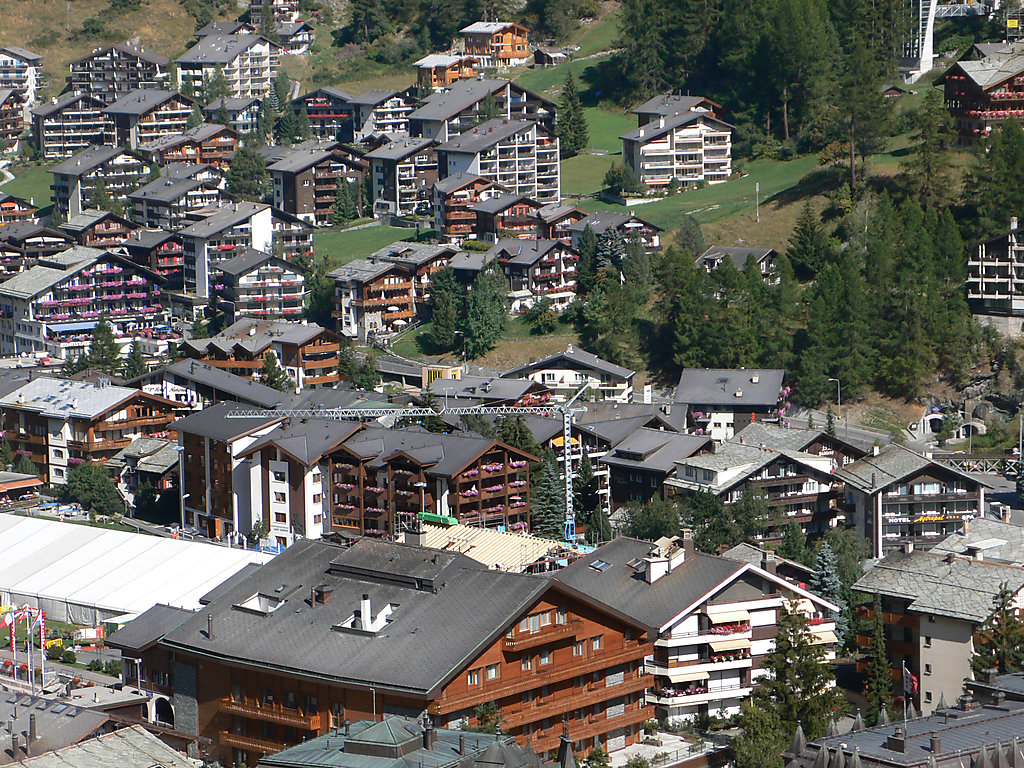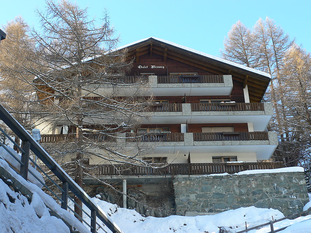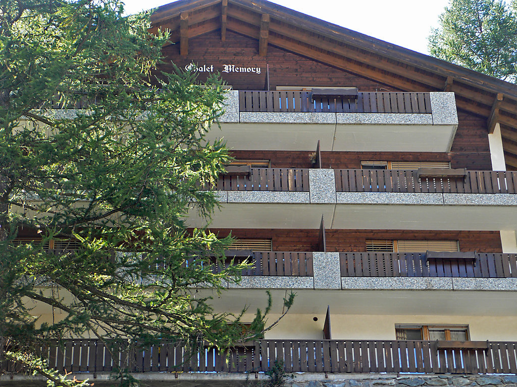 Einfaches Mehrfamilienhaus Memory. Im Ortsteil Trift, 750 m vom Zentrum von Zermatt, ruhige, sonnige Lage am Hang. Im Hause: Zentralheizung, Waschmaschine, Wäschetrockner (zur Mitbenutzung, extra). Steiler Fussweg (60 Stufen) bis zum Haus. Supermarkt 700 m, Restaurant 300 m, Bäckerei 400 m, Zentrum zu Fuss in 15 Minuten erreichbar, Bushaltestelle Bahnhof, Bahnstation Bahnhof Zermatt 750 m. Bergeisenbahn 750 m, Skiverleih 700 m, Skibushaltestelle 750 m, Skischule, Kinderskischule 450 m. Bitte beachten: kein Fahrstuhl vorhanden. Taxi kann nicht bis zum Haus fahren. Die Schlüsselübergabe findet bei der Agentur Interhome in Zermatt statt.