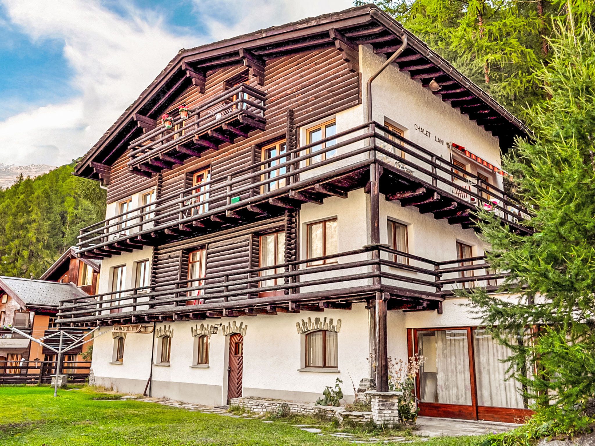 Kleines, gemütliches Chalet Lani. Im Ortsteil Steinmatte, 1 km vom Zentrum von Zermatt, ruhige, erhöhte Lage. Im Hause: Waschmaschine (zur Mitbenutzung). 90 m steiler Fussweg bis zum Haus. Lebensmittelgeschäft, Supermarkt 750 m, Bäckerei 300 m, Zentrum zu Fuss in 15 Minuten erreichbar, Bushaltestelle Brücke zum Steg 300 m, Bahnstation Bahnhof Zermatt 1 km. Bergeisenbahn 800 m, Skiverleih, Skibushaltestelle 250 m, Skischule 700 m, Kinderskischule. Bitte beachten: kein Fahrstuhl vorhanden. Taxi kann nicht bis zum Haus fahren. Die Schlüsselübergabe findet bei der Agentur Interhome in Zermatt statt.