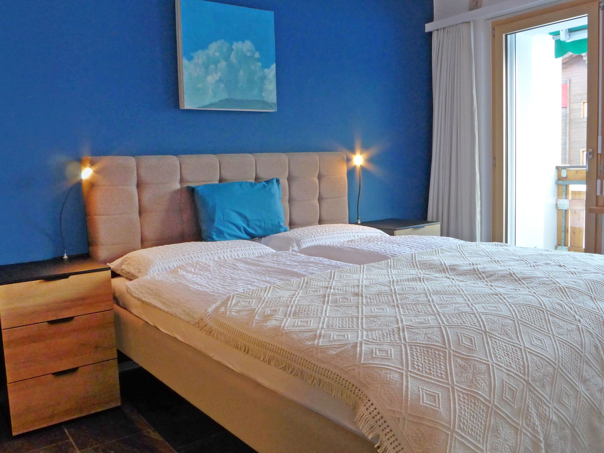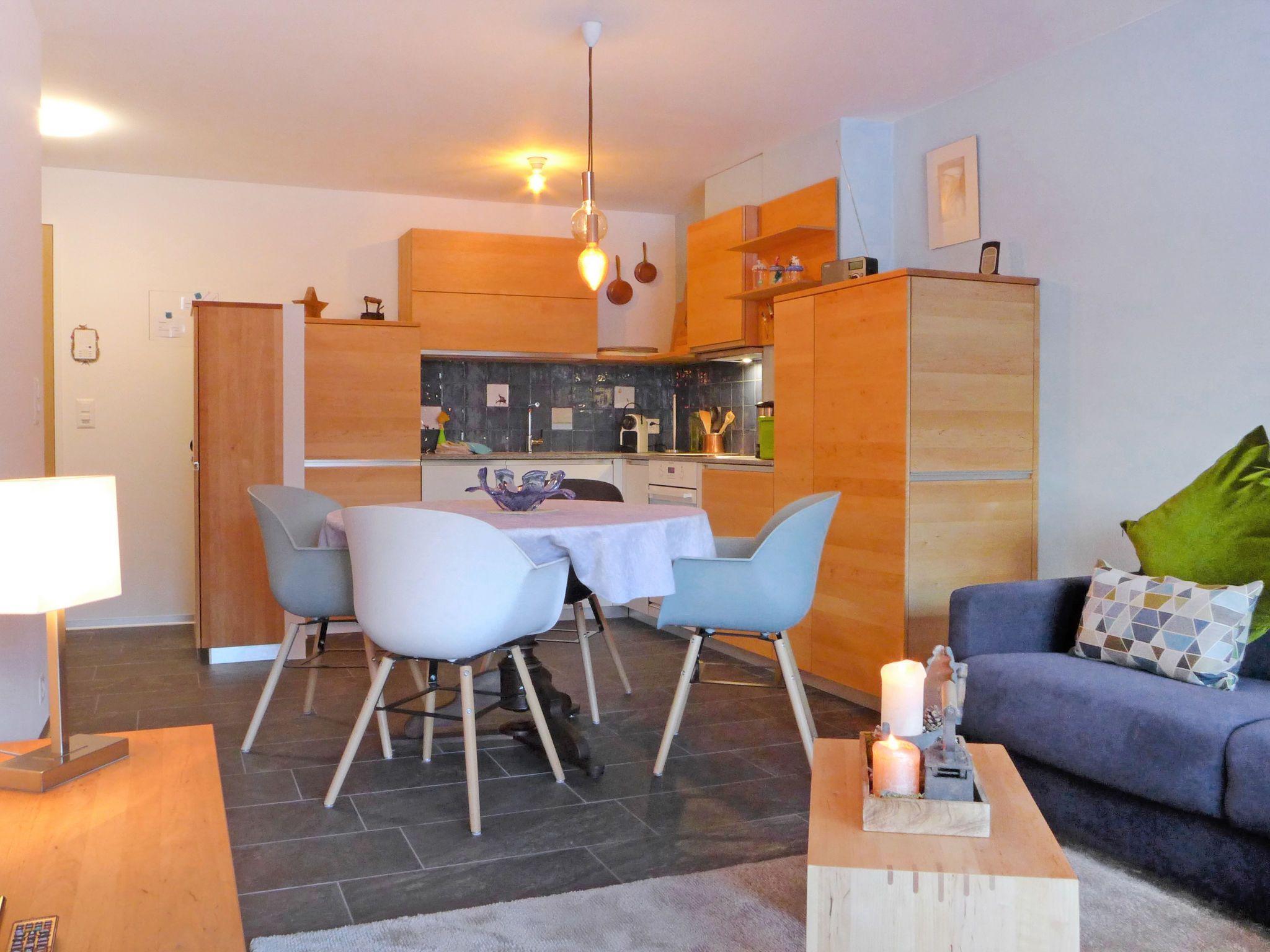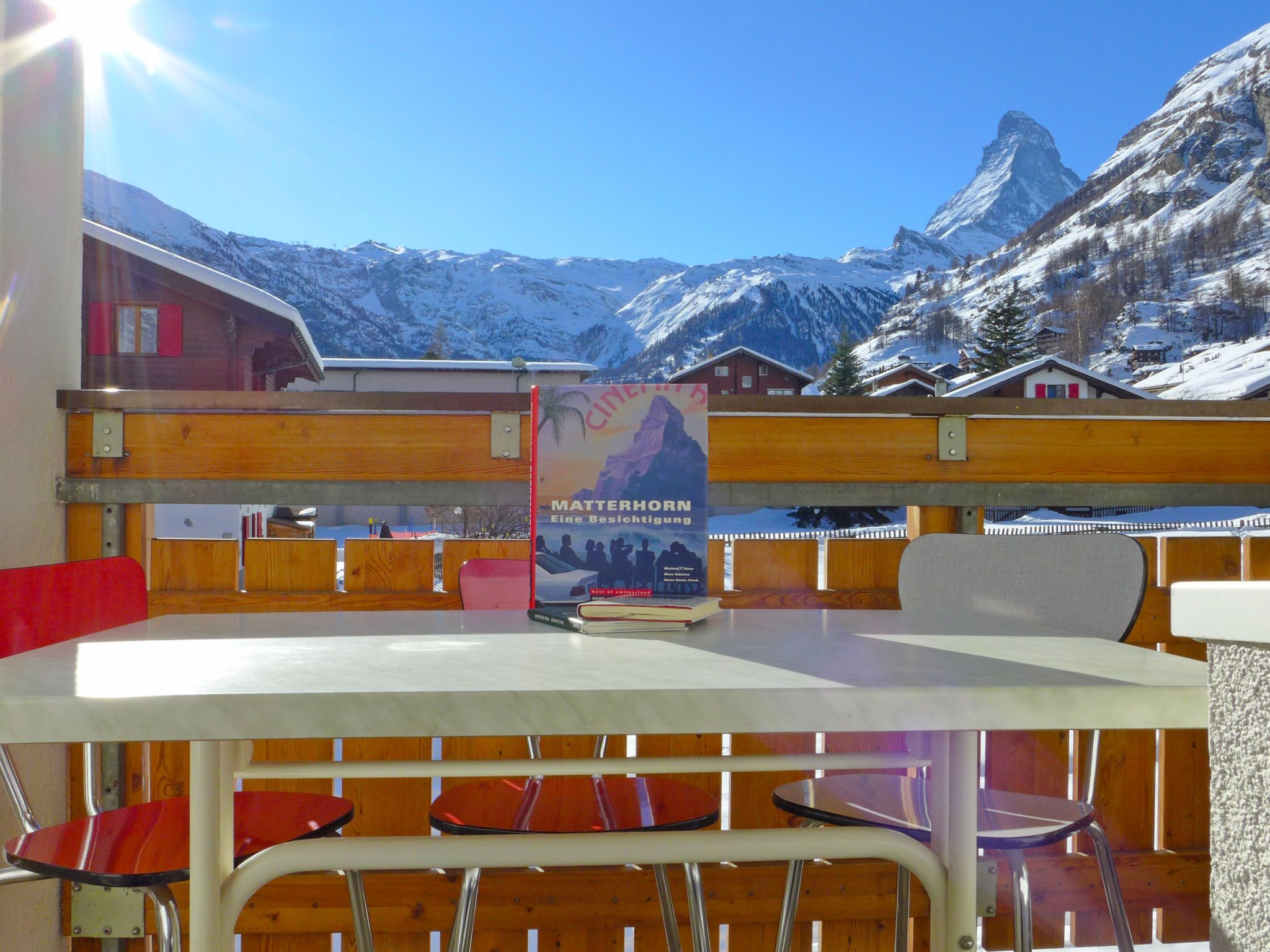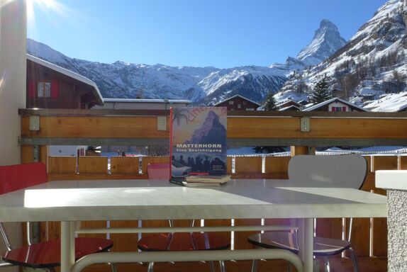 2-Zimmer-Wohnung 50 m2 im 2. Stock. Vollständig renoviert im Jahre 2019, schön und gemütlich eingerichtet: Wohn-/Esszimmer mit 1 Doppeldiwanbett und TV. Ausgang zum Balkon. 1 grosses Doppelzimmer mit 1 Doppelbett (180 cm, Länge 200 cm). Ausgang zum Balkon, Richtung Süden. Offene Küche (Backofen, Geschirrspüler, 4 Glaskeramikplatten, Toaster, Wasserkocher, Mikrowelle, Tiefkühler, elektrische Kaffeemaschine) mit Esstisch. Dusche/WC. Balkon, Südlage. Balkonmöbel. Sehr schöne Sicht auf das Matterhorn. Zur Verfügung: Haartrockner. Internet (Wireless LAN, gratis). Bitte beachten: Nichtraucher-Unterkunft.
