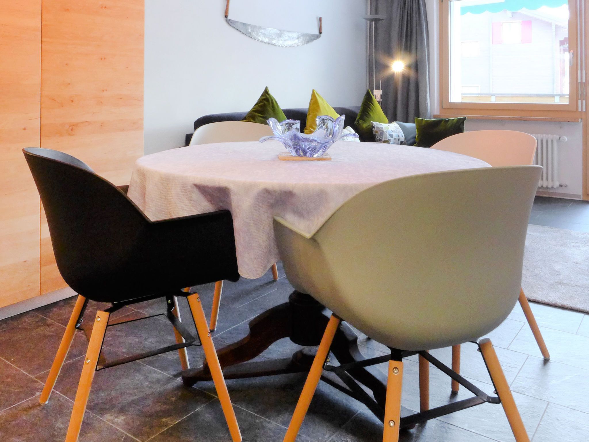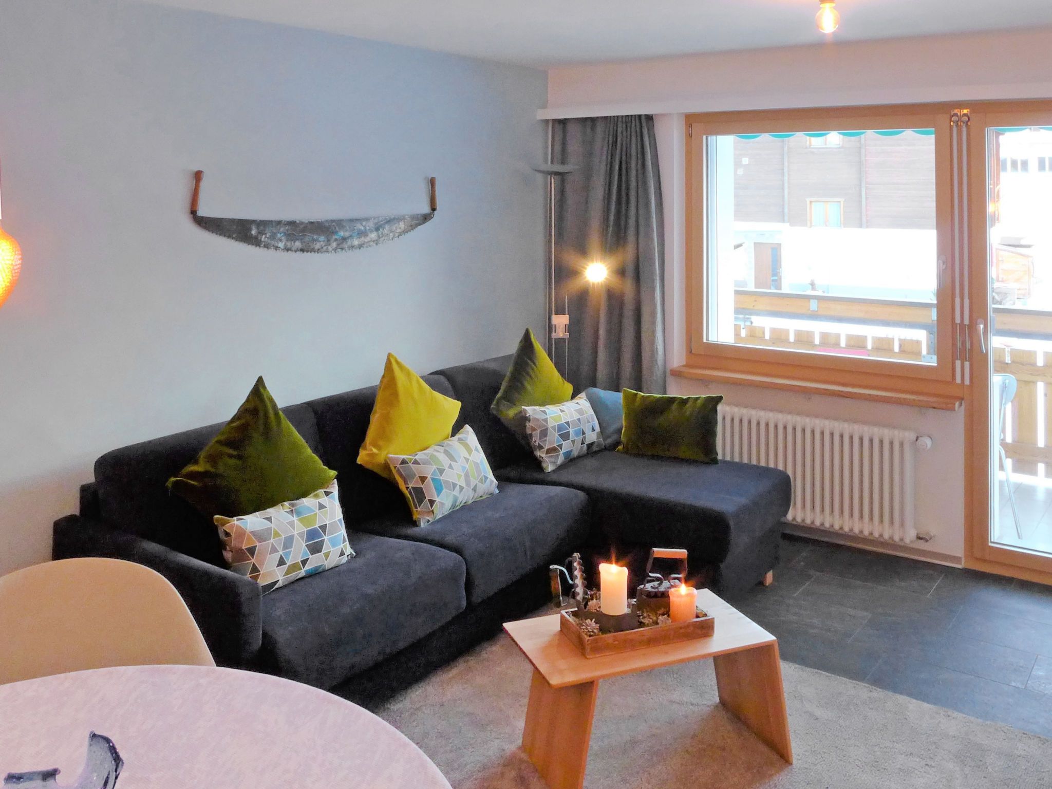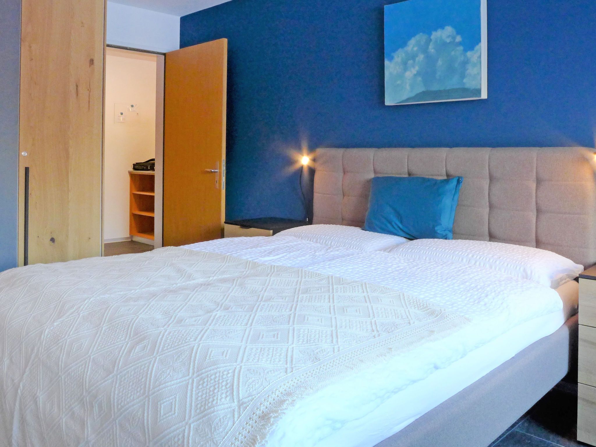 2-Zimmer-Wohnung 50 m2 im 2. Stock. Vollständig renoviert im Jahre 2019, schön und gemütlich eingerichtet: Wohn-/Esszimmer mit 1 Doppeldiwanbett und TV. Ausgang zum Balkon. 1 grosses Doppelzimmer mit 1 Doppelbett (180 cm, Länge 200 cm). Ausgang zum Balkon, Richtung Süden. Offene Küche (Backofen, Geschirrspüler, 4 Glaskeramikplatten, Toaster, Wasserkocher, Mikrowelle, Tiefkühler, elektrische Kaffeemaschine) mit Esstisch. Dusche/WC. Balkon, Südlage. Balkonmöbel. Sehr schöne Sicht auf das Matterhorn. Zur Verfügung: Haartrockner. Internet (Wireless LAN, gratis). Bitte beachten: Nichtraucher-Unterkunft.