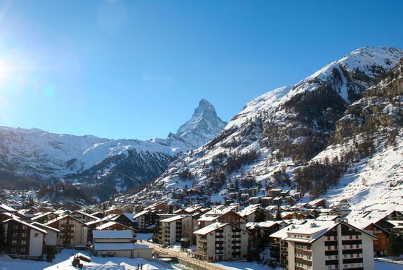 3-Zimmer-Wohnung 82 m2 im 3. Stock, Südwestlage. Hell, komfortabel und gemütlich eingerichtet: Wohn-/Esszimmer mit Essecke, TV, Stereoanlage und DVD. Ausgang zum Balkon, Richtung Süden und Richtung Westen. 1 Doppelzimmer mit 2 Betten (90 cm, Länge 200 cm). 1 Doppelzimmer mit 1 Doppelbett (140 cm, Länge 200 cm). Offene Küche (Backofen, Geschirrspüler, 4 Glaskeramikplatten, Toaster, Wasserkocher, Tiefkühler, elektrische Kaffeemaschine, Racletteofen, Kombinationsmikrowelle, Fondue Set (Chinoise, Käse)). Bad/WC. Balkon, Südlage und Westlage. Balkonmöbel. Sehr schöne Sicht auf das Matterhorn. Zur Verfügung: Haartrockner. Internet (Wireless LAN, gratis). Bitte beachten: Nichtraucher-Unterkunft.