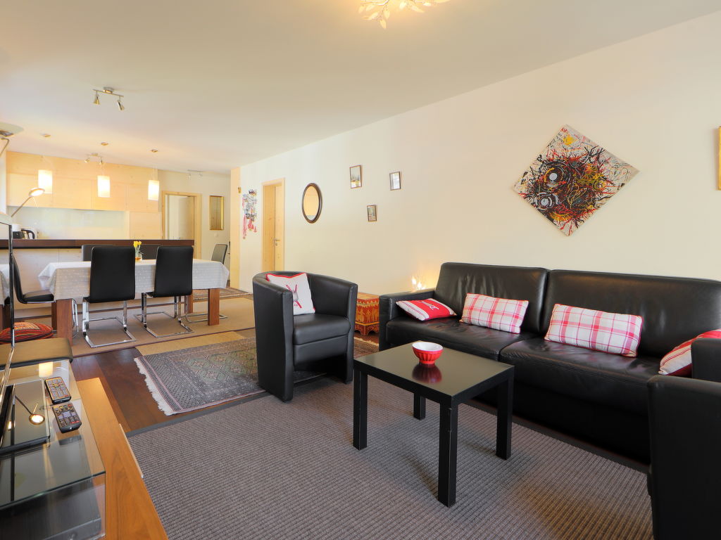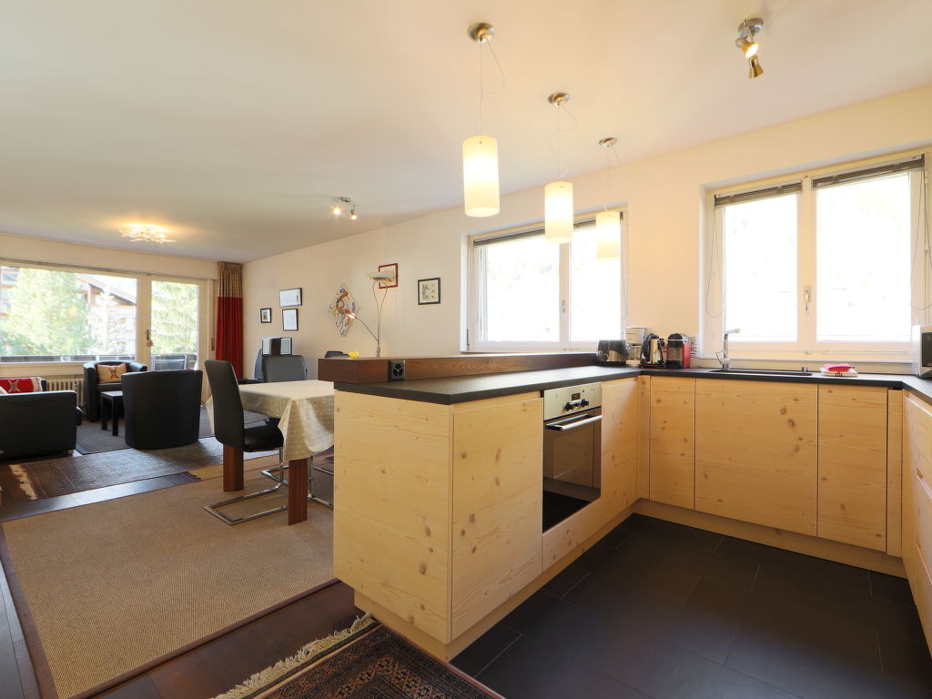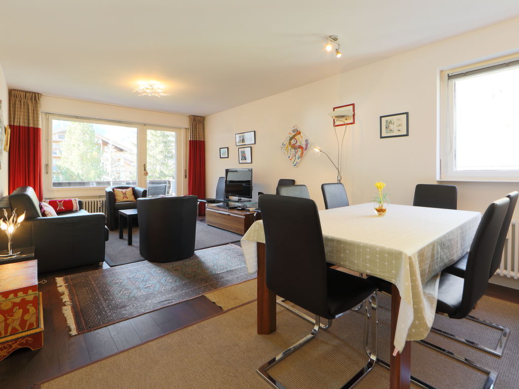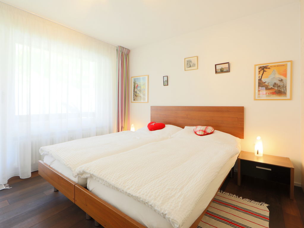 3-Zimmer-Wohnung 80 m2 im 2. Stock. Hell, modern und geschmackvoll eingerichtet: Wohn-/Esszimmer mit Esstisch, TV, Flachbildschirm und DVD. Ausgang zum Balkon. 1 Doppelzimmer mit 1 Doppelbett (2 x 90 cm, Länge 200 cm), Dusche. Ausgang zum Balkon. 1 Doppelzimmer mit 2 Betten (90 cm, Länge 200 cm). Offene Küche (Backofen, Geschirrspüler, 4 Glaskeramikplatten, Toaster, Wasserkocher, Mikrowelle, Tiefkühler, elektrische Kaffeemaschine, Racletteofen, Fondue Set (Käse)). Dusche/WC. Balkon 8 m2, Südlage und Westlage. Balkonmöbel. Schöne Sicht auf Matterhorn. Zur Verfügung: Haartrockner. Internet (Wireless LAN, gratis). Bitte beachten: Nichtraucher-Unterkunft.