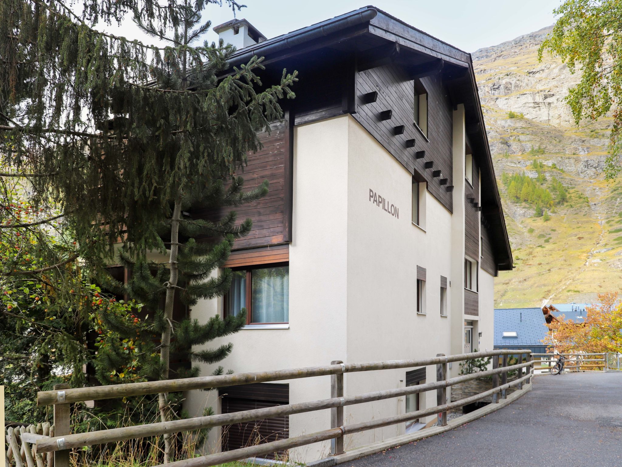Gemütliches Mehrfamilienhaus Papillon, auf 4 Stockwerken. Im Ortsteil untere Wiesti, ruhige Lage, Richtung Süden. Im Hause: Skiraum, Zentralheizung. Supermarkt 500 m, Restaurant 290 m, Bäckerei 650 m, Fahrradverleih 300 m, Zentrum zu Fuss in 8 Minuten erreichbar, Bushaltestelle Wiestibrücke 300 m, Bahnstation Banhof Zermatt 650 m. Bergeisenbahn 450 m, Skiverleih, Skibushaltestelle 290 m, Skischule 700 m. Die Schlüsselübergabe findet bei der Agentur Interhome in Zermatt statt.