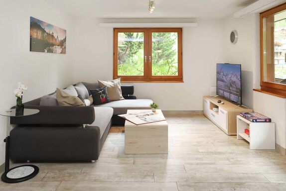 4-Zimmer-Wohnung 101 m2, im Erdgeschoss. Hell, renoviert im Jahre 2021, schön und modern eingerichtet: Wohn-/Esszimmer mit Schwedenofen, Esstisch und TV. Ausgang zum Balkon. 1 Doppelzimmer mit 1 Doppelbett (2 x 90 cm, Länge 200 cm), TV. Ausgang zum Balkon. 1 Doppelzimmer mit 1 Doppelbett (1 x 160 cm, Länge 200 cm), TV. 1 Doppelzimmer mit 1 Doppelbett (2 x 90 cm, Länge 200 cm), TV. Offene Küche (Backofen, Geschirrspüler, 4 Glaskeramikplatten, Toaster, Wasserkocher, Tiefkühler, elektrische Kaffeemaschine, Racletteofen, Kombinationsmikrowelle, Fondue Set (Käse)). Bad/WC, Dusche/WC. Bodenheizung. Grosser Balkon 32 m2. Balkonmöbel, Elektrogrill. Schöne Sicht auf das Matterhorn. Zur Verfügung: Waschmaschine, Wäschetrockner. Internet (Wireless LAN, gratis). Bitte beachten: Nichtraucher-Unterkunft.