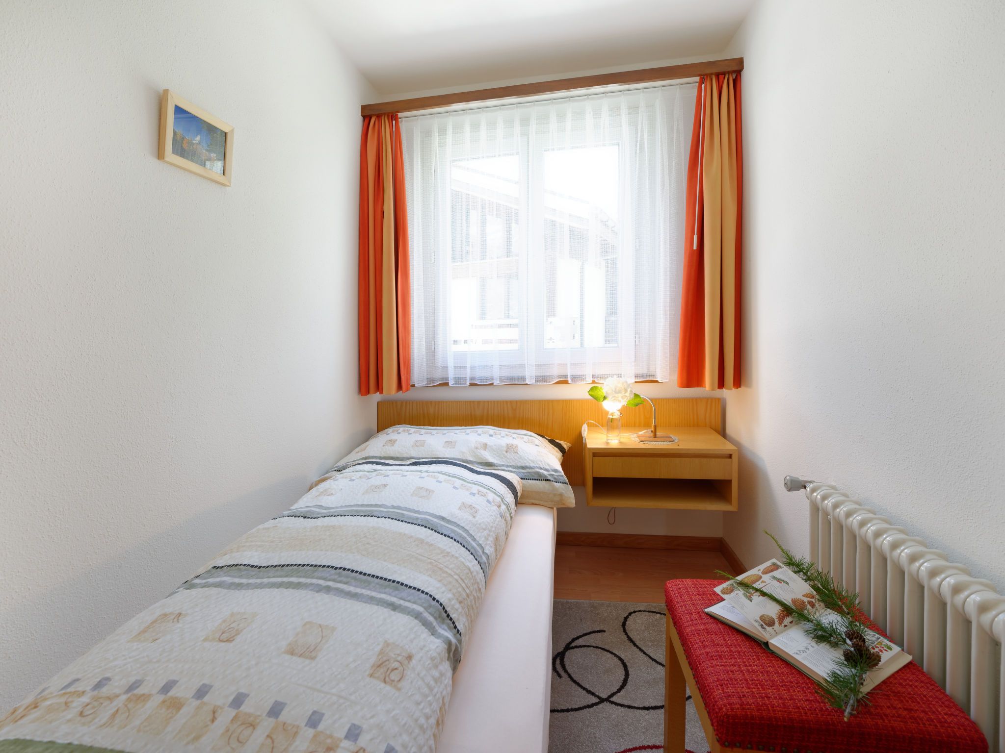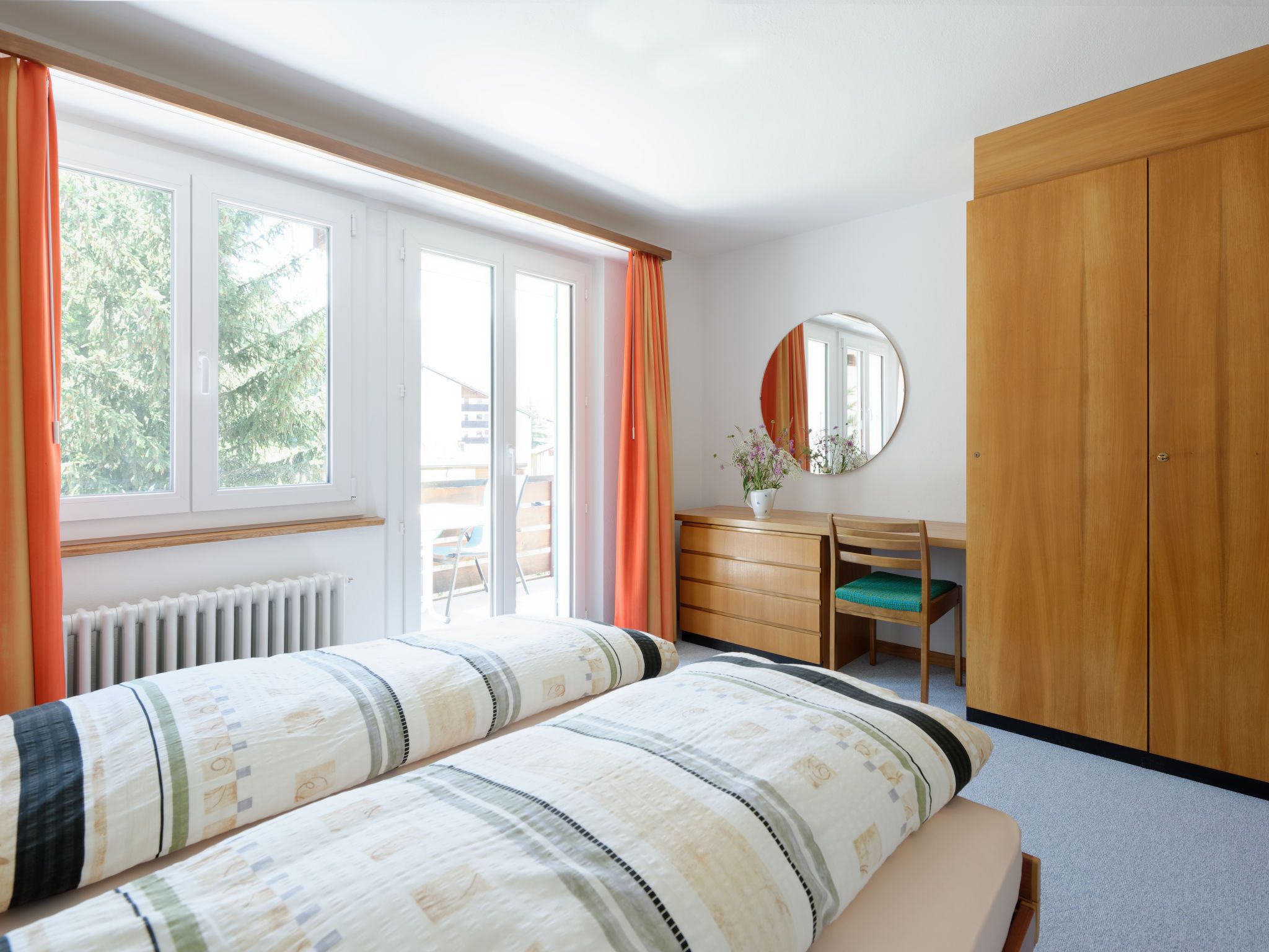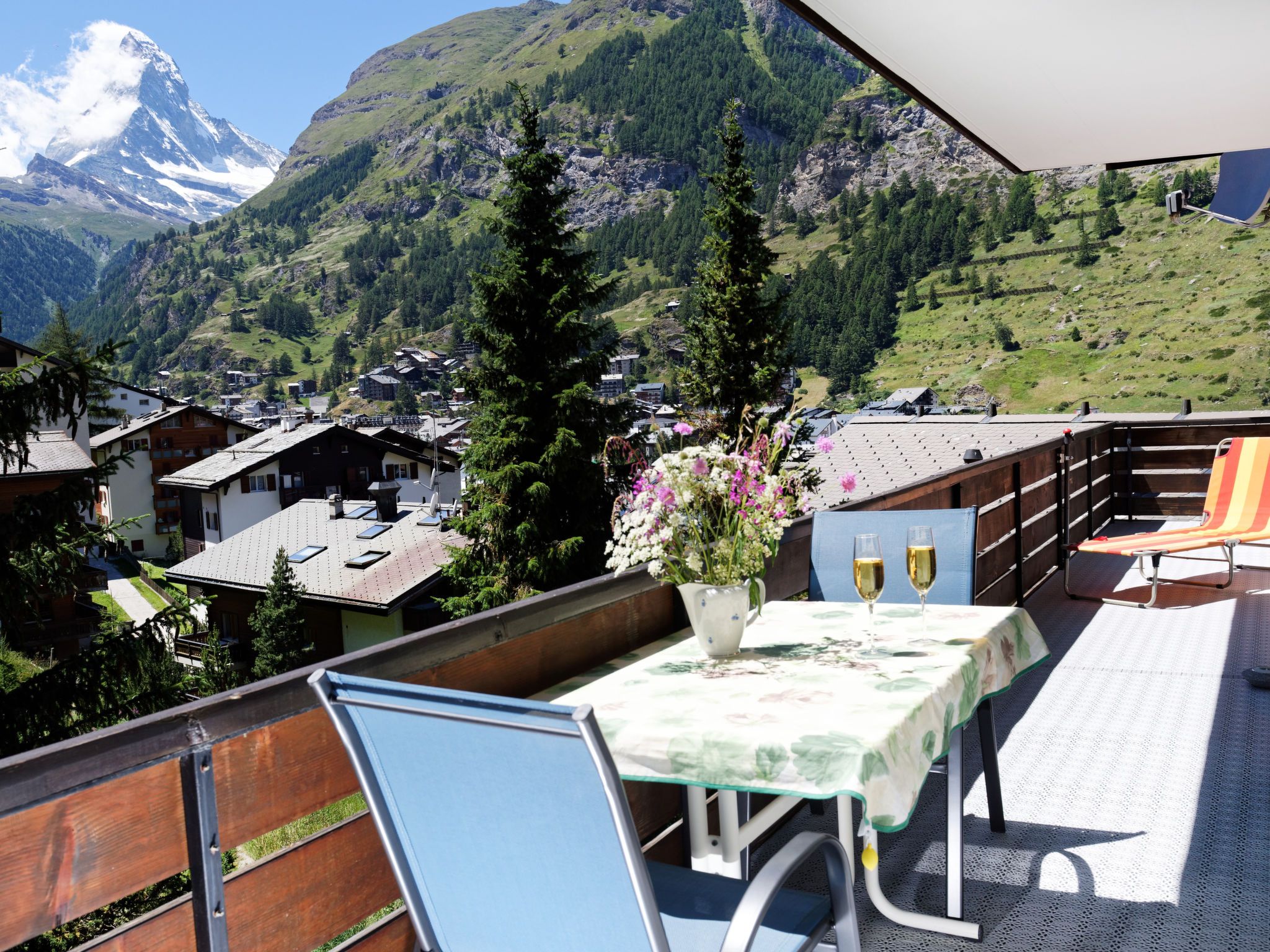 4-Zimmer-Wohnung 63 m2 im 1. Stock, Südwestlage. Einfach und gemütlich eingerichtet: Wohnzimmer mit TV und Radio. Ausgang zum Balkon. 1 Zimmer mit 2 Betten (90 cm, Länge 190 cm). Ausgang zum Balkon. 1 Zimmer mit 1 Bett (90 cm, Länge 190 cm). 1 Zimmer mit 1 Doppelbett (2 x 90 cm, Länge 200 cm). Ausgang zum Balkon. Küche (Backofen, 3 Glaskeramikplatten, Wasserkocher, Tiefkühler, elektrische Kaffeemaschine) mit Esstisch. Bad/WC. Teppichboden. Grosser Balkon, Südlage und Westlage. Balkonmöbel. Schöne Sicht auf das Matterhorn. Zur Verfügung: Internet (Wireless LAN). Bitte beachten: Nichtraucher-Unterkunft.