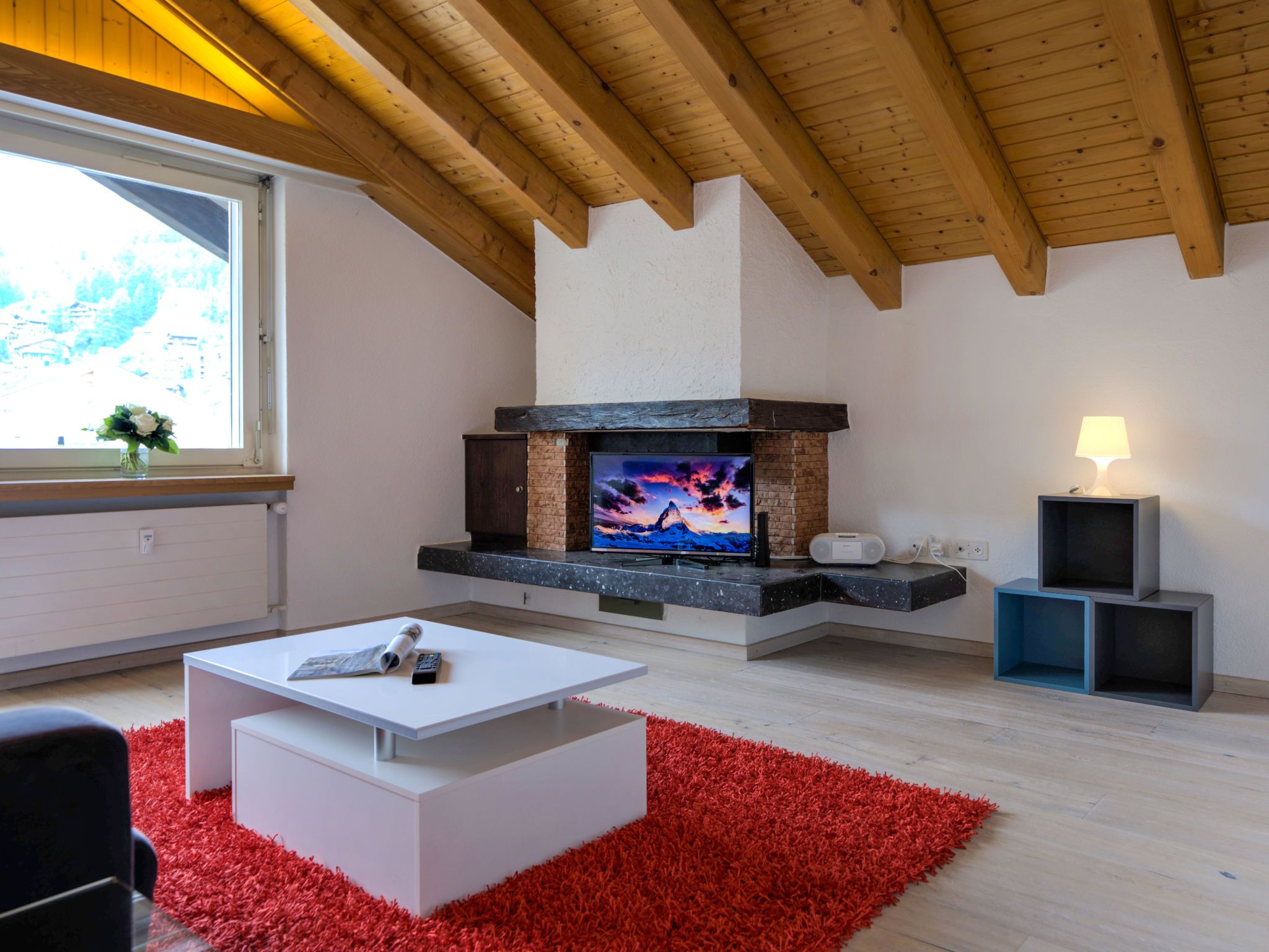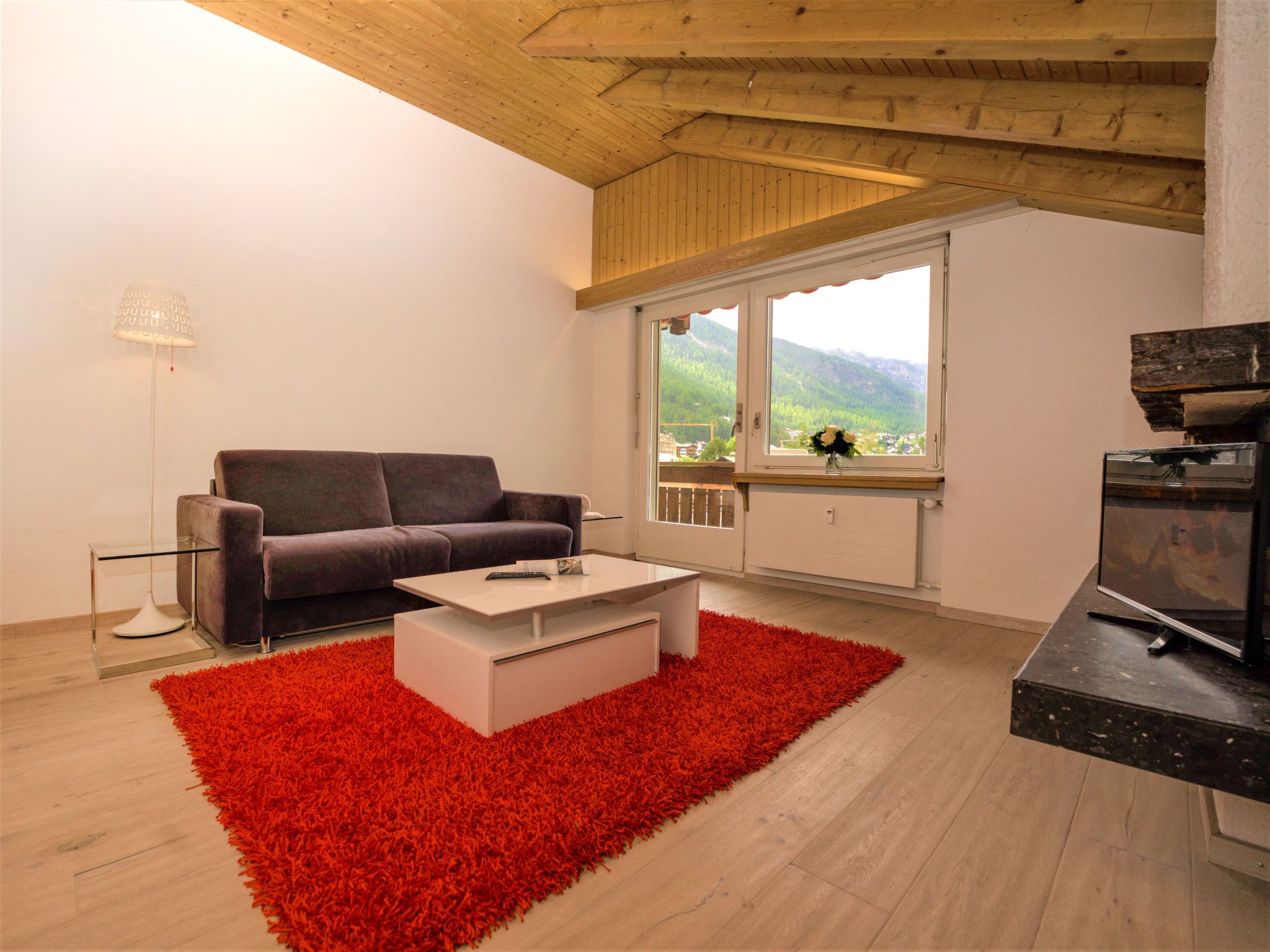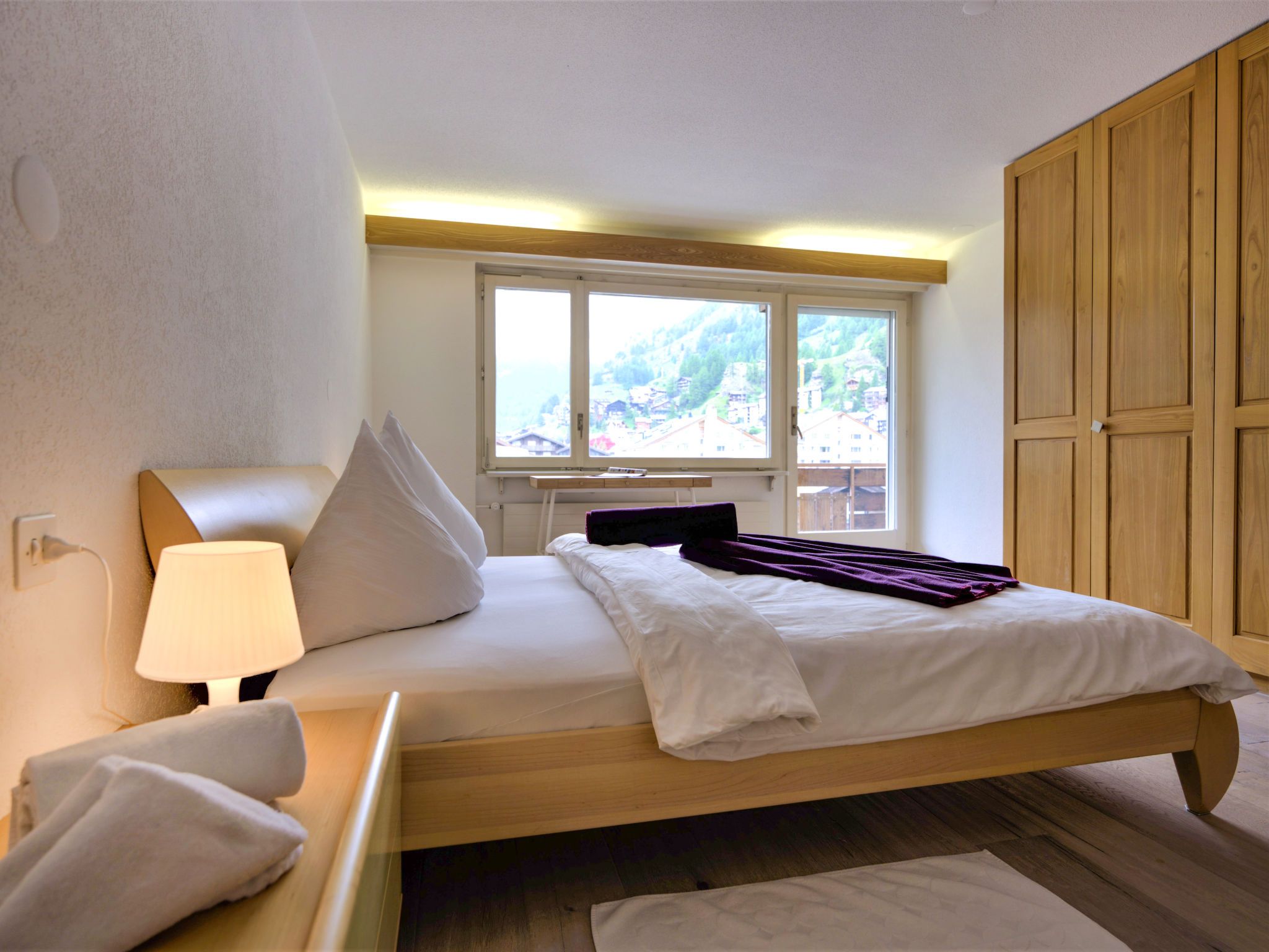 3-Zimmer-Wohnung 65 m2 im 5. Stock. Objekt geeignet für 2 Erwachsene + 2 Kinder. Komfortabel und gemütlich eingerichtet: Wohnzimmer mit TV, Radio und CD. Ausgang zum Balkon. 1 Zimmer mit 1 Doppelbett (2 x 90 cm, Länge 200 cm). 1 Kinderzimmer mit 1 x 2 Etagenbetten (90 cm, Länge 200 cm). Kleine Küche (3 Kochplatten, Backofen, Geschirrspüler, Toaster, Wasserkocher, Tiefkühler, elektrische Kaffeemaschine, Racletteofen, Fondue Set (Chinoise, Käse)) mit Esstisch. Bad/WC. Balkon, Südlage. Balkonmöbel. Schöne Sicht auf das Matterhorn. Zur Verfügung: Haartrockner. Internet (Wireless LAN, gratis). Bitte beachten: Nichtraucher-Unterkunft.