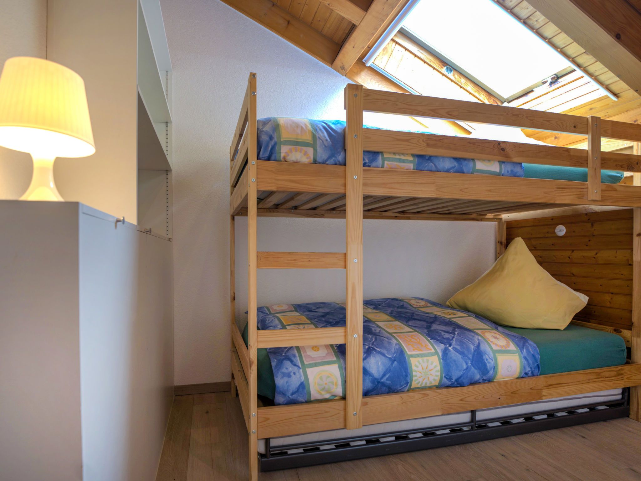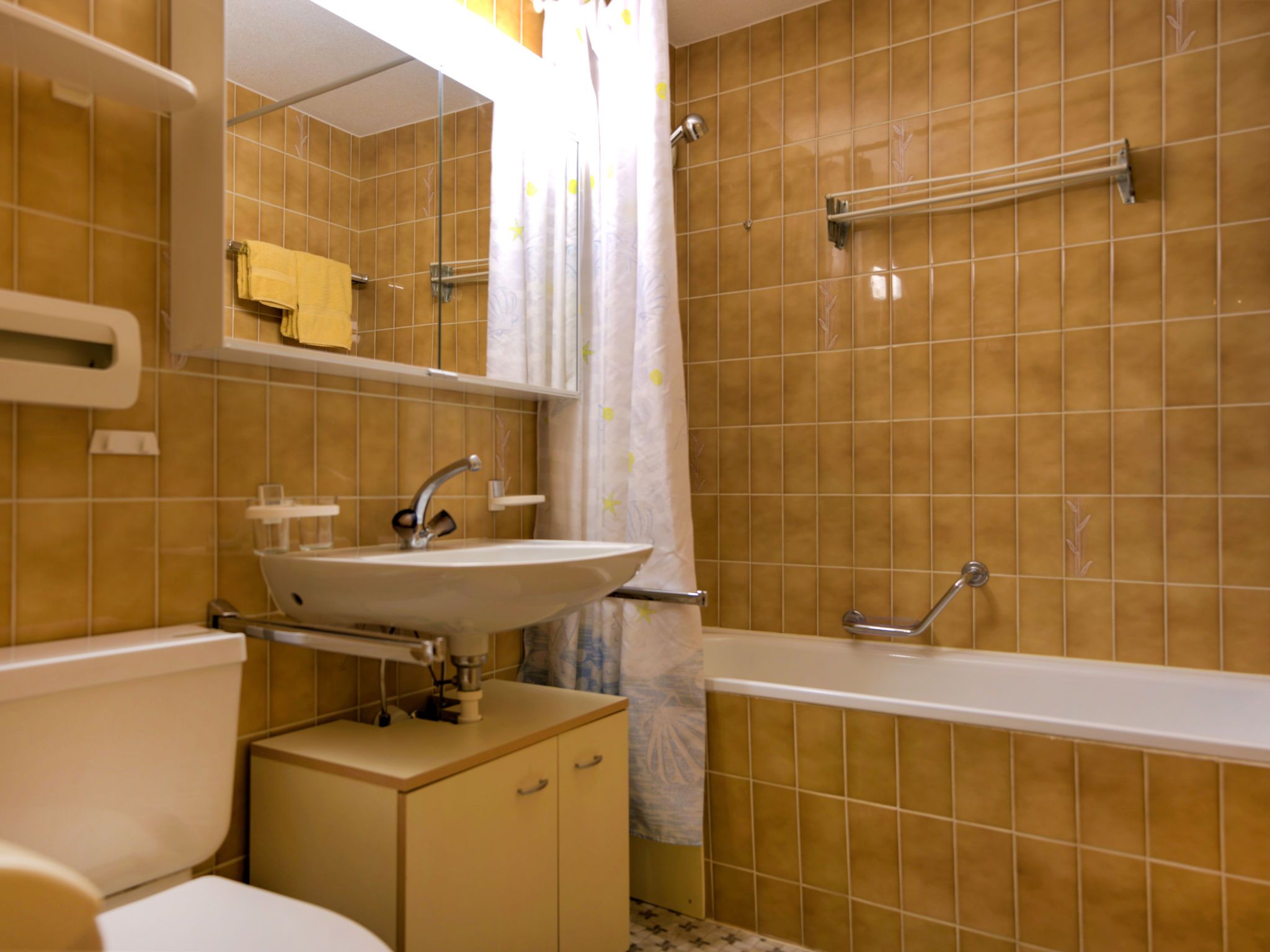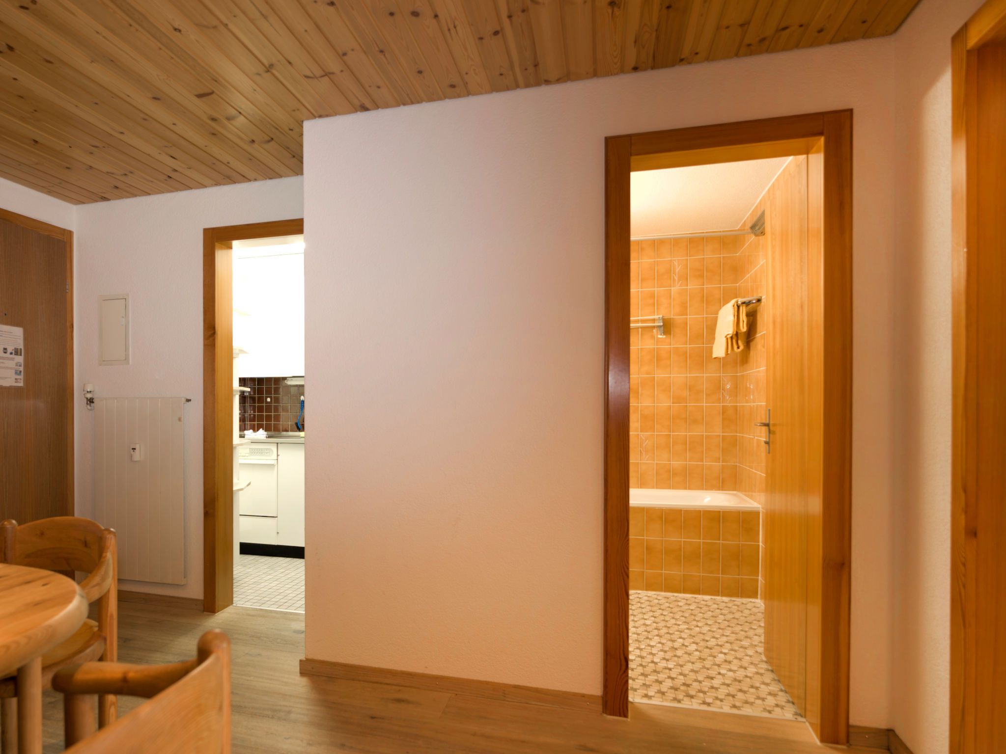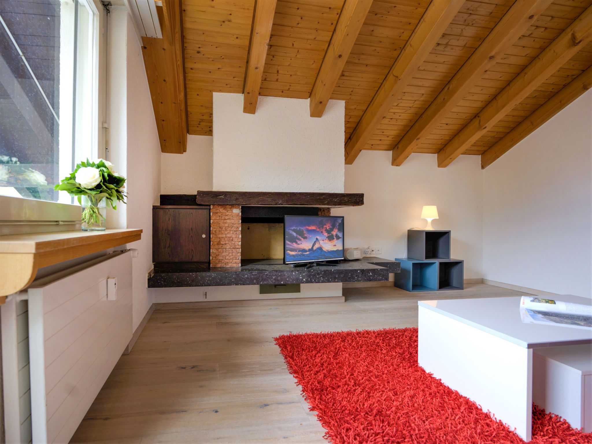 3-Zimmer-Wohnung 65 m2 im 5. Stock. Objekt geeignet für 2 Erwachsene + 2 Kinder. Komfortabel und gemütlich eingerichtet: Wohnzimmer mit TV, Radio und CD. Ausgang zum Balkon. 1 Zimmer mit 1 Doppelbett (2 x 90 cm, Länge 200 cm). 1 Kinderzimmer mit 1 x 2 Etagenbetten (90 cm, Länge 200 cm). Kleine Küche (3 Kochplatten, Backofen, Geschirrspüler, Toaster, Wasserkocher, Tiefkühler, elektrische Kaffeemaschine, Racletteofen, Fondue Set (Chinoise, Käse)) mit Esstisch. Bad/WC. Balkon, Südlage. Balkonmöbel. Schöne Sicht auf das Matterhorn. Zur Verfügung: Haartrockner. Internet (Wireless LAN, gratis). Bitte beachten: Nichtraucher-Unterkunft.