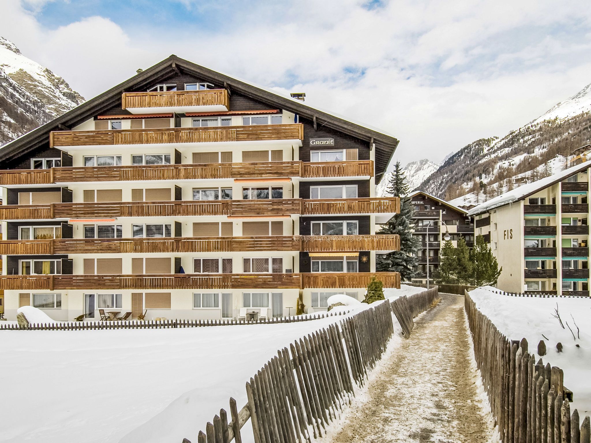 Grosses, schönes Mehrfamilienhaus Granit, auf 5 Stockwerken. Im Ortsteil Untere Matten, 240 m vom Zentrum von Zermatt, zentrale, ruhige, sonnige Lage. Im Hause: Fahrstuhl, Skiraum, Zentralheizung. Supermarkt, Restaurant, Bar 150 m, Bäckerei 240 m, Café 150 m, Zentrum zu Fuss in 5 Minuten erreichbar, Bushaltestelle Wiestibrücke 170 m, Bahnstation Bahnhof Zermatt 240 m. Bergeisenbahn, Skiverleih 240 m, Skibushaltestelle 170 m, Skischule 450 m, Eisfeld 240 m. Taxi kann nicht bis zum Haus fahren. Die Schlüsselübergabe findet bei der Agentur Interhome in Zermatt statt.