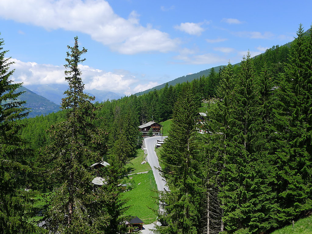 3-Zimmer-Wohnung 47 m2 im 2. Stock. Einfach und gemütlich eingerichtet: 1 abgeschrägtes Doppelzimmer. 1 abgeschrägtes Zimmer mit 2 Betten. Wohnküche (4 Kochplatten, Backofen) mit Esstisch, Sat-TV (Flachbildschirm), Radio und CD. Ausgang zum Balkon. Bad/WC. Balkon, Südlage. Terrassenmöbel. Sehr schöne Sicht auf die Berge und die Landschaft. Zur Verfügung: Internet (Wireless LAN, gratis). Parkplatz in 20 m. Bitte beachten: Nichtraucher-Unterkunft. Badewanne ohne Duschvorhang.
