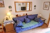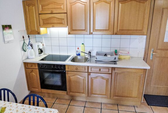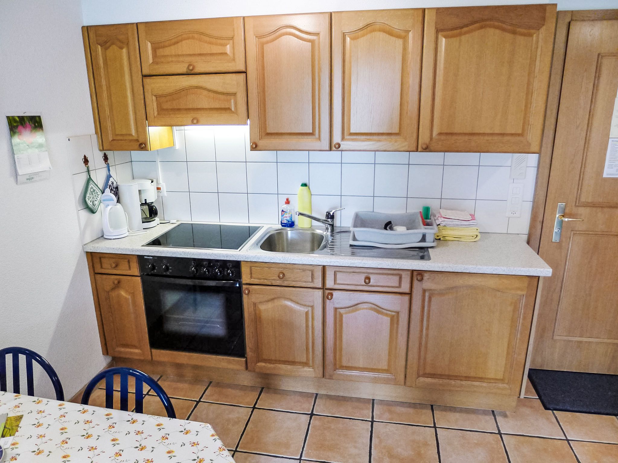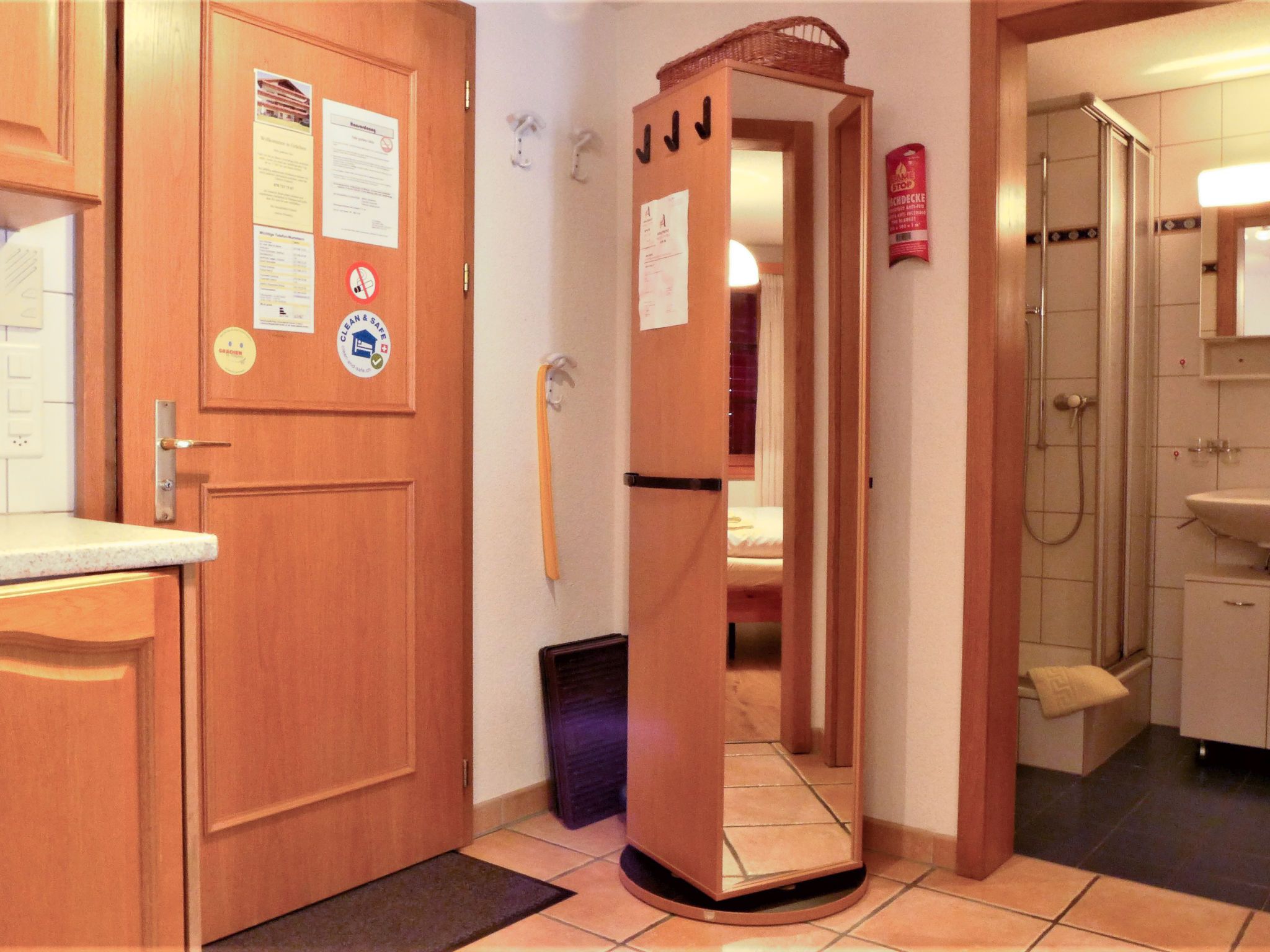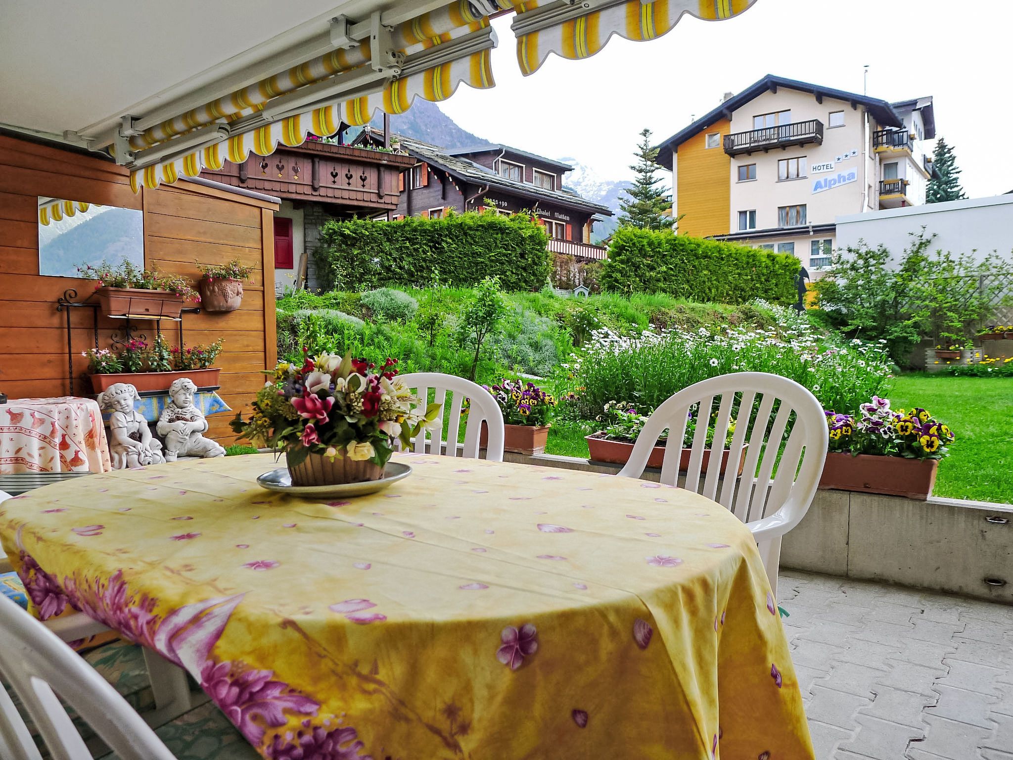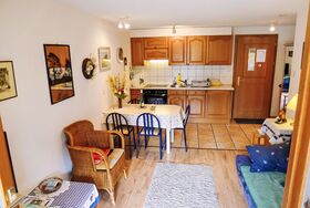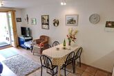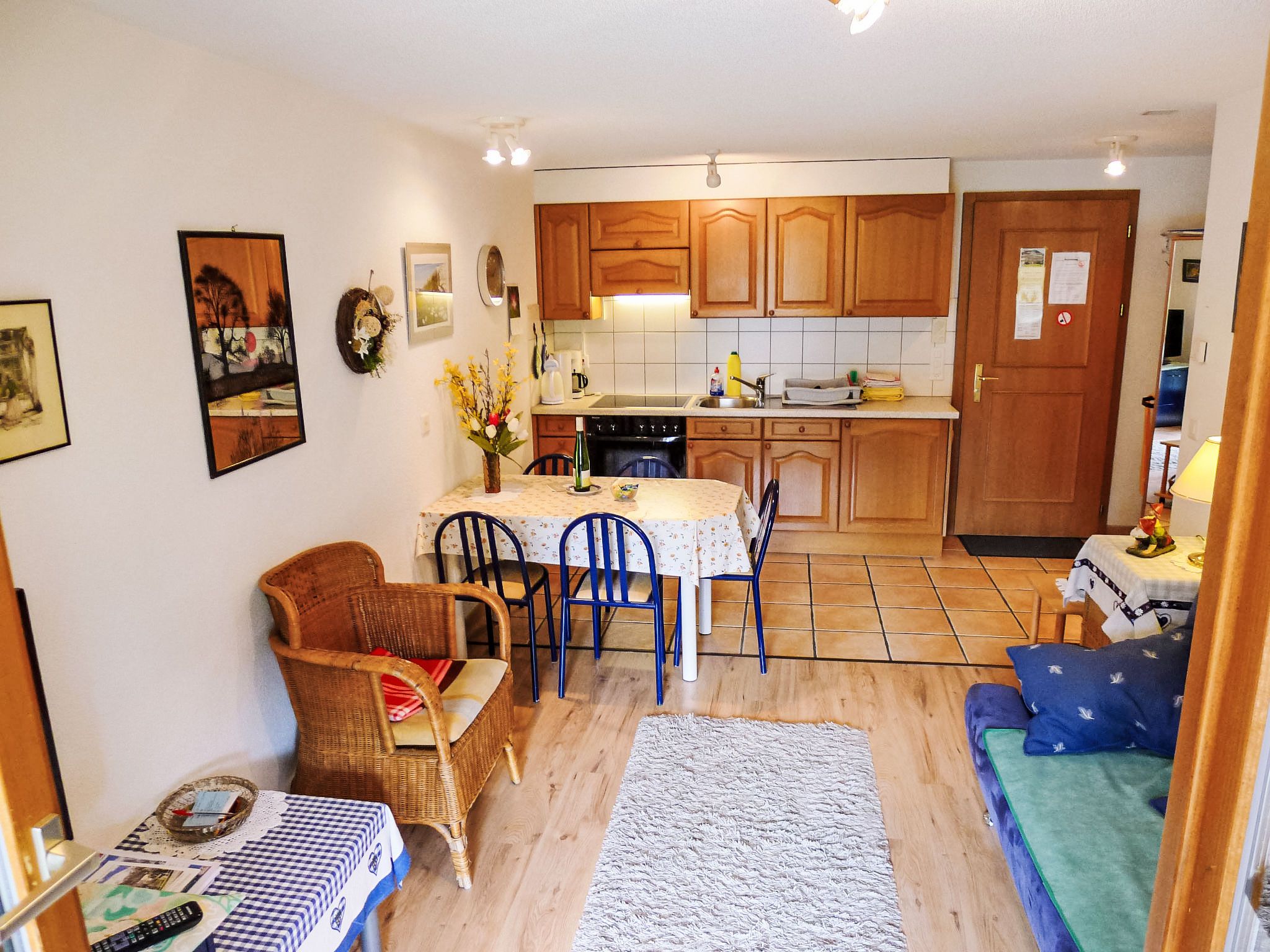 2-Zimmer-Wohnung 38 m2, im Erdgeschoss. Schön und gemütlich eingerichtet: Wohn-/Schlafzimmer mit 1 Doppeldiwanbett, Esstisch und Sat-TV (Flachbildschirm). Ausgang zur Terrasse, Richtung Süden. 1 Zimmer mit 1 Doppelbett. Offene Küche (4 Kochplatten, Backofen, elektrische Kaffeemaschine). Dusche/WC. Grosse Terrasse. Terrassenmöbel, Liegestühle (2). Schöne Sicht auf die Berge. Zur Verfügung: Babybett, Haartrockner. Internet (Wireless LAN, gratis). Parkplatz (extra). Bitte beachten: Nichtraucher-Unterkunft.