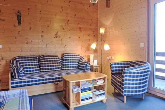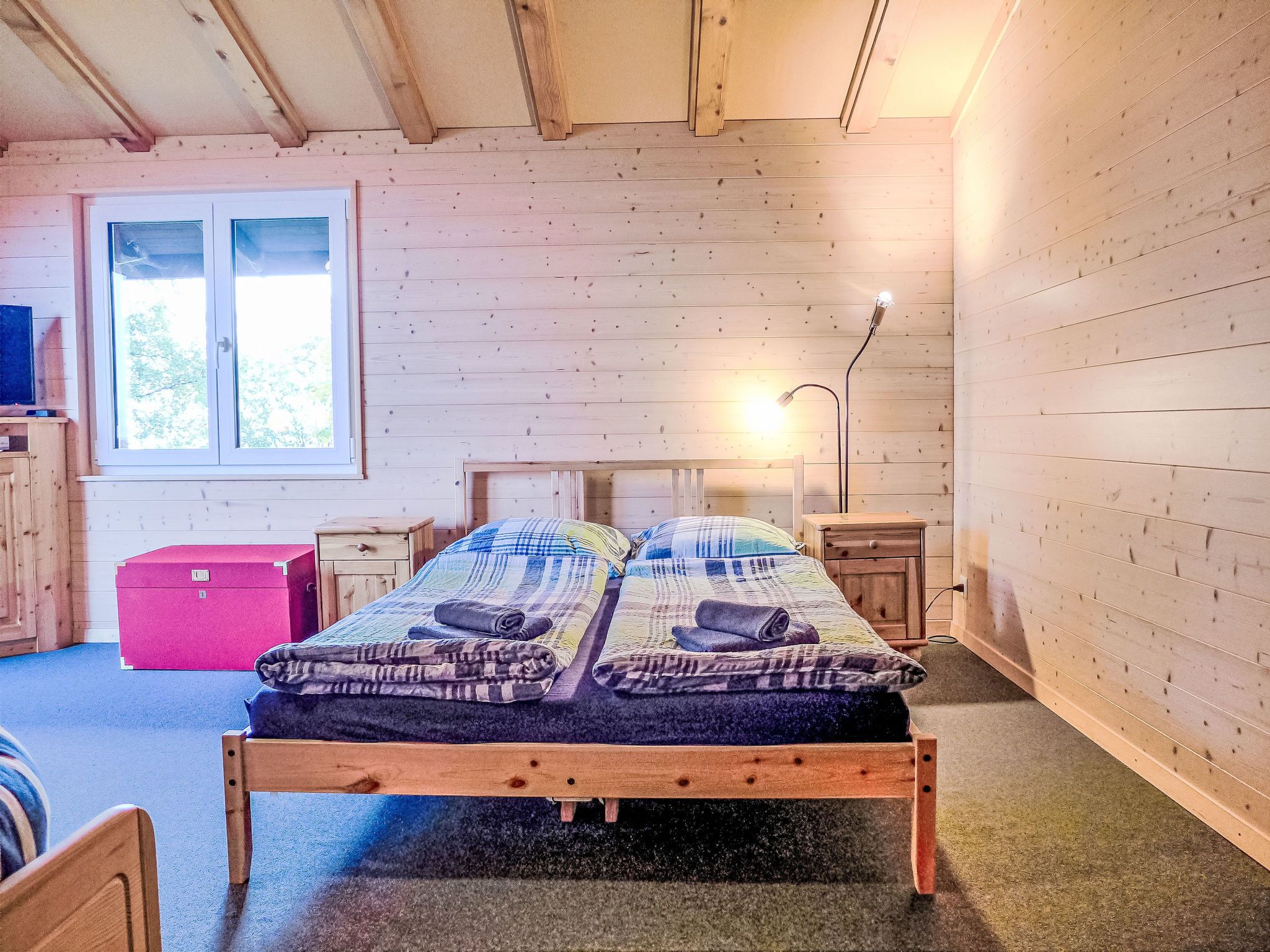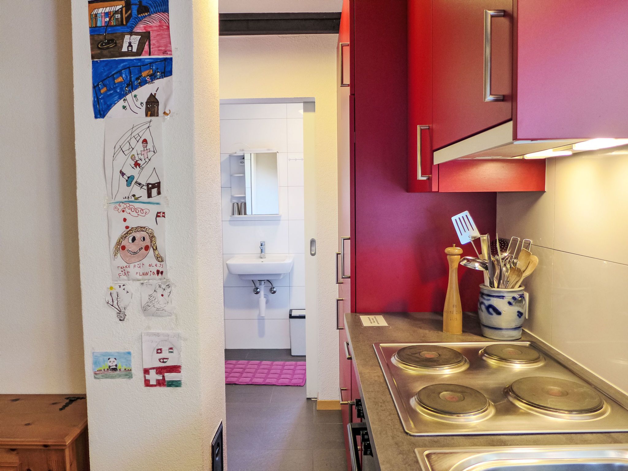 3-Zimmer-Wohnung 45 m2 auf 2 Stockwerken. Komfortabel und gemütlich eingerichtet: grosse Wohnküche (4 Kochplatten, Backofen, Geschirrspüler, Toaster, Wasserkocher, elektrische Kaffeemaschine, Racletteofen, Fondue Set (Käse)) mit Essecke und Radio. Ausgang zum Garten. Dusche/WC. Fussbodenheizung. Obergeschoss: grosses Wohn-/Schlafzimmer mit 1 Doppelbett, Digital-TV, Flachbildschirm und DVD. Ausgang zum Balkon. 1 Kinderzimmer 6 m2 mit 1 x 2 Etagenbetten (90 cm, Länge 200 cm). Gartensitzplatz. Terrassenmöbel, Gartengrill, Liegestühle. Sehr schöne Sicht auf die Berge, das Tal und die Landschaft. Zur Verfügung: Babybett bis 2 Jahre (extra). Internet (Wireless LAN, gratis). Parkplatz in 100 m. Bitte beachten: Nichtraucher-Unterkunft.