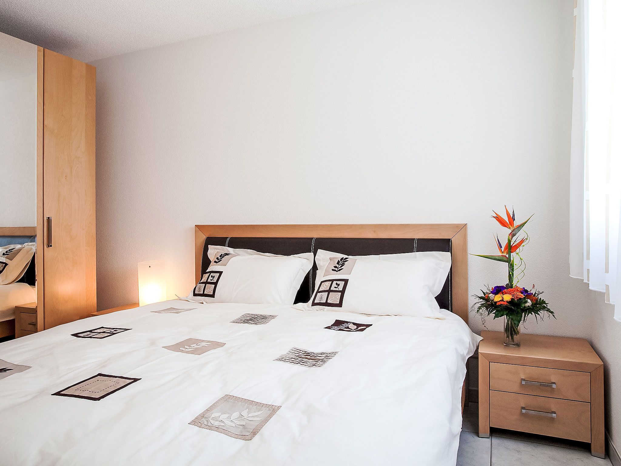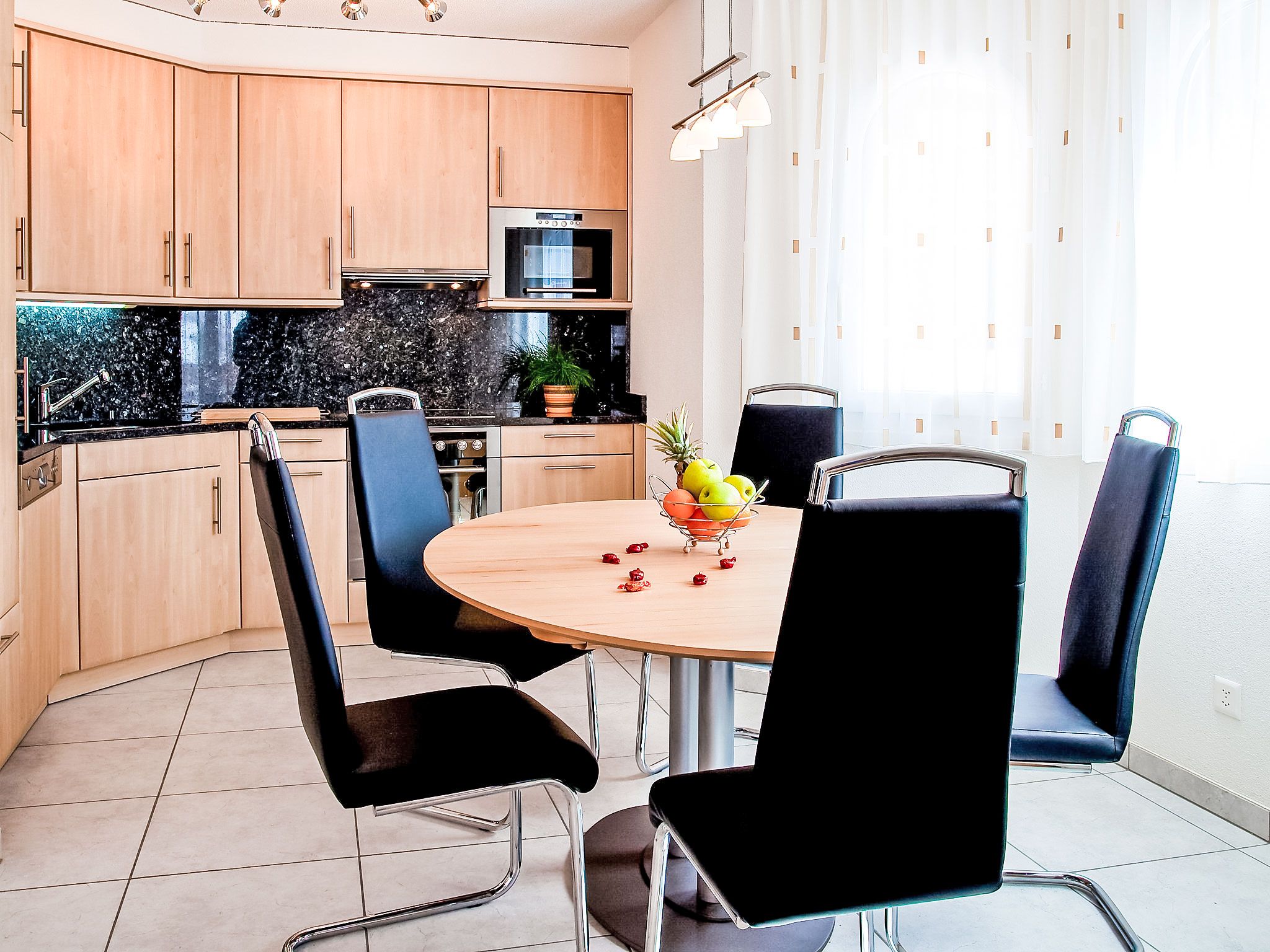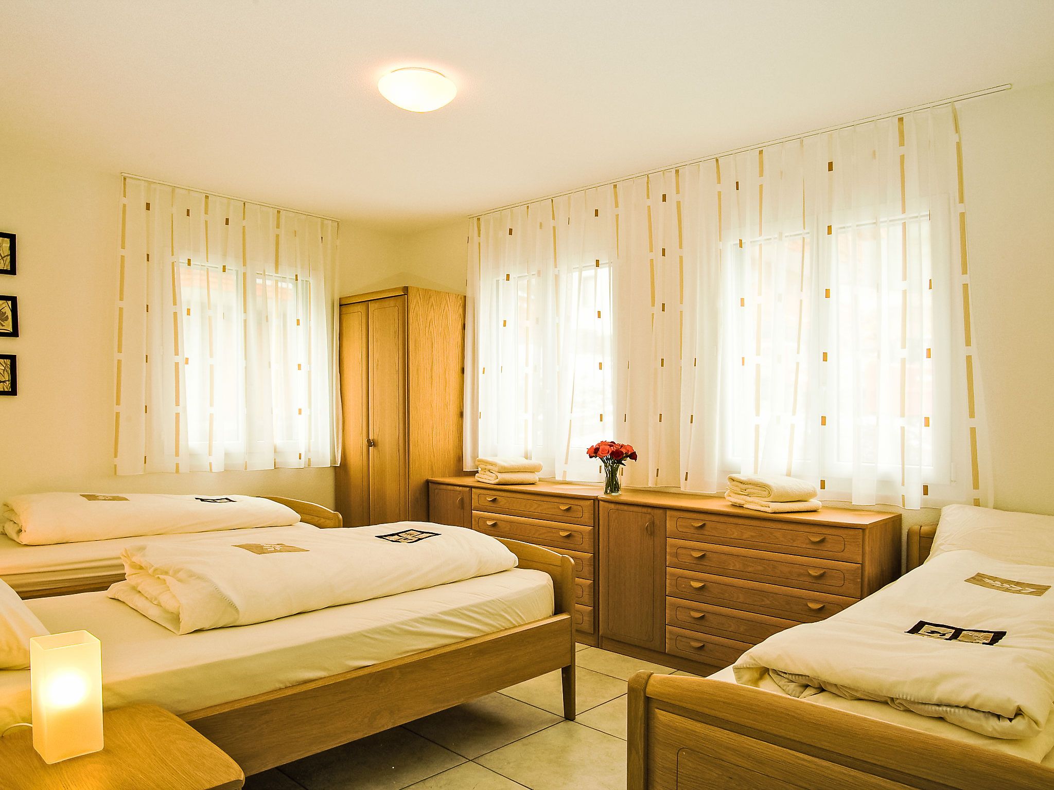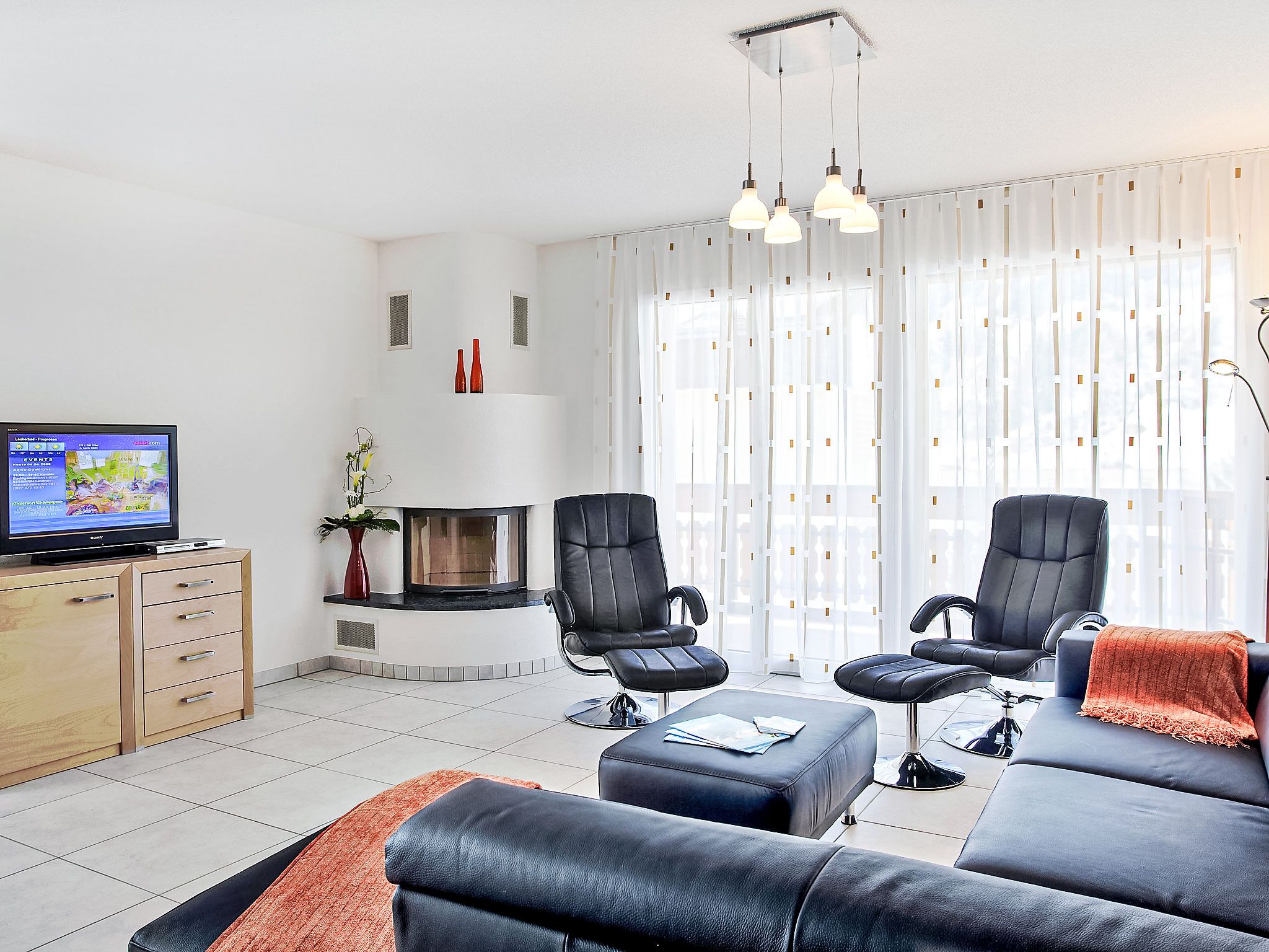 A22, 3-Zimmer-Wohnung 96 m2 im 2. Stock. Komfortabel und geschmackvoll eingerichtet: Wohn-/Esszimmer mit offenem Kamin, Kabel-TV, CD und DVD. Ausgang zum Balkon, Richtung Süden und Richtung Westen. 1 Doppelzimmer mit 1 Doppelbett und Dusche/WC. 1 Zimmer mit 3 Betten und Dusche/WC. Offene Küche (Backofen, Geschirrspüler, 4 Glaskeramikplatten, Mikrowelle). Sep. WC. Terrassenmöbel. Sehr schöne Sicht auf die Berge und die Ortschaft. Zur Verfügung: Kinderhochstuhl. Internet (Wireless LAN, gratis). Parkplatz (überdacht). Bitte beachten: Nichtraucher-Unterkunft.