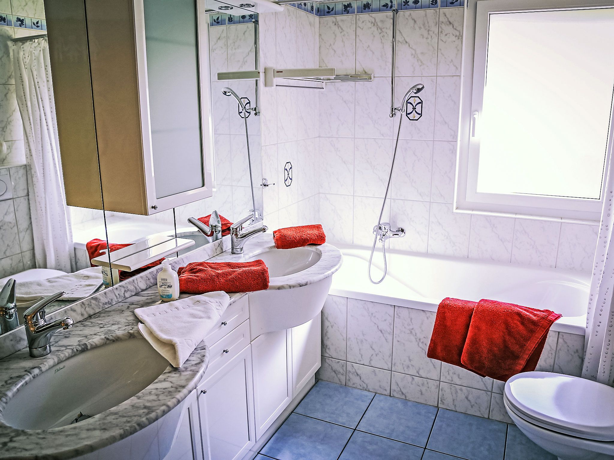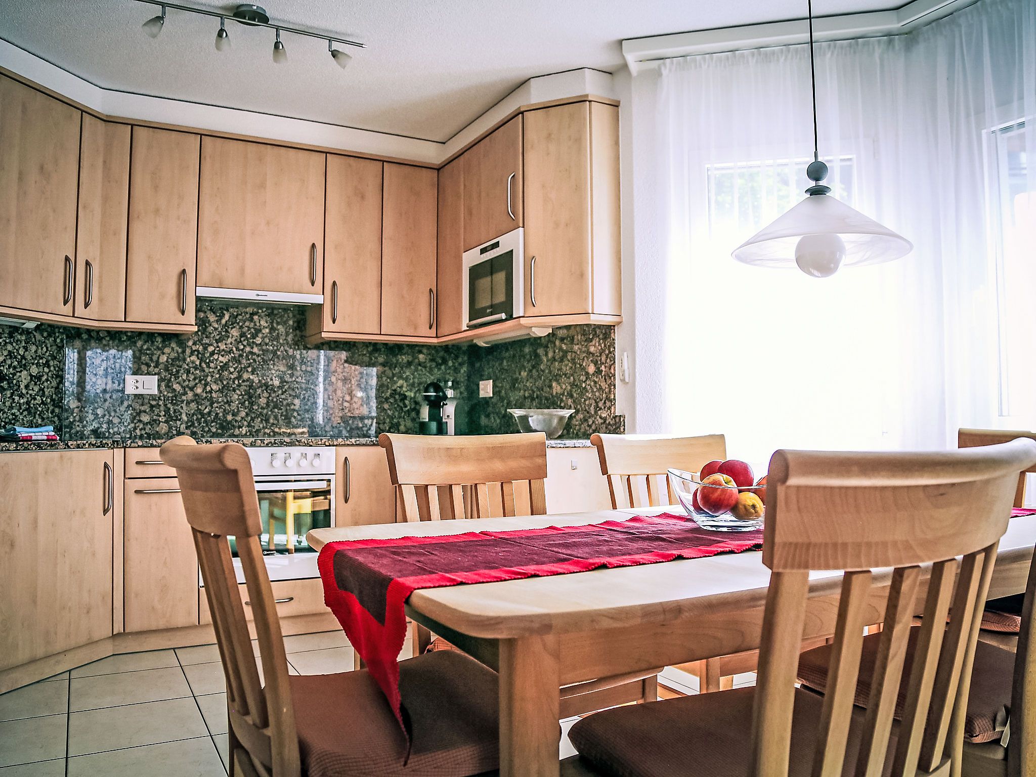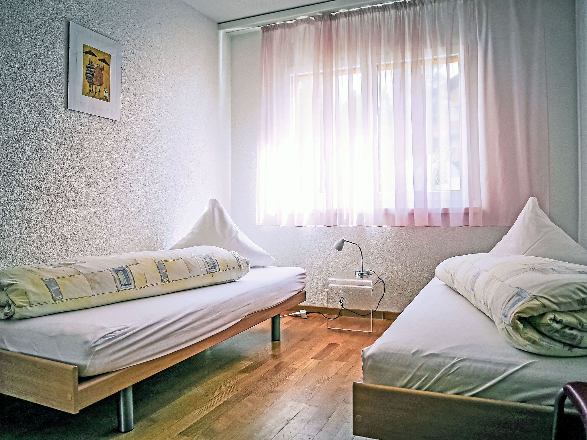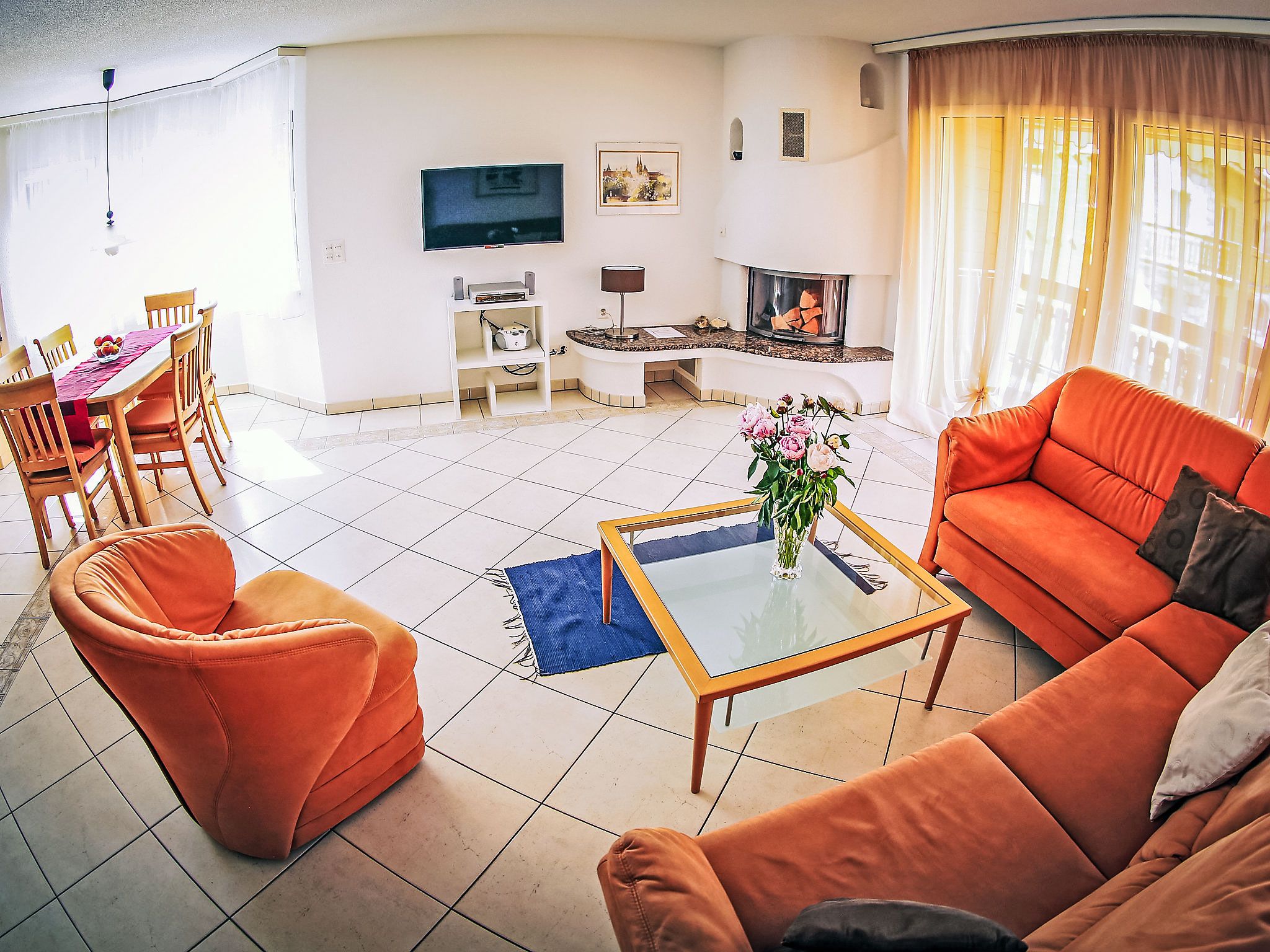 3-Zimmer-Wohnung 90 m2. Gemütlich eingerichtet: Wohn-/Esszimmer mit offenem Kamin und Kabel-TV (Flachbildschirm), Radio und DVD. Ausgang zum Balkon. 1 Doppelzimmer. 1 Zimmer mit 2 Betten. Offene Küche (Backofen, Geschirrspüler, 4 Glaskeramikplatten, Mikrowelle, Tiefkühler). Bad/WC, sep. WC. Balkon 6 m2. Sicht auf die Berge und die Ortschaft. Zur Verfügung: Babybett. Internet (Wireless LAN, gratis). Maximal 1 Haustier/Hund erlaubt.