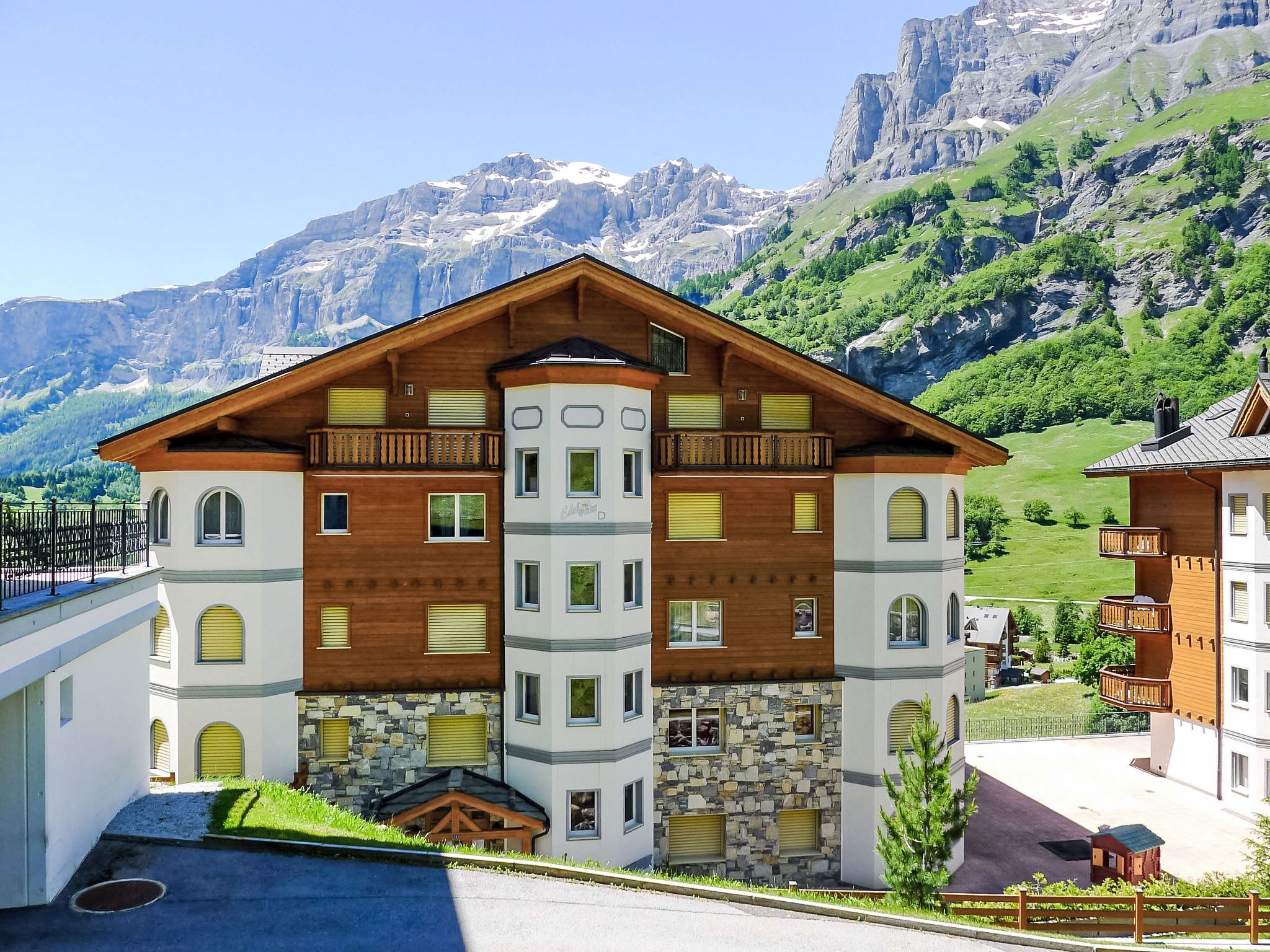 Schönes, komfortables Appartementhaus Edelweiss D, 1'350 m.ü.M., auf 4 Stockwerken. Am Ortsrand, 450 m vom Zentrum, ruhige, sonnige Lage, 250 m vom Skigebiet, an einer Strasse. Zur Mitbenutzung: Kinderspielplatz. Im Hause: Fahrstuhl, Skiraum, Zentralheizung, Waschmaschine, Wäschetrockner (zur Mitbenutzung, extra). Brötchenservice. Zufahrt bis zum Haus (Bergstrasse). Gemeinschaftsgarage beim Haus. Einkaufsgeschäft, Lebensmittelgeschäft, Restaurant 250 m, Bushaltestelle Leukerbad, Bristol 200 m, Thermalbad 350 m. Tennis, Bergeisenbahn, Skisportanlagen 250 m. In der Buchung ist die Leukerbad Plus Card inbegriffen. Die Leukerbad Plus Card beinhaltet folgende Leistungen: Freie Benutzung des Ortsbus Ringjet, Freie Benutzung des Kinder-Skigebietes Erli, Gratis Nutzung der Sportarena (Badminton, Tennis, Squash, Billard, Tischtennis, Eislaufen, Fussball, Indoor-Fussball, Minigolf, Boulder, etc.), 15% Ermässigung beim Kauf eines Schnee- und Badepasses. 10% Ermässigung auf Abonnemente und Mehrfacheintritte in öffentlichen Thermalbäder.