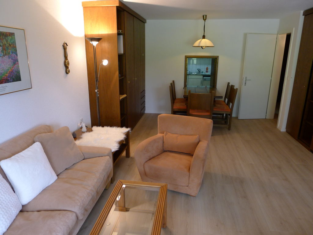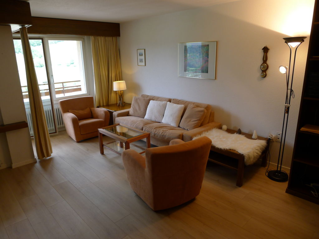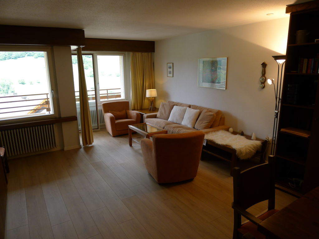 Ringstrasse Apt 324, 2-Zimmer-Wohnung 62 m2 im 3. Stock. Geschmackvoll eingerichtet: Wohn-/Esszimmer mit 2 Wandschrankbetten und Kabel-TV (Flachbildschirm). Ausgang zum Balkon. 1 Doppelzimmer. Küche (Backofen, Geschirrspüler, elektrische Kaffeemaschine, Kapseln für die Kaffeemaschine (Nespresso) extra). Bad/WC, sep. WC. Balkon. Terrassenmöbel. Schöne Sicht auf die Berge, die Landschaft und die Ortschaft. Zur Verfügung: Internet (WLAN, gratis). Bitte beachten: Nichtraucher-Unterkunft.
