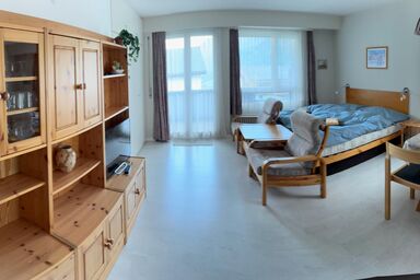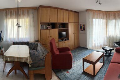 2-Zimmer-Wohnung 68 m2 im 4. Stock. Komfortabel und modern eingerichtet: Wohn-/Esszimmer mit 2 Wandschrankbetten (90 cm, Länge 200 cm), Kabel-TV (Flachbildschirm), Stereoanlage. Ausgang zum Balkon. 1 Zimmer mit 1 Bett (90 cm, Länge 200 cm), 1 franz. Bett (140 cm, Länge 200 cm). Küche (Backofen, Geschirrspüler, 4 Glaskeramikplatten, elektrische Kaffeemaschine, Kapseln für die Kaffeemaschine (Nespresso) extra). Bad/WC, Dusche/WC. Balkon. Terrassenmöbel. Schöne Sicht auf die Berge, das Tal und die Landschaft. Zur Verfügung: Internet (Wireless LAN, gratis). Bitte beachten: Nichtraucher-Unterkunft.