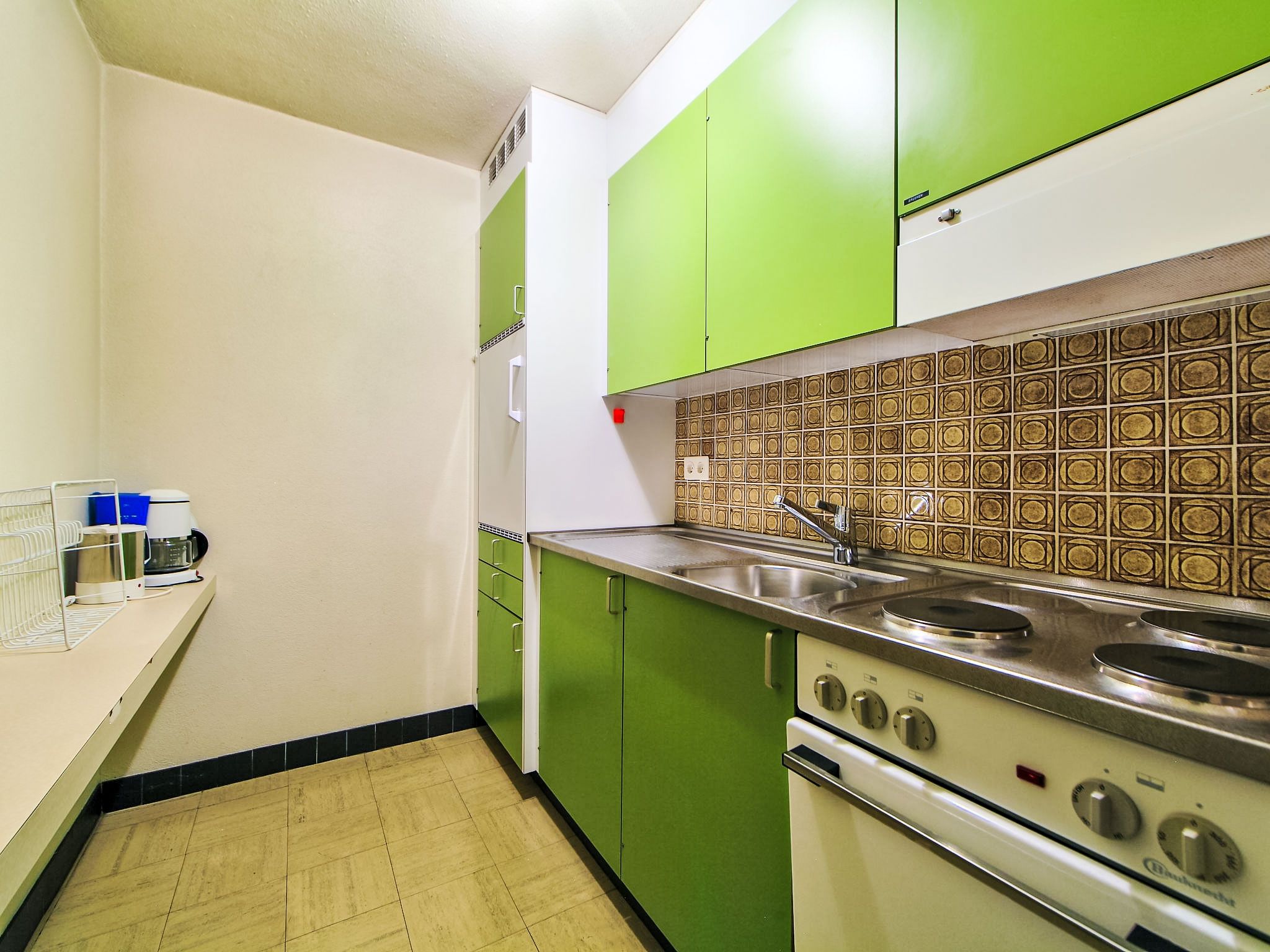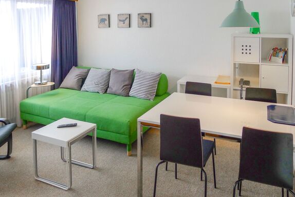 1-Zimmer-Wohnung 43 m2 im 1. Stock. Schön und gemütlich eingerichtet: Wohn-/Esszimmer mit 2 Wandschrankbetten und Kabel-TV (Flachbildschirm). Ausgang zum Balkon. Küche (Backofen). Bad/WC. Balkon. Balkonmöbel. Schöne Sicht auf die Berge, die Landschaft und die Ortschaft. Zur Verfügung: Internet (Wireless LAN, gratis). Bitte beachten: Nichtraucher-Unterkunft.