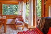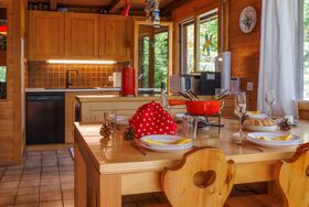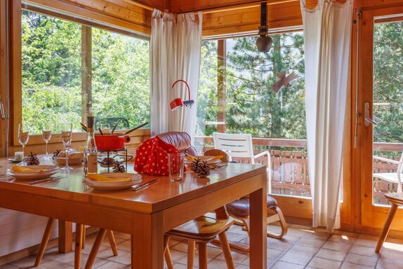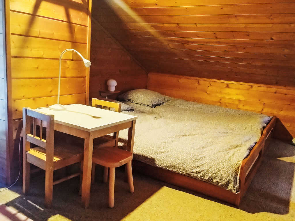 Lò Batcho, 4-Zimmer-Chalet auf 3 Stockwerken. Objekt geeignet für 4 Erwachsene + 2 Kinder. Einfach und zweckmässig eingerichtet: Wohn-/Esszimmer mit offenem Kamin, TV und Flachbildschirm. Ausgang zum Balkon. Offene Galerie mit 1 Doppelbett (160 cm, Länge 200 cm). Offene Küche (4 Kochplatten, Backofen, Geschirrspüler, Toaster, Wasserkocher, elektrische Kaffeemaschine, Racletteofen, Fondue Set (Käse)). Ausgang zur Terrasse. Sep. WC. Unteres Geschoss: 1 Zimmer mit 1 Doppelbett (2 x 90 cm, Länge 200 cm). Ausgang zum Garten. 1 Zimmer mit 1 x 1 Etagenbetten, 1 Ausziehbett (2 Pers.). Ausgang zum Garten. Bad, Dusche, sep. WC, Whirlbadewanne, Sauna. Terrasse, grosser Gartensitzplatz. Balkonmöbel, Gartengrill. Sehr schöne Sicht auf die Berge und die Landschaft. Zur Verfügung: Internet (Wireless LAN). Bitte beachten: Nichtraucher-Unterkunft. Anstelle eines abgeschlossenen Schlafzimmers befinden sich manche Schlafplätze in einem offenen Bereich (Galerie, Nische etc.).
