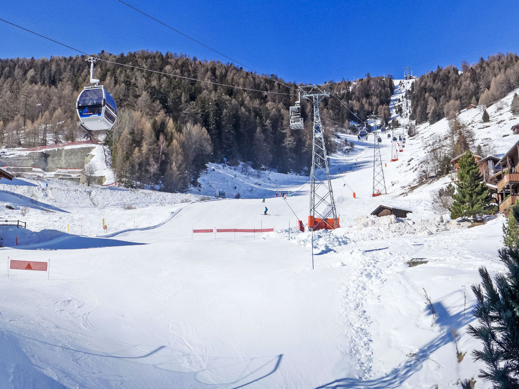 Chalet A Coeur, 5-Zimmer-Chalet 180 m2 auf 3 Stockwerken. Objekt geeignet für 4 Erwachsene + 4 Kinder. Sehr komfortabel und geschmackvoll eingerichtet: Wohn-/Esszimmer mit offenem Kamin und TV (Flachbildschirm), DVD und E-Heizung. Ausgang zum Balkon. Offene Küche (Backofen, Geschirrspüler, 4 Induktionskochplatten, elektrische Kaffeemaschine, Racletteofen, Fondue Set (Käse)). Ausgang zum Balkon. Dusche/WC. Fussbodenheizung. Unteres Geschoss: 2 Zimmer, jedes Zimmer mit 1 Doppelbett (160 cm, Länge 200 cm). Ausgang zur Terrasse. 1 Kinderzimmer mit 1 x 2 Etagenbetten (90 cm, Länge 200 cm). Bad/WC, Hydromassage-Dusche. Obergeschoss: (Wendeltreppe) Galerie mit 2 Betten (90 cm, Länge 200 cm). 2 Balkone, Terrasse. Balkonmöbel, Elektrogrill, Liegestühle (2). Schöne Sicht auf die Berge und die Ortschaft. Zur Verfügung: Waschmaschine, Wäschetrockner, Kinderhochstuhl, Babybett, Haartrockner. Internet (Wireless LAN). Parkplatz (überdacht, 2 Autos) in 150 m. Bitte beachten: geeignet für Familien. Nichtraucher-Unterkunft. Feuerlöscher. Der Garagenplatz befindet sich oberhalb des Chalets, Route de Roua 55. Anstelle eines abgeschlossenen Schlafzimmers befinden sich manche Schlafplätze in einem offenen Bereich (Galerie, Nische etc.).