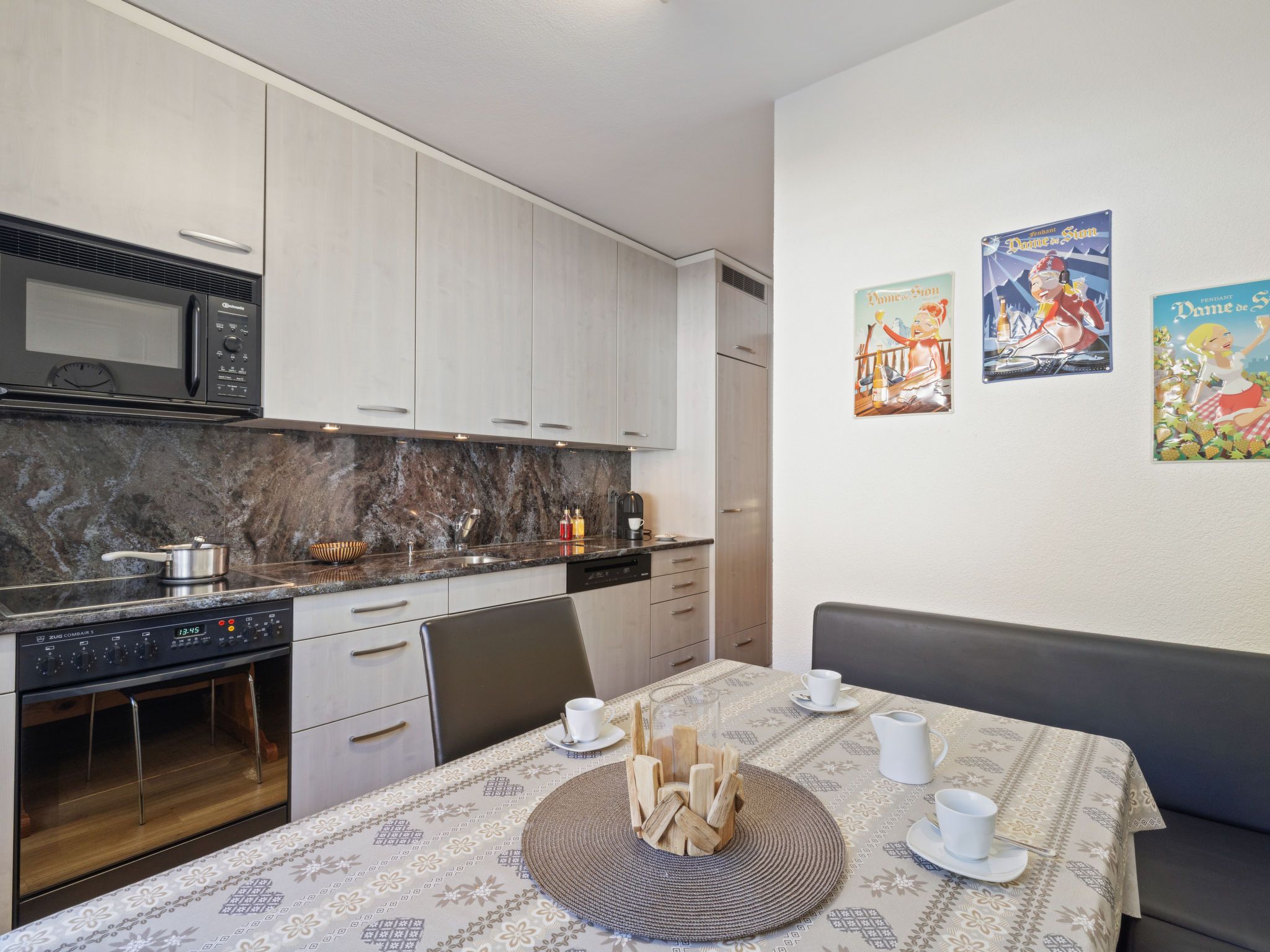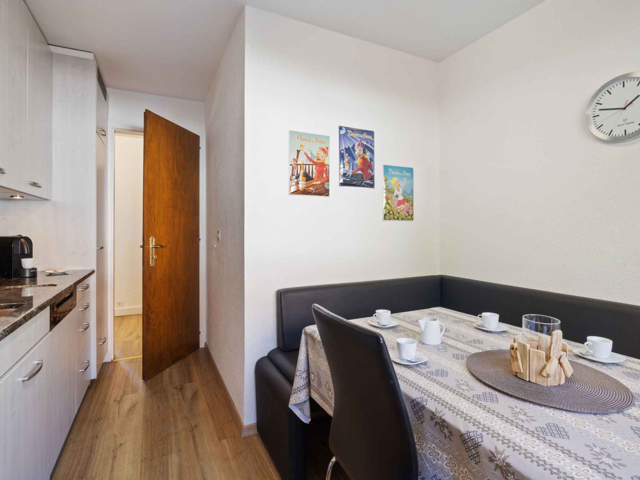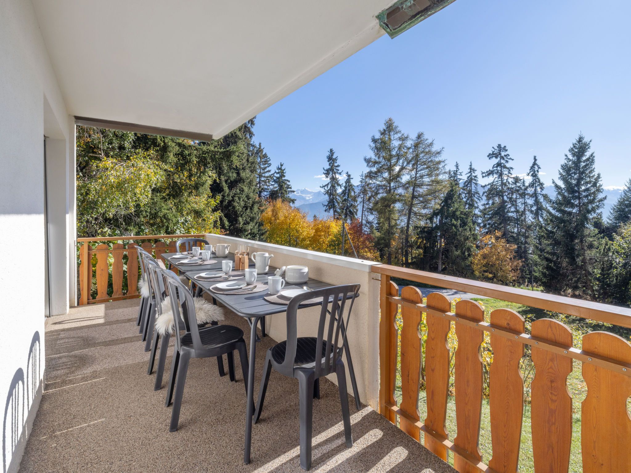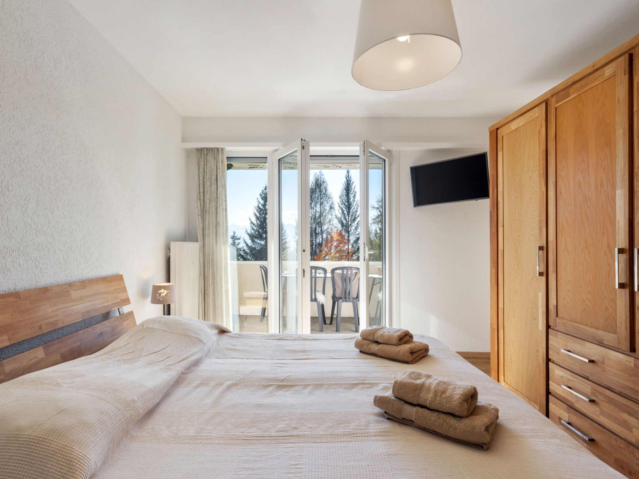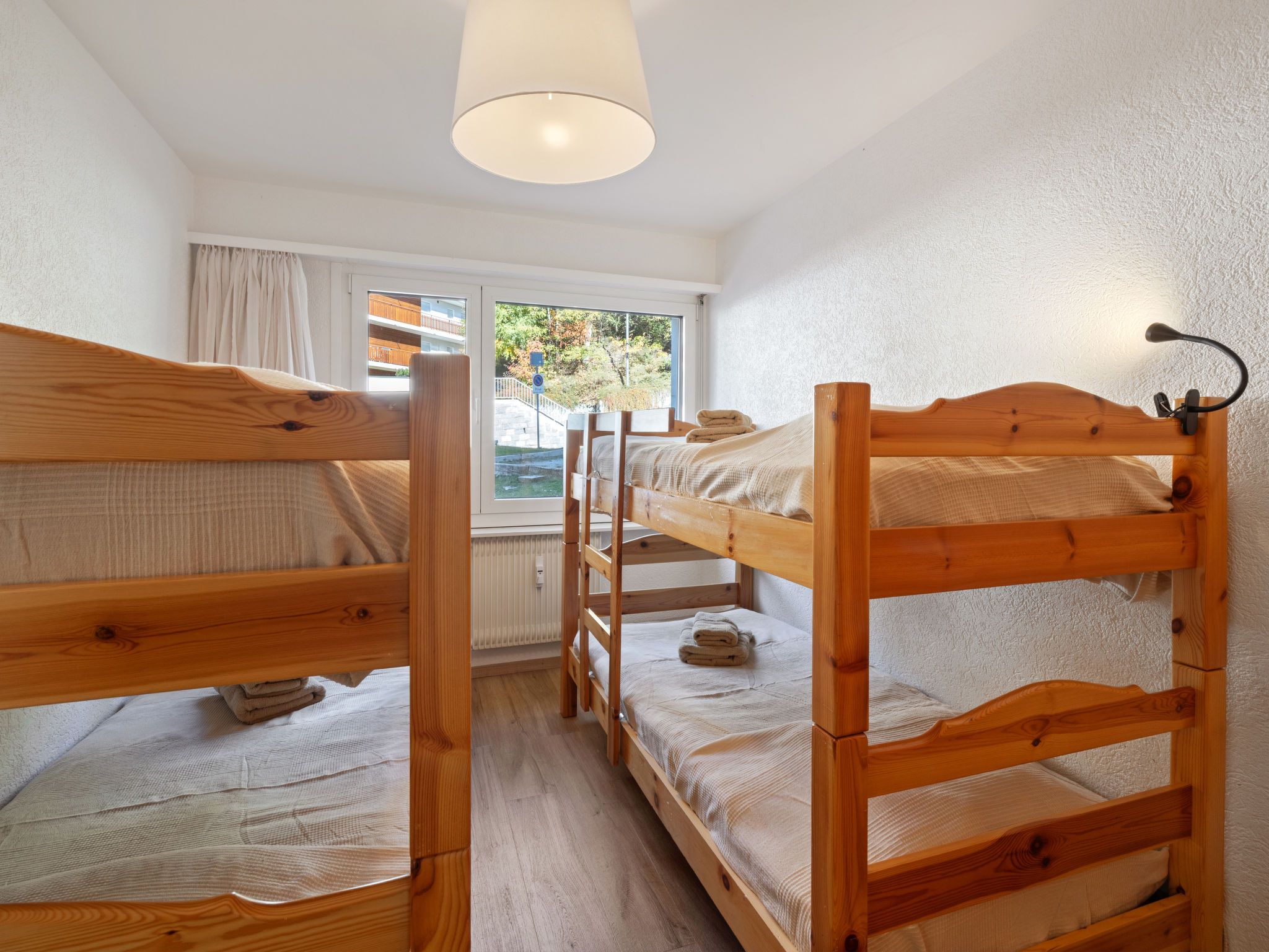 Vermala Soleil B1, 4-Zimmer-Wohnung 100 m2, im erhöhten Erdgeschoss. Vollständig renoviert im Jahre 2016, schön eingerichtet: Wohn-/Esszimmer mit Kabel-TV, Flachbildschirm, Video, Radio und DVD. 1 Zimmer mit 1 franz. Bett (160 cm, Länge 200 cm), Kabel-TV (Flachbildschirm). Ausgang zum Balkon, Richtung Süden. 1 Zimmer mit 1 franz. Bett (160 cm, Länge 200 cm). 1 Kinderzimmer mit 2 x 2 Etagenbetten (90 cm, Länge 190 cm). Küche (Backofen, Geschirrspüler, 4 Glaskeramikplatten, Toaster, Wasserkocher, Mikrowelle, elektrische Kaffeemaschine, Kapseln für die Kaffeemaschine (Nespresso) extra, Racletteofen, Fondue Set (Chinoise, Käse)) mit Esstisch. Bad/WC, Dusche/WC, Doppelwaschbecken. Grosser Balkon 15 m2, Südlage und Westlage. Balkonmöbel, Liegestühle (2). Sicht auf die Berge und die Landschaft. Zur Verfügung: Bügeleisen, Haartrockner. Internet (Wireless LAN, gratis). Garage Nr. 26 in 15 m, Höhe 200 cm, Breite 230 cm. Bitte beachten: Nichtraucher-Unterkunft.