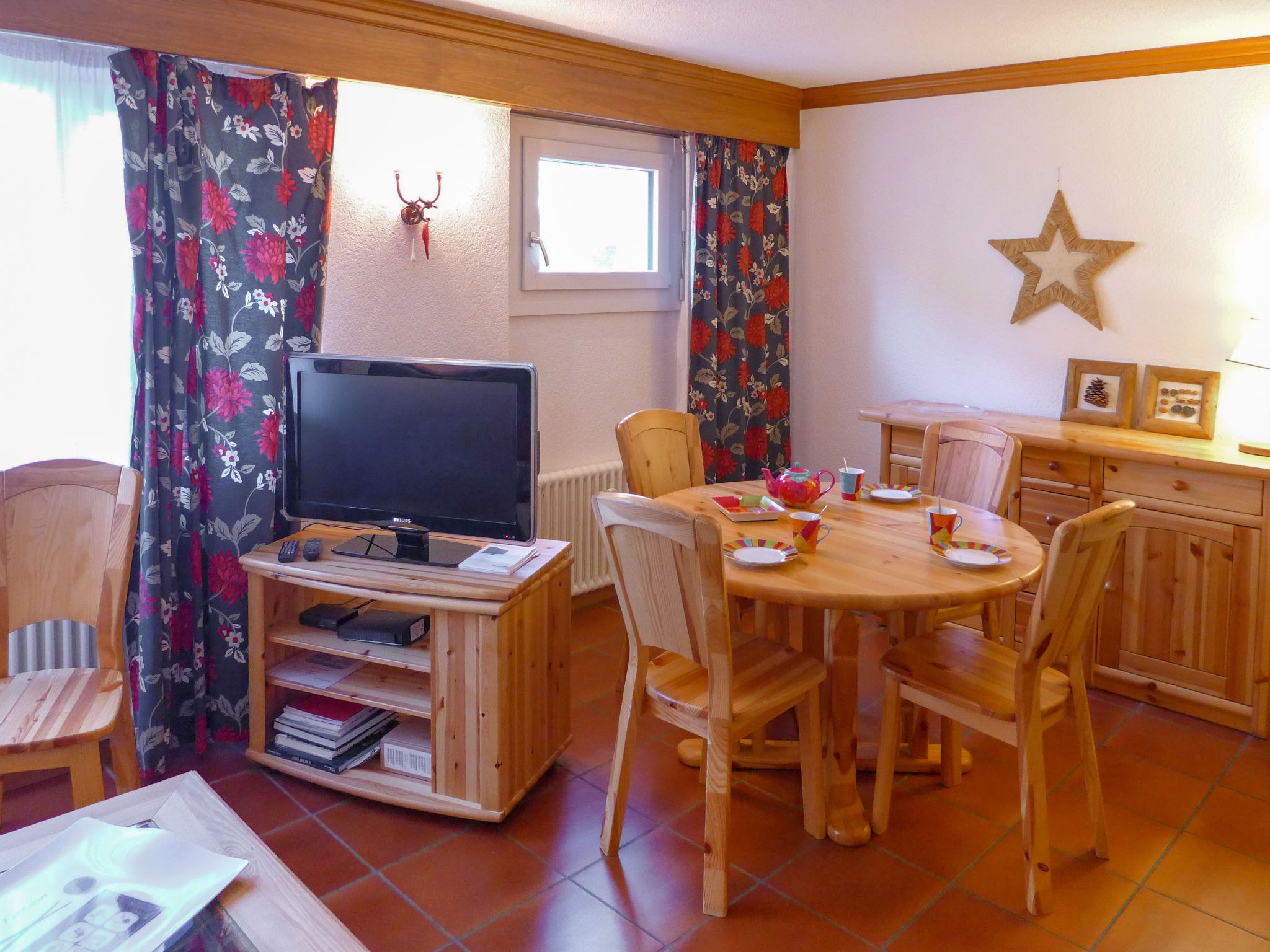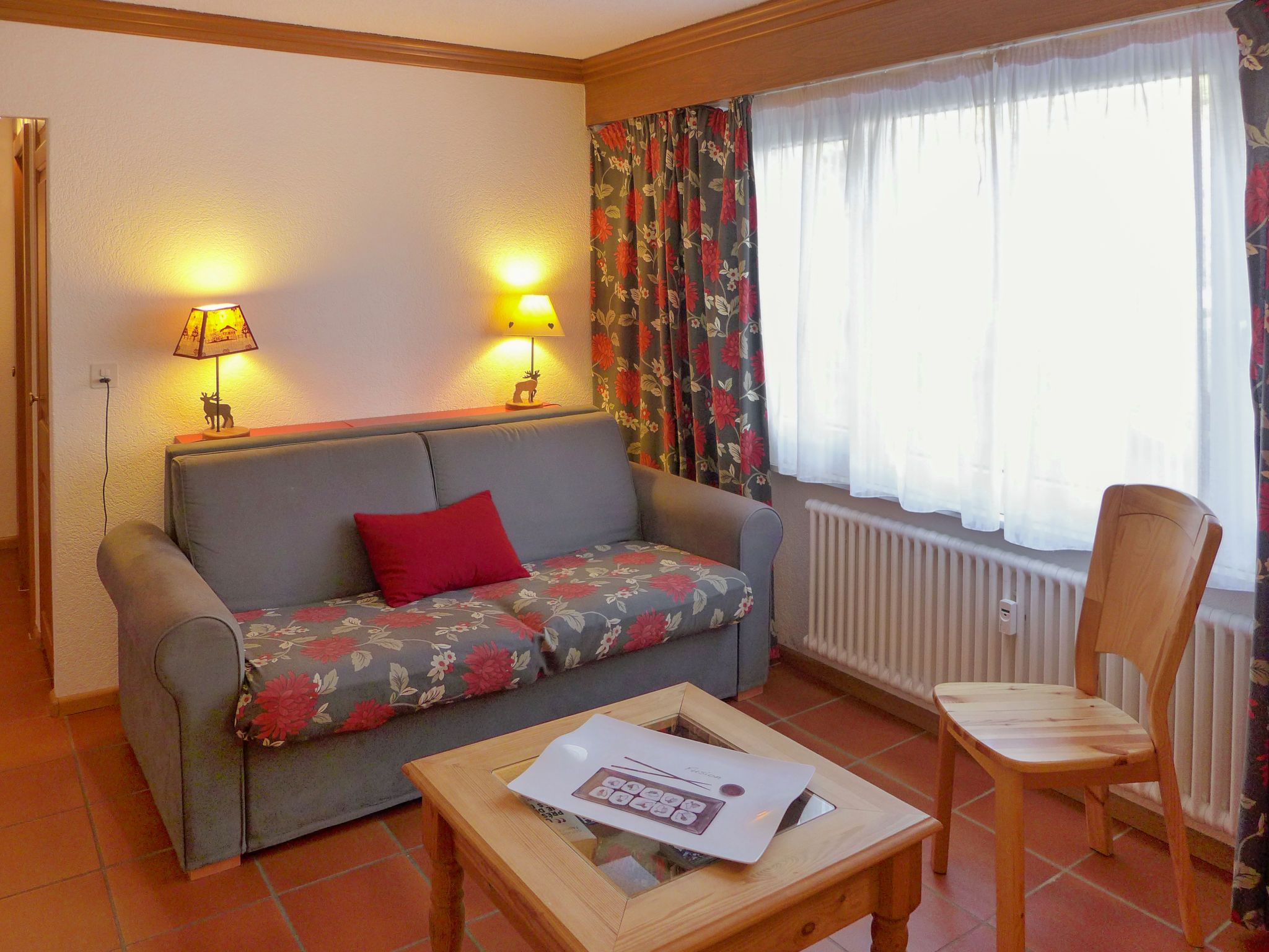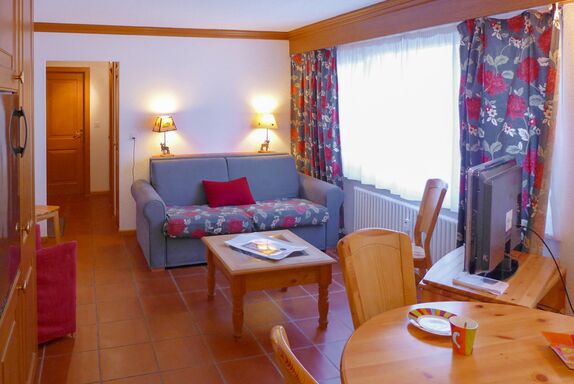 Résidence Christina Apt. 305, 2-Zimmer-Wohnung 40 m2, im Erdgeschoss, Nordlage. Schön eingerichtet: Wohn-/Esszimmer mit 1 Doppeldiwanbett (140 cm, Länge 190 cm), Kabel-TV und Flachbildschirm. 1 Zimmer mit 2 Betten (80 cm, Länge 200 cm). Wohnküche (3 Kochplatten, Backofen, Geschirrspüler, Toaster, Wasserkocher, Mikrowelle, elektrische Kaffeemaschine, Fondue Set (Käse)). Bad/WC. Zur Verfügung: Haartrockner. Internet (WLAN, gratis). Bitte beachten: Wohnung auf Parkplatzseite. Nichtraucher-Unterkunft. Maximal 1 Haustier/Hund erlaubt. Ohne Balkon.