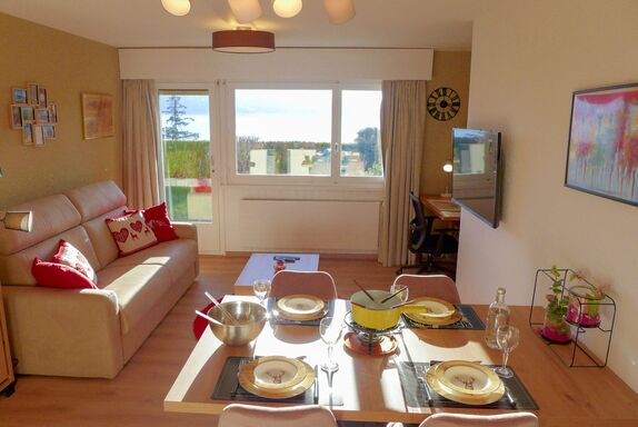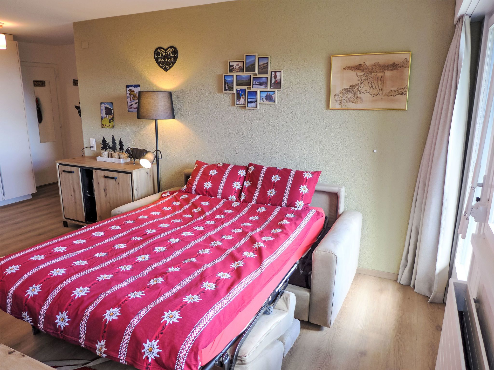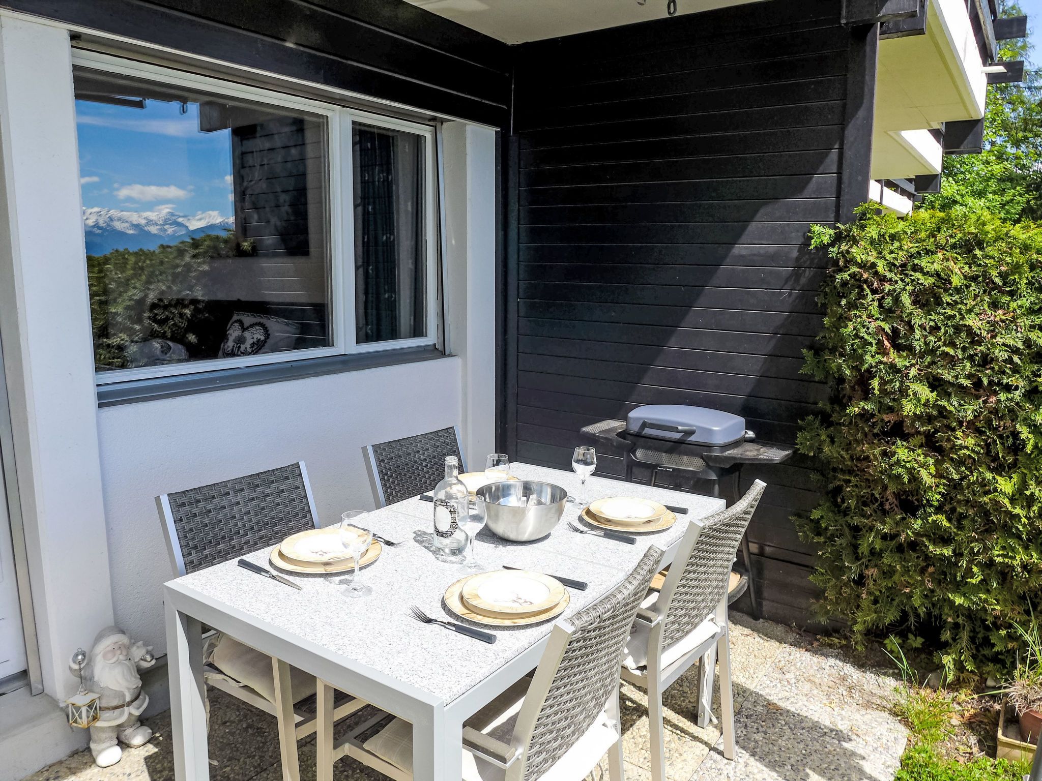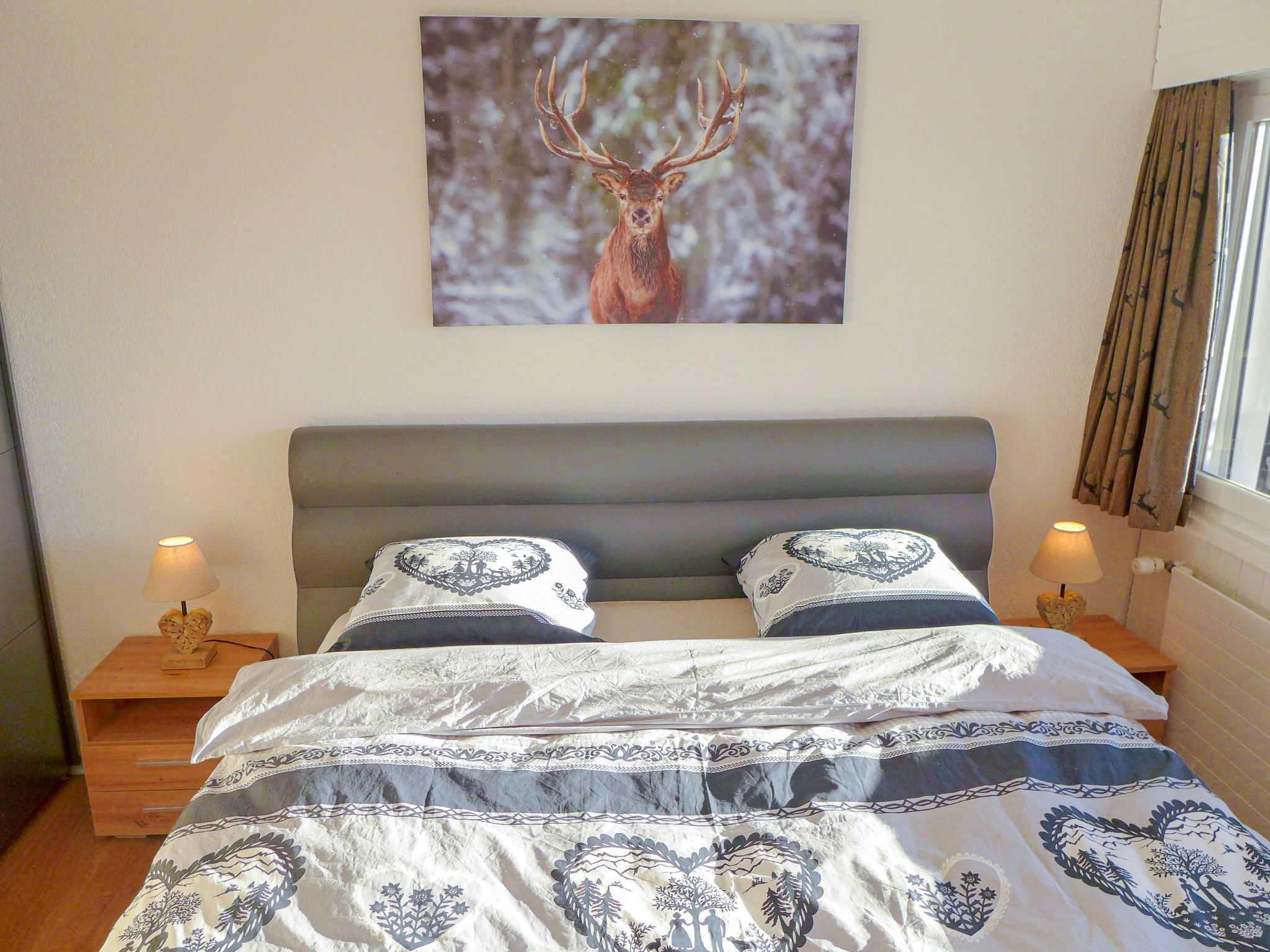 Les Essampilles 25, 2-Zimmer-Wohnung 48 m2, im Erdgeschoss. Vollständig renoviert im Jahre 2022, sehr komfortabel und geschmackvoll eingerichtet: Wohn-/Esszimmer mit 1 Diwanbett (140 cm, Länge 200 cm), Kabel-TV (Flachbildschirm). Ausgang zur Terrasse, Richtung Südwesten. 1 Zimmer mit 1 franz. Bett (180 cm, Länge 200 cm). Ausgang zur Terrasse. Offene Küche (Backofen, Geschirrspüler, 4 Glaskeramikplatten, Toaster, Wasserkocher, elektrische Kaffeemaschine, Kapseln für die Kaffeemaschine (Nespresso) extra, Racletteofen, Kombinationsmikrowelle, Fondue Set (Chinoise, Käse)). Dusche/WC. Grosse Terrasse 45 m2. Terrassenmöbel, Elektrogrill (mobil), Liegestühle (2). Sehr schöne Sicht auf die Berge und das Tal. Zur Verfügung: Bügeleisen, Kinderhochstuhl, Babybett bis 2 Jahre, Haartrockner. Internet (Wireless LAN, gratis). Parkplatz Nr. 25. Bitte beachten: Nichtraucher-Unterkunft. Faltbares Babybett ohne Bettwäsche und ohne Bezüge.