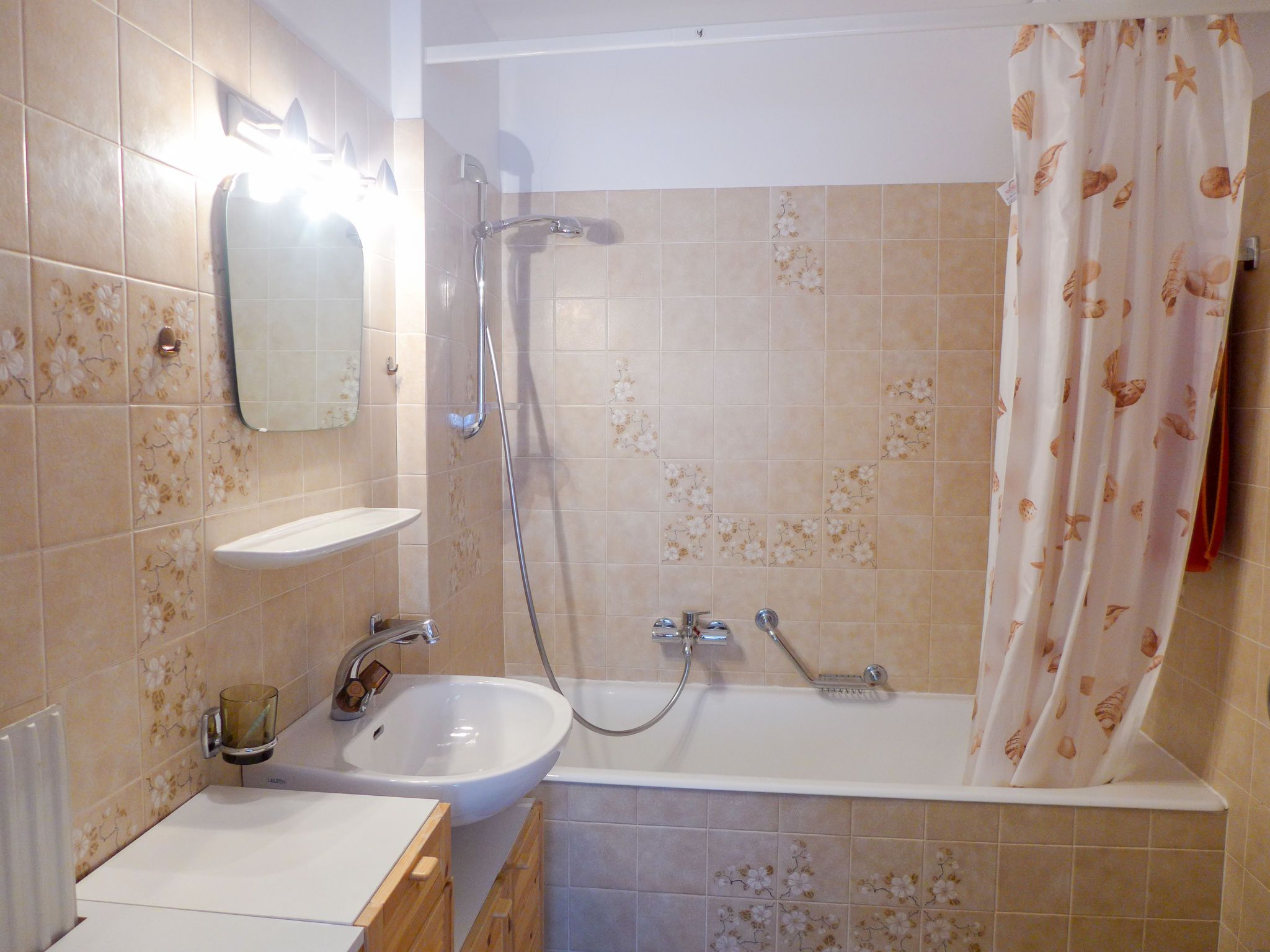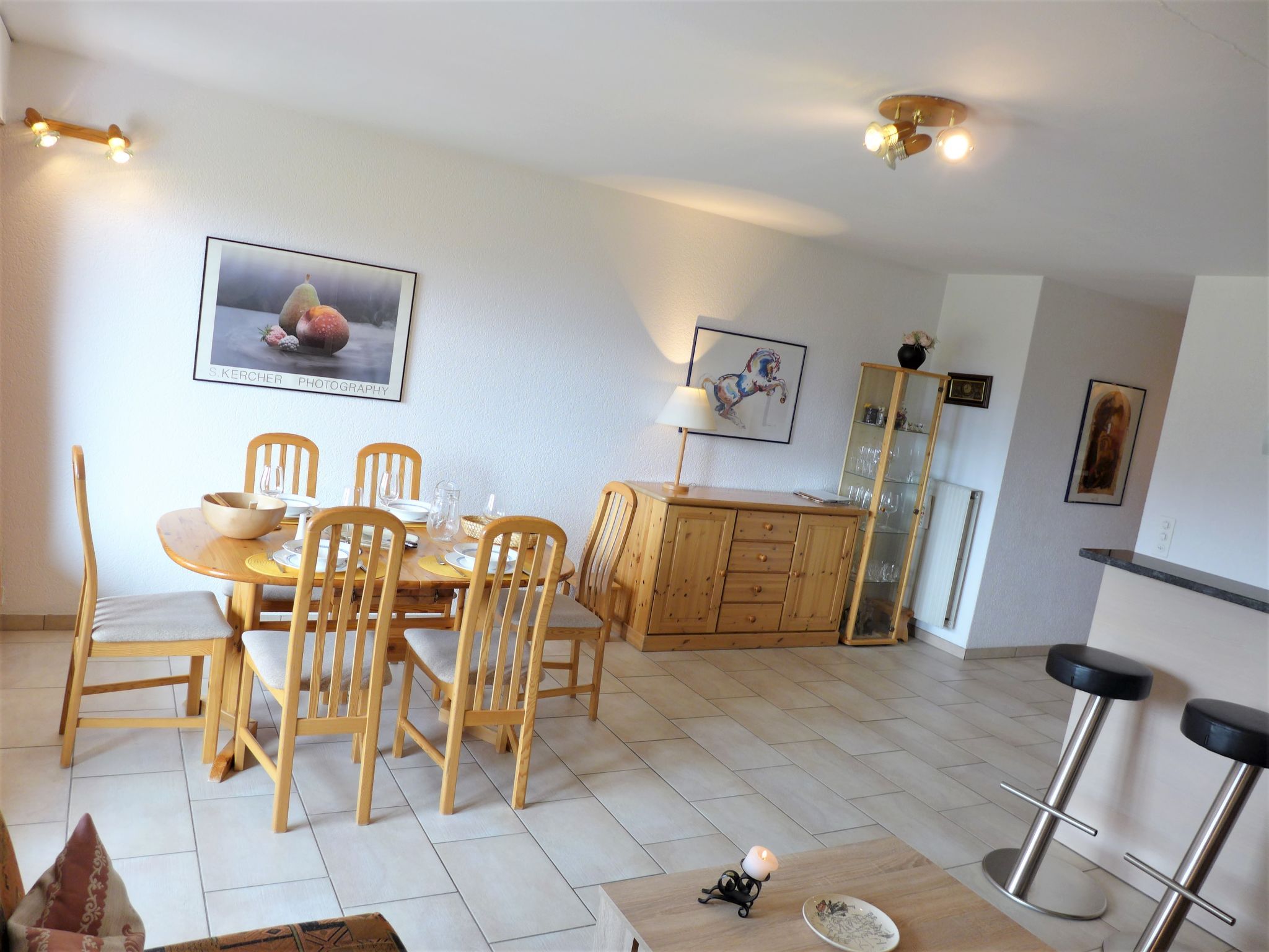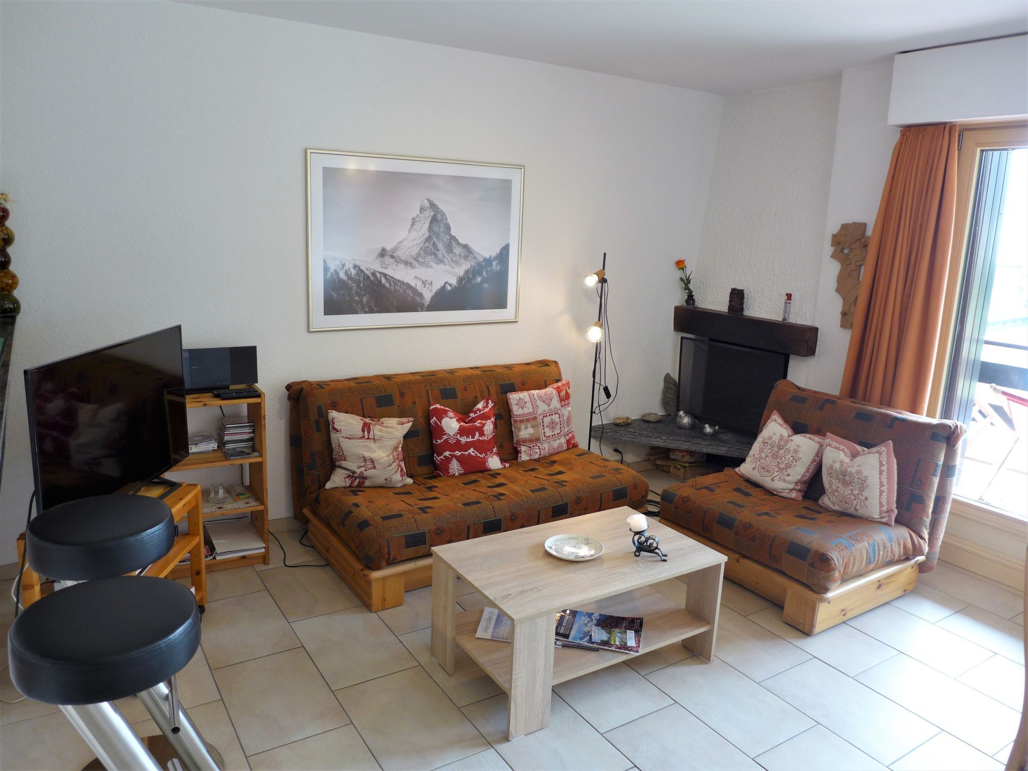 Victoria B 23, 3-Zimmer-Wohnung 70 m2 im 2. Stock. Schön eingerichtet: Wohn-/Esszimmer mit offenem Kamin, Kabel-TV, CD und DVD. Ausgang zum Balkon, Richtung Süden. 1 Zimmer, Richtung Norden mit 1 franz. Bett (160 cm, Länge 200 cm), Bad/Bidet/WC. Ausgang zum Balkon, Richtung Norden. 1 Zimmer mit 1 x 2 Etagenbetten (90 cm, Länge 200 cm). Ausgang zum Balkon, Richtung Norden. Offene Küche (Backofen, Geschirrspüler, 4 Induktionskochplatten, Toaster, Wasserkocher, Mikrowelle, Tiefkühler, elektrische Kaffeemaschine, Kapseln für die Kaffeemaschine (Nespressso) extra, Racletteofen, Fondue Set (Käse)). Dusche/WC. Balkonmöbel. Schöne Sicht auf die Berge. Zur Verfügung: Bügeleisen, Haartrockner. Internet (Wireless LAN, gratis). Garage Nr. B23, Höhe 200 cm, Breite 210 cm. Bitte beachten: Nichtraucher-Unterkunft.