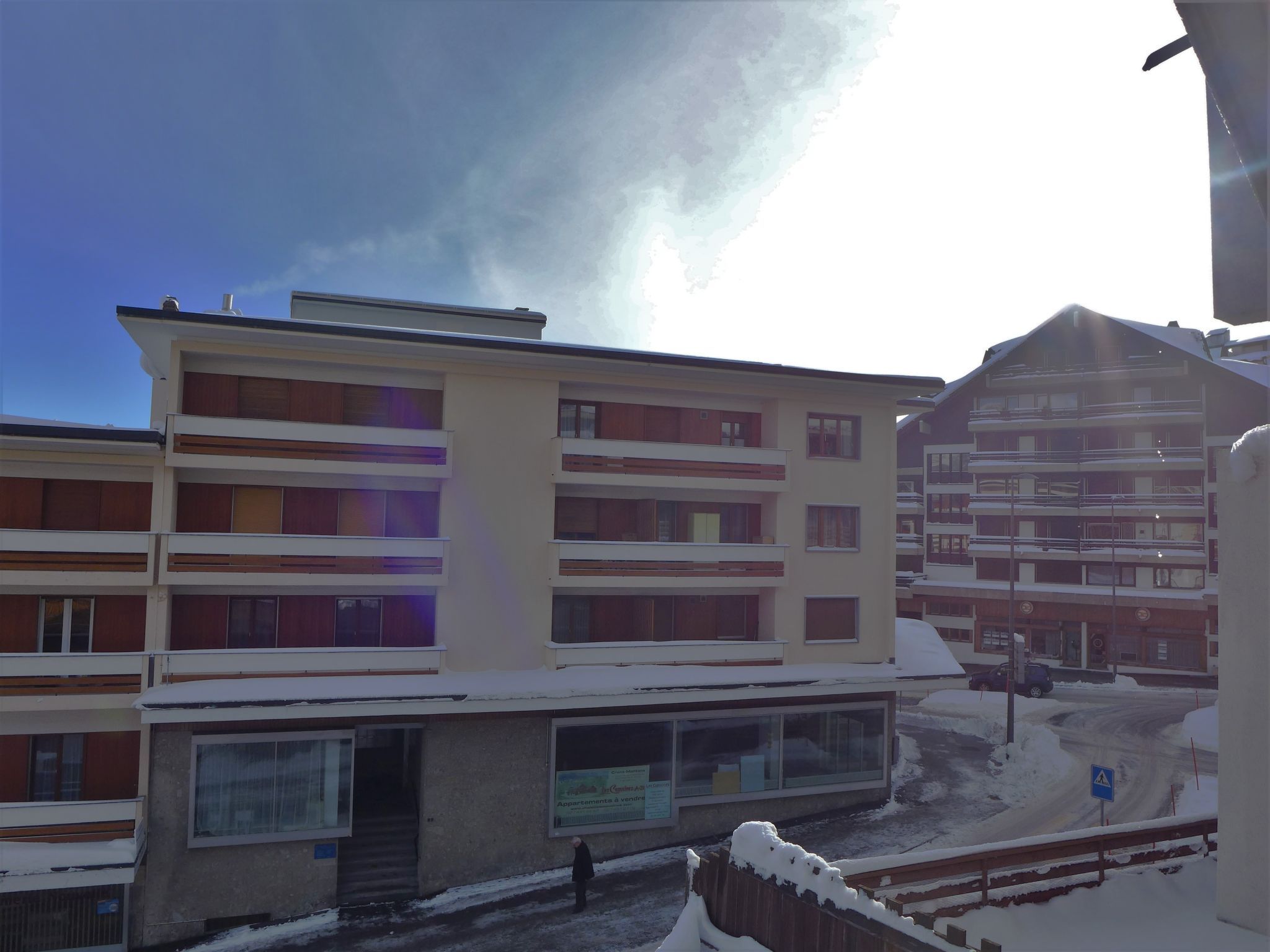 Mehrfamilienhaus Rond-Point, auf 3 Stockwerken, Baujahr 1976. Im Ortszentrum von Montana, zentrale, belebte Lage, 600 m vom See, 400 m vom Skigebiet, an einer Hauptstrasse, Richtung Süden. Im Hause: Fahrstuhl, Skiraum, Zentralheizung, Waschmaschine, Wäschetrockner (zur Mitbenutzung, extra), Trockenraum. Gemeinschaftsgarage, öffentliches Parkhaus in 50 m, extra. Parkplatz/Garage nur für kleine - mittlere Fahrzeuge geeignet. Maße: Höhe 175 cm Breite 200 cm. Einkaufsgeschäft, Supermarkt 20 m, Restaurant, Bar 10 m, Bäckerei 20 m, Café 10 m, Bushaltestelle Ycoor 250 m, Bahnstation Funiculaire Montana Gare 500 m, Badesee Moubra 1.4 km, See Grenon 600 m. Golfplatz (18 Loch) 1.9 km, Skisportanlagen 400 m, Langlaufloipe 1.4 km, Eisfeld 300 m, Kinderspielplatz 400 m. Nahe gelegene Sehenswürdigkeiten: Casino 250 m. Bitte beachten: Gratis Skibus.