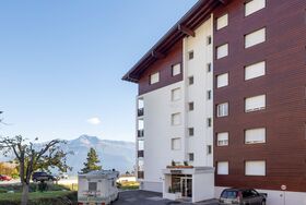 Residenz Armorial Est / Ouest, auf 5 Stockwerken. Im Ortsteil Combaz, 1.5 km vom Zentrum von Montana, ruhige, sonnige Lage, verkehrsberuhigte Zone, 2.1 km vom See, 1.2 km vom Skigebiet, Richtung Süden. In der Anlage: Tischtennis, Fahrstuhl, Skiraum, Zentralheizung, Waschmaschine, Wäschetrockner (zur Mitbenutzung, extra). Parkplatz (beschränkte Anzahl) beim Haus. Einkaufsgeschäft 1.5 km, Supermarkt 1.5 km, Restaurant 1.5 km, Bäckerei 750 m, Bushaltestelle Comba 300 m, Bahnstation Funiculaire Montana Gare 1.1 km, Badesee Moubra 2.5 km. Golfplatz (18 Loch) 3.5 km, Tennis 2.5 km, Sportzentrum 2.5 km, Skisportanlagen 1.2 km, Langlaufloipe 2.5 km, Eisfeld 1.9 km. Bekannte Seen in der Umgebung sind gut erreichbar: Grenon 2.1 km, Etang Long 3.6 km. Bitte beachten: Gratis Skibus. Weitere Unterkünfte sind buchbar.
