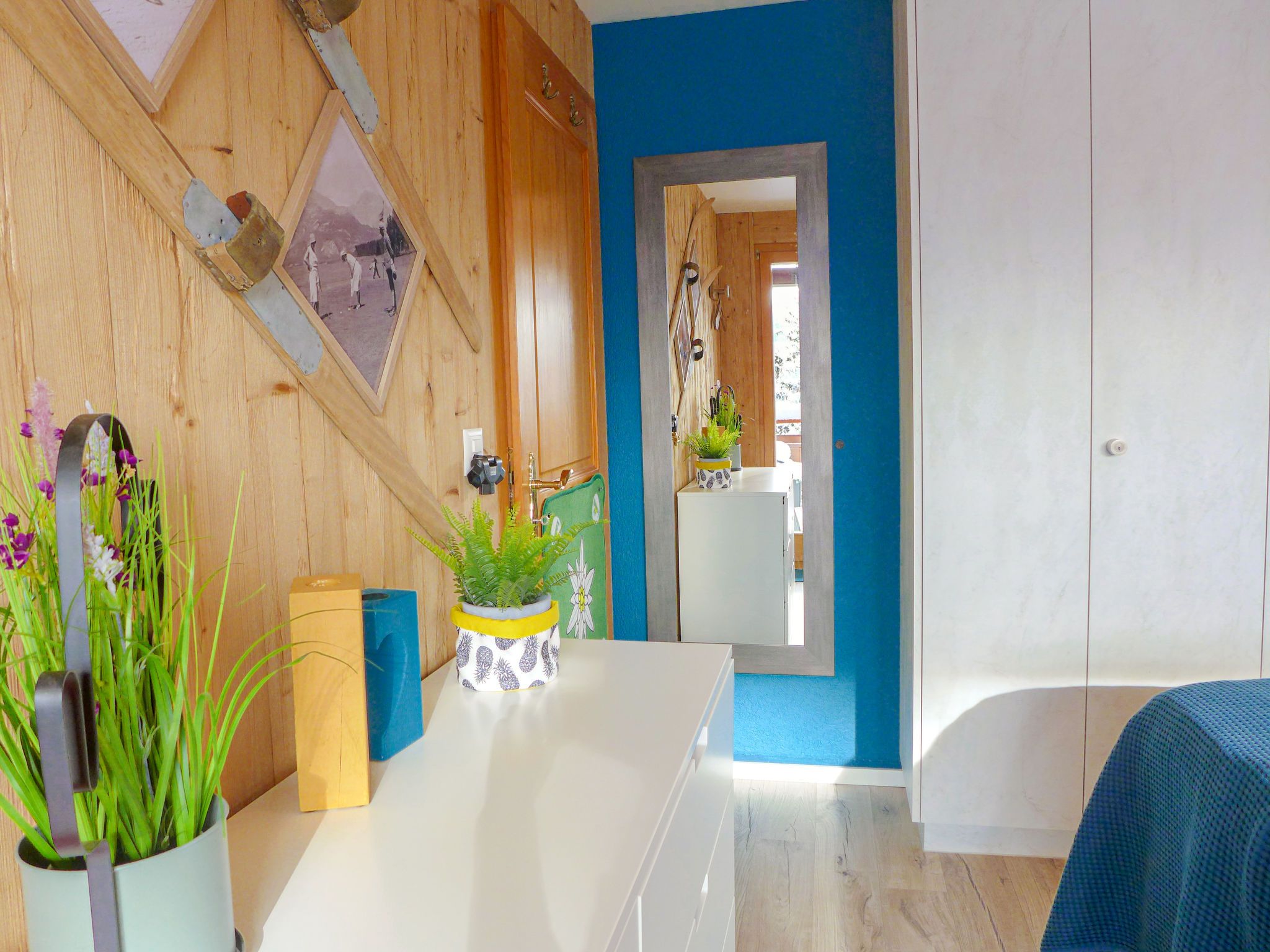 Résidence Byblos 11, 2-Zimmer-Wohnung 46 m2 im 1. Stock. Vollständig renoviert im Jahre 2022, komfortabel und geschmackvoll eingerichtet: Wohn-/Esszimmer mit Kabel-TV. Ausgang zum Balkon. 1 Zimmer mit 1 Doppelbett (2 x 80 cm, Länge 200 cm). Ausgang zum Balkon. Offene Küche (Backofen, Geschirrspüler, 4 Glaskeramikplatten, Toaster, Wasserkocher, Mikrowelle, Tiefkühler, elektrische Kaffeemaschine, Kapseln für die Kaffeemaschine (Delizio) extra, Racletteofen, Fondue Set (Chinoise, Käse)). Bad/WC. Grosse Terrasse 24 m2, Südlage. Balkonmöbel, Liegestühle (2). Schöne Sicht auf die Berge und den Wald. Zur Verfügung: Bügeleisen, Haartrockner. Internet (WLAN, gratis). Parkplatz Nr. 11. Bitte beachten: Nichtraucher-Unterkunft. Maximal 1 kleines Haustier/Hund erlaubt.