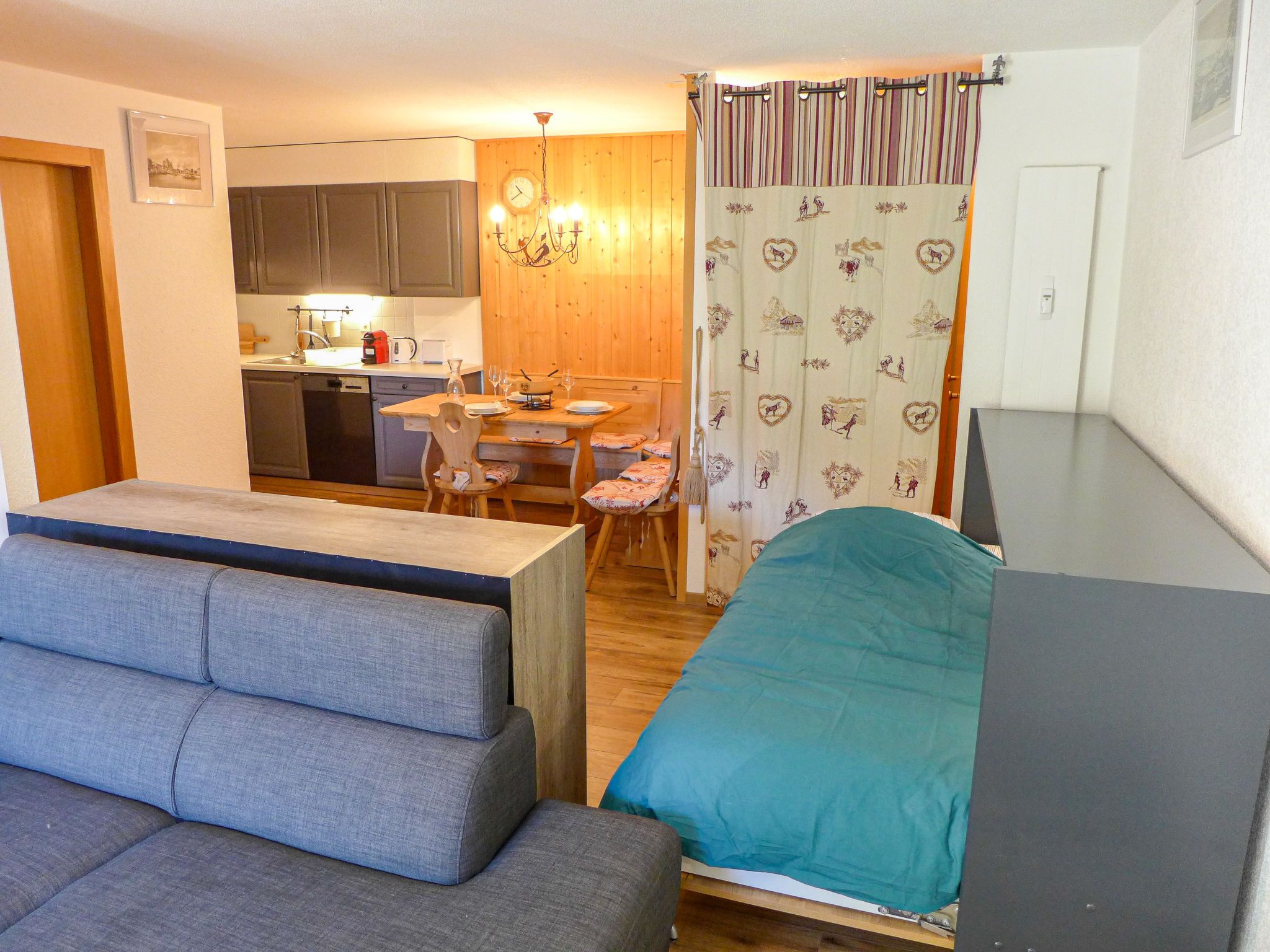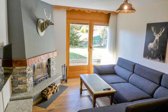 Le Torrent 1, 2-Zimmer-Wohnung 50 m2, im erhöhten Erdgeschoss. Schön und geschmackvoll eingerichtet: Wohn-/Esszimmer mit 1 Wandklappbett (90 cm, Länge 200 cm), offenem Kamin, Kabel-TV und Flachbildschirm. Ausgang zum Garten, zur Terrasse, Richtung Westen. 1 Zimmer mit 1 franz. Bett (140 cm, Länge 200 cm). Kochnische (4 Kochplatten, Backofen, Geschirrspüler, Toaster, Wasserkocher, elektrische Kaffeemaschine, Kapseln für die Kaffeemaschine (Nespresso) extra, Racletteofen, Fondue Set (Käse)). Bad/WC. Terrassenmöbel, Gartengrill (mobil). Schöne Sicht auf den Garten und den Wald. Zur Verfügung: Haartrockner. Internet (Wireless LAN, gratis). Garage Nr. J, Höhe 210 cm, Breite 250 cm. Bitte beachten: Nichtraucher-Unterkunft.